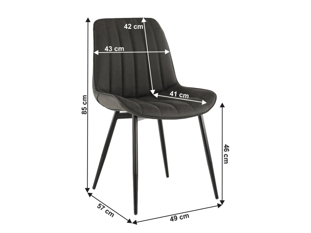 Dekorativní prošívání dodává židli lehkost a elegantní vzhled, zatímco kovová konstrukce v černé barvě zajišťuje stabilitu a dlouhou životnost. Ergonomicky tvarovaný sedák poskytuje pohodlí při každém sezení, ať už u rodinné večeře, pracovního setkání nebo posezení s přáteli.