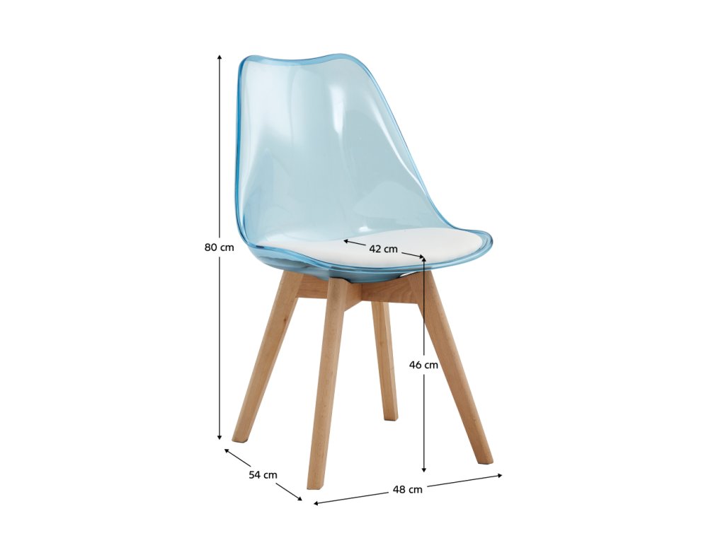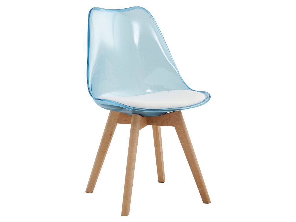 Jídelní židle SKANDI - dřevo, akryl, ekokůže, buk / bílá / transparentní modrá