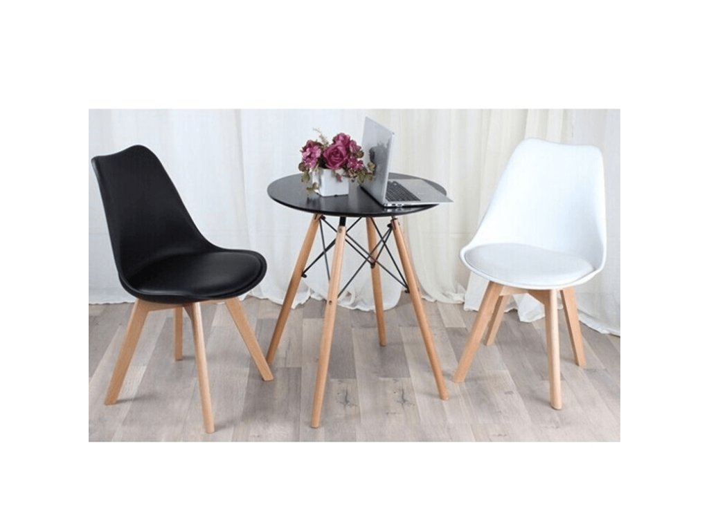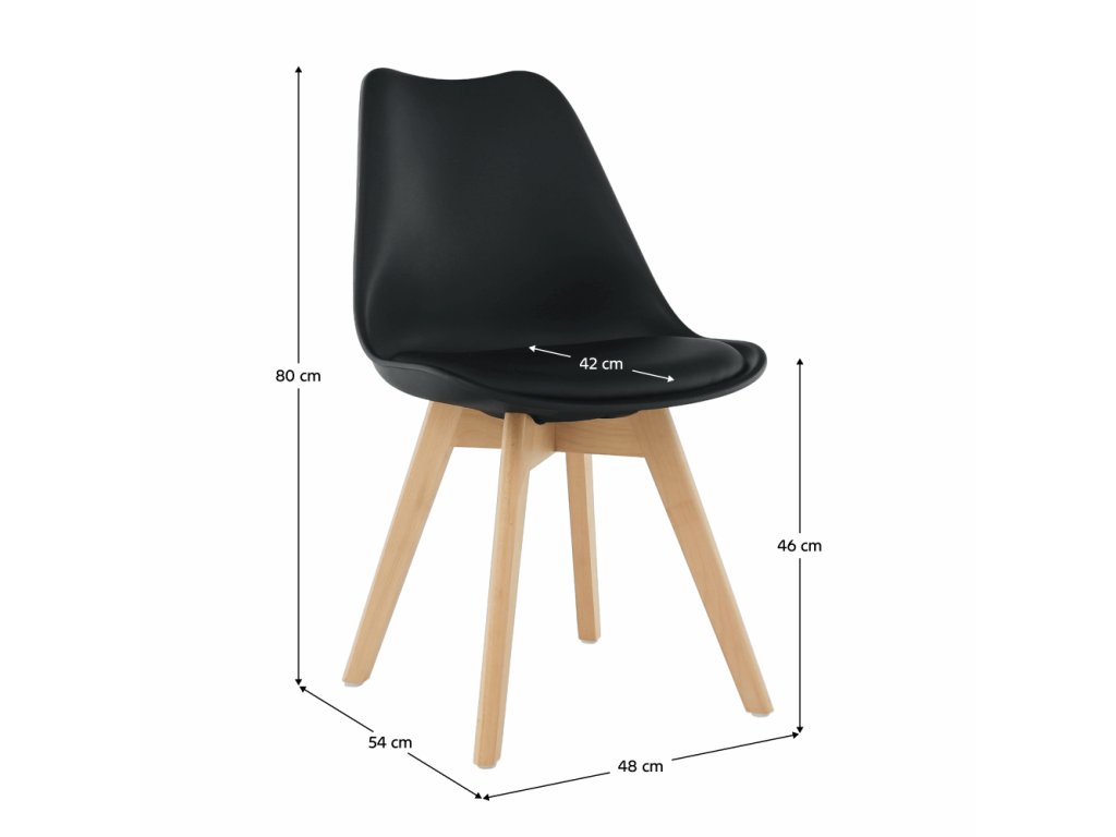 Pevné bukové nohy zajišťují stabilitu a dlouhou životnost, zatímco čalouněný sedák z odolné ekokůže s měkkou výplní poskytuje mimořádné pohodlí i při delším sezení. Černá barva dodává židli univerzální a elegantní vzhled, který snadno zapadne do moderních, industriálních i klasických interiérů.