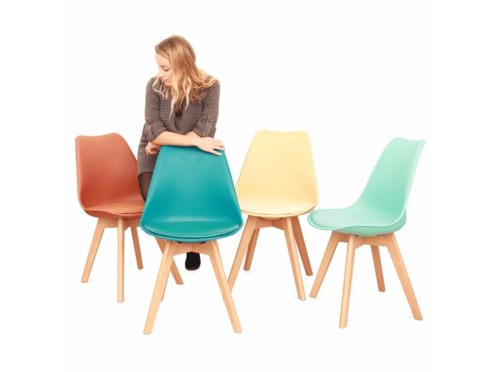 Jídelní židle SKANDI v mentolové barvě spojuje nadčasový skandinávský design, komfortní sezení a kvalitní zpracování. Je vyrobena z kombinace plastu, dřeva a ekokůže – materiálů, které zaručují pevnost, pohodlí i elegantní vzhled. Pevné bukové nohy dodávají židli přirozený charakter a dokonale ladí s moderním mentolovým sedákem.
