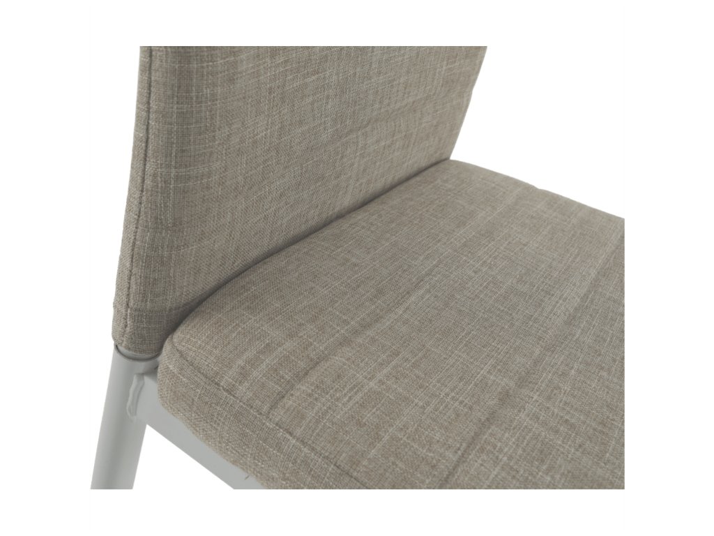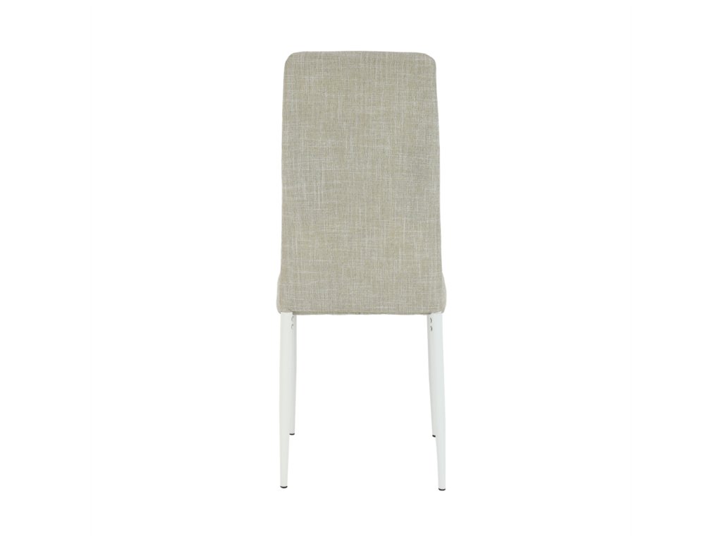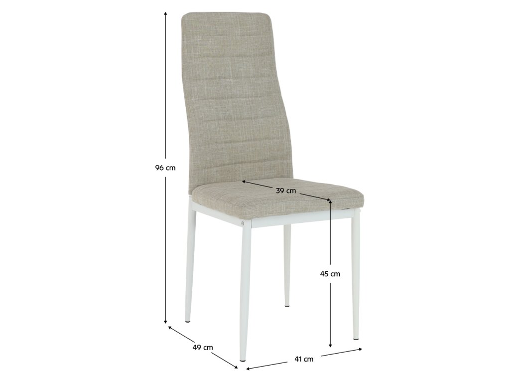 Pevný kovový rám v bílém provedení dodává židli stabilitu a čistý vzhled, díky kterému působí lehce a svěže. Vysoká opěrka zad zaručuje maximální komfort při sezení, zatímco výška sedu 45 cm poskytuje ideální ergonomii pro pohodlné stolování. Díky odolné látce s oděruodolností 50 000 oděrek je židle připravena na každodenní používání bez kompromisů v kvalitě.