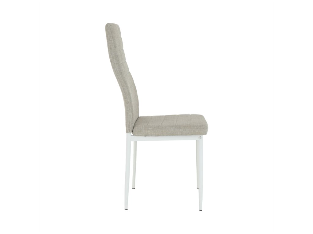 Jídelní židle SWISS ve světle šedé látce s bílými kovovými nohami přináší do interiéru eleganci, svěžest a komfort. Měkké čalounění, vysoká opěrka zad a pevná konstrukce...