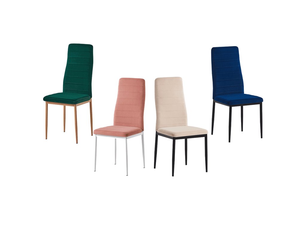 Stabilní kovový rám s dekorem dubu zajišťuje pevnost, spolehlivost a perfektní stabilitu. Díky vysoké opěrce zad a ergonomické výšce sedu 45 cm si vychutnáte maximální komfort při jídle i dlouhém sezení. Sametová látka s oděruodolností 85 000 oděrek (Martindale) garantuje kvalitu, odolnost a snadnou údržbu.