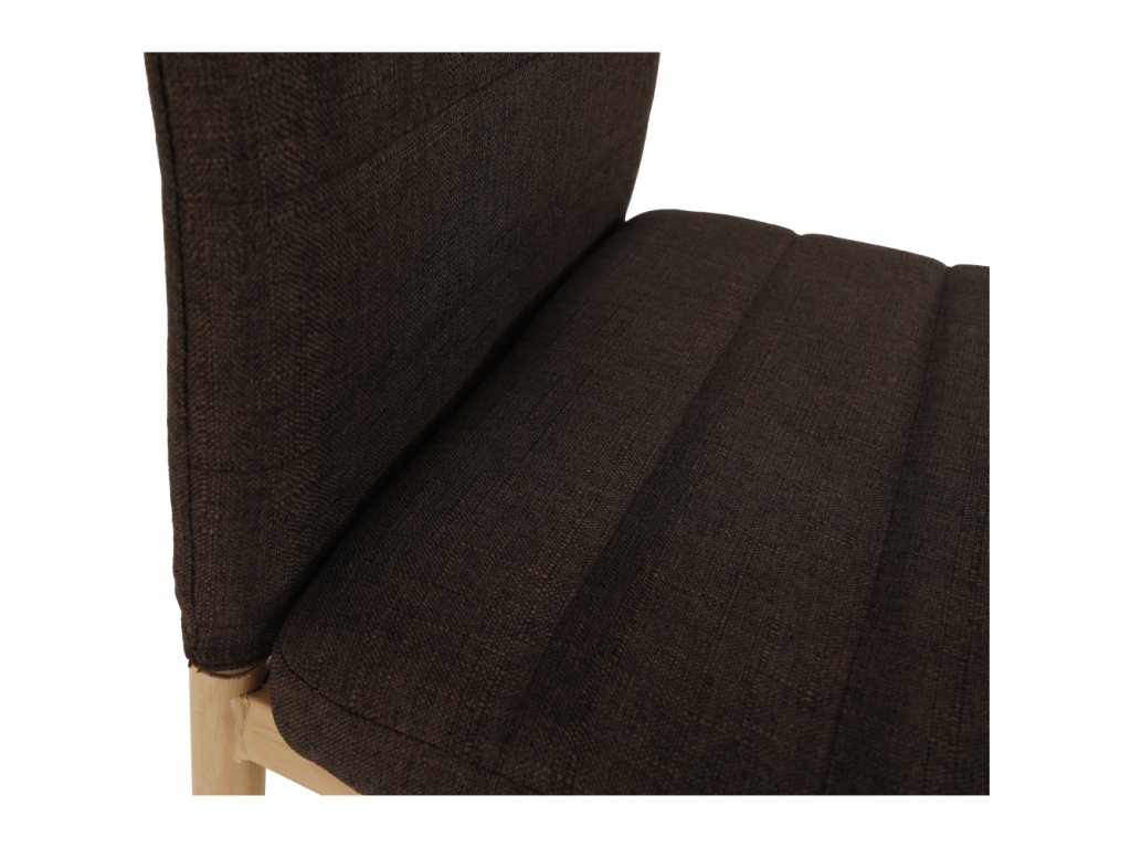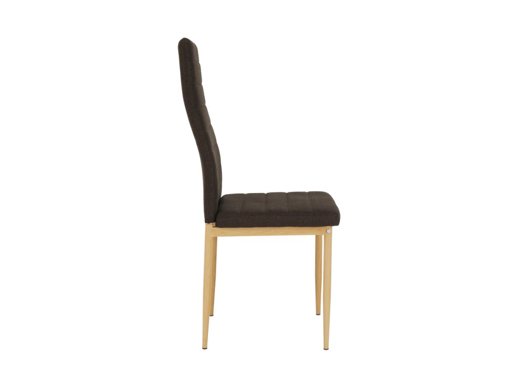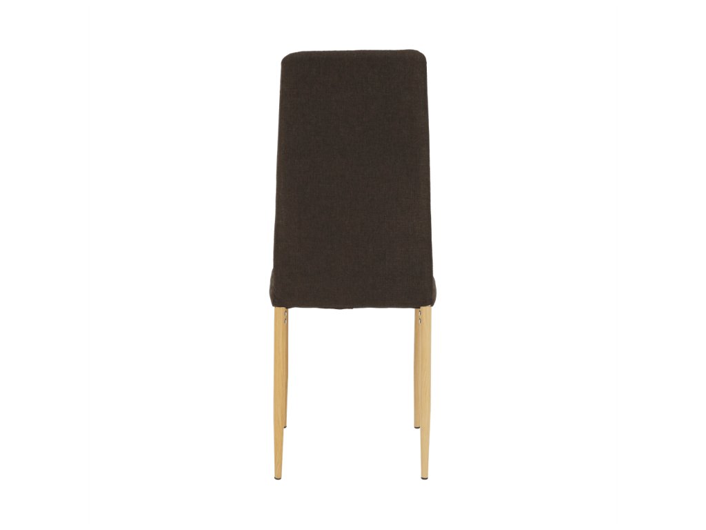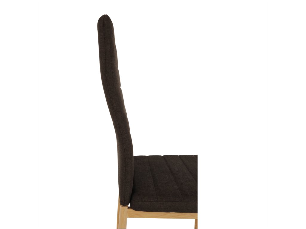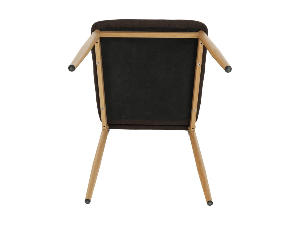 Židle SWISS v tmavě hnědé látce s nohami v dekoru buk je perfektní volbou pro ty, kteří hledají kombinaci přirozeného stylu, pohodlí a moderní elegance.