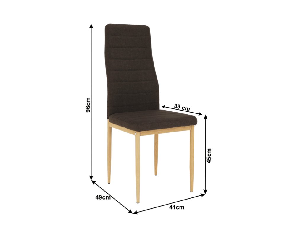Stabilní kovová konstrukce s povrchovou úpravou v dekoru bukového dřeva dodává židli přírodní vzhled a zajišťuje maximální stabilitu i dlouhou životnost. Vysoká opěrka zad poskytuje pohodlí při delším sezení, a díky optimální výšce sedu 45 cm je židle ergonomicky ideální pro každodenní stolování. Látka s oděruodolností 50 000 oděrek (Martindale) garantuje vysokou trvanlivost a kvalitu.