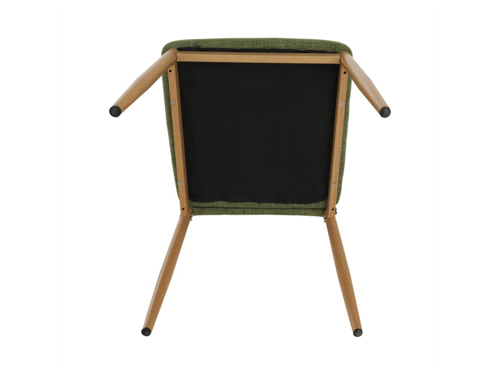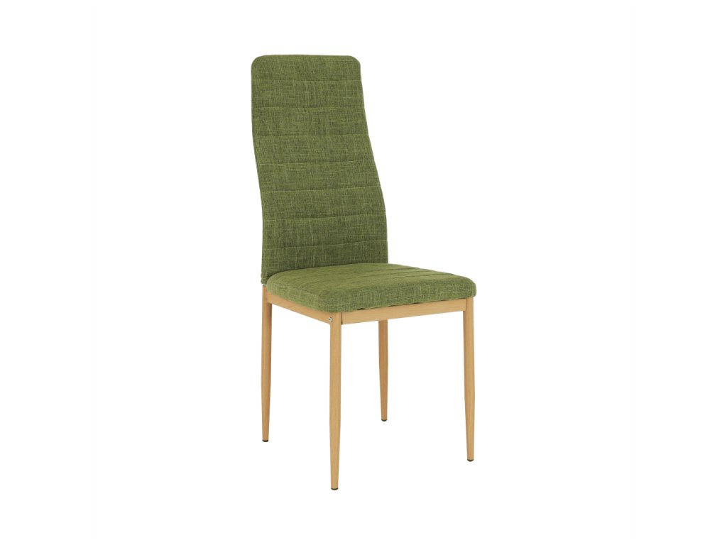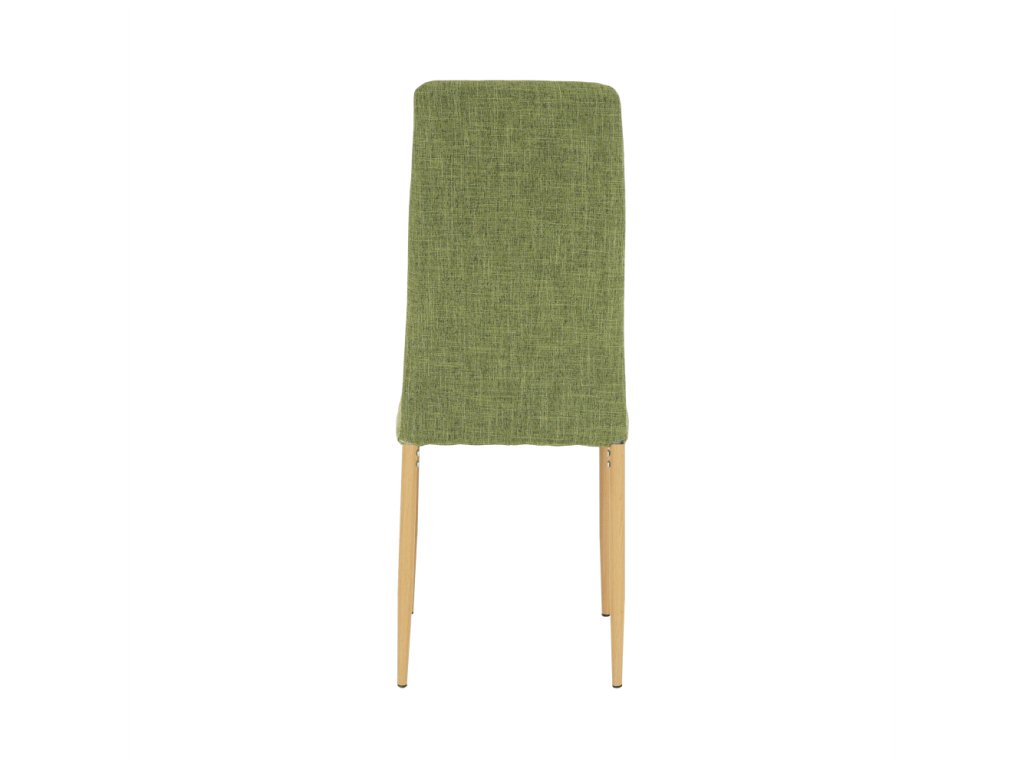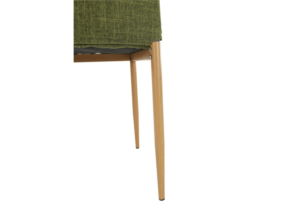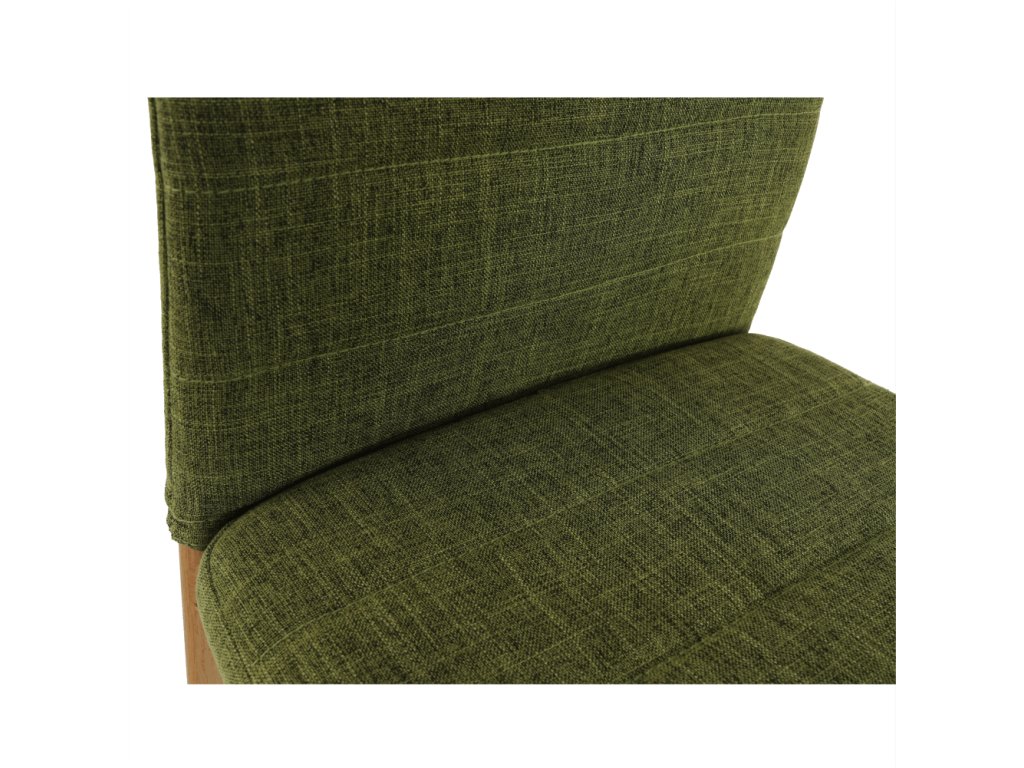 Židle SWISS v zelené látce s nohami v dekoru buk se stane nepřehlédnutelným prvkem vaší jídelny — spojuje v sobě eleganci, funkčnost a přirozený půvab, který zútulní každý interiér.