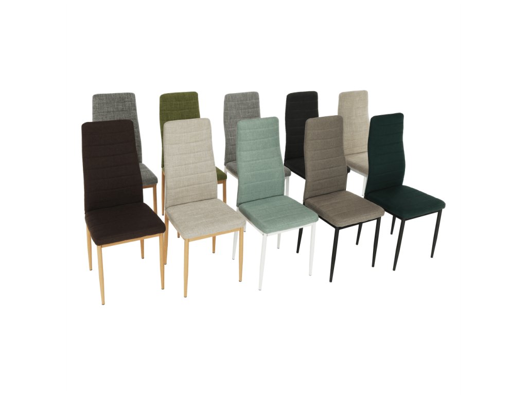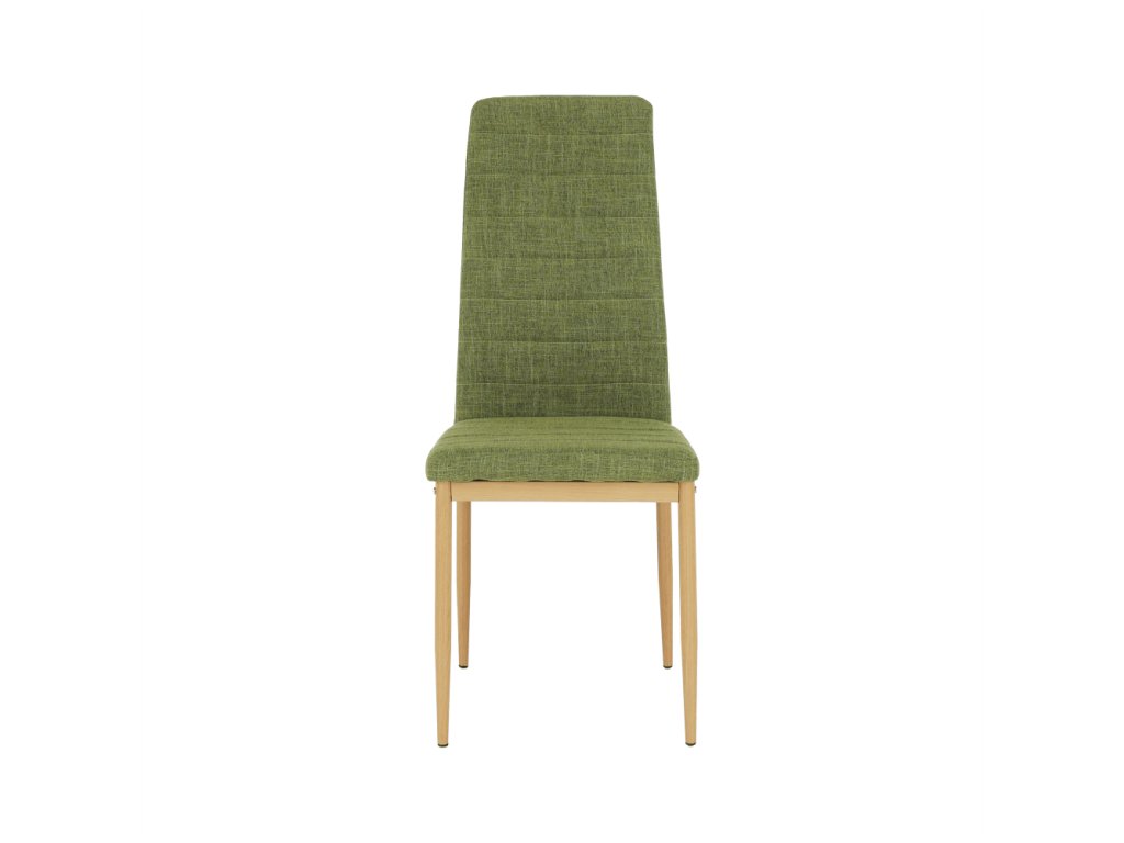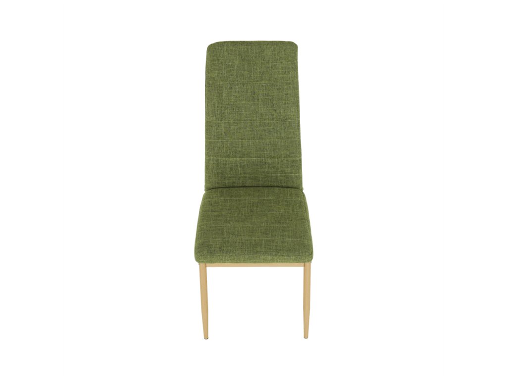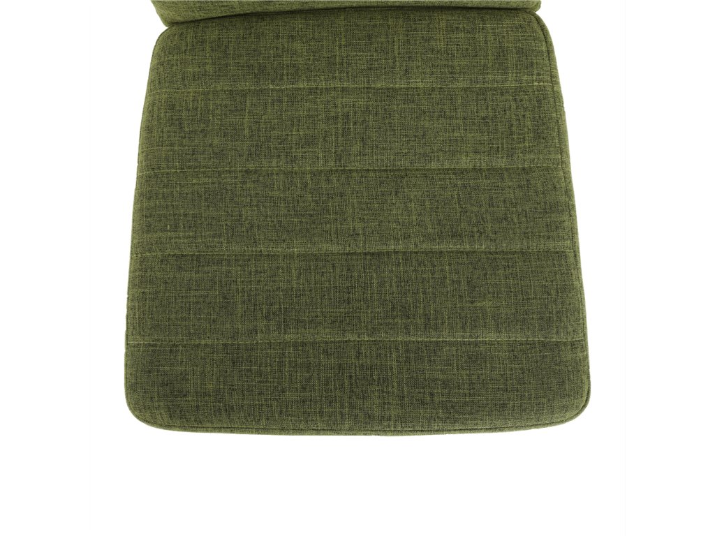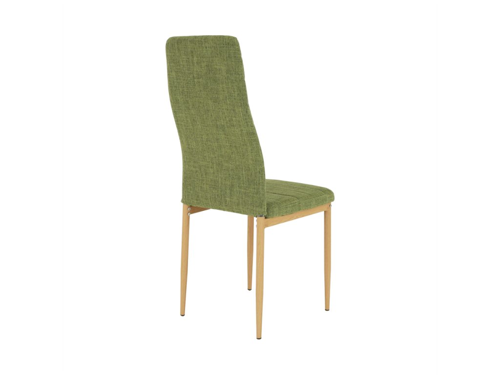Židle SWISS v zelené látce s nohami v dekoru buk se stane nepřehlédnutelným prvkem vaší jídelny — spojuje v sobě eleganci, funkčnost a přirozený půvab, který zútulní každý interiér.