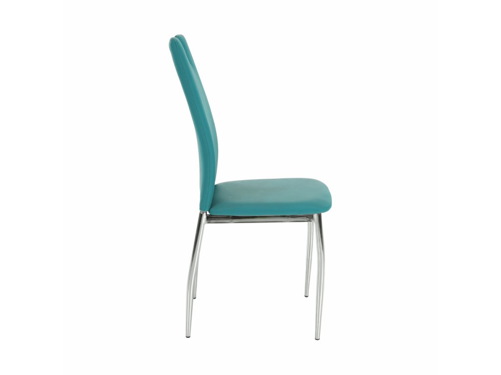 Dodejte své jídelně či kuchyni elegantní a moderní vzhled s jídelní židlí TERA, která zaujme svým luxusním provedením a nadčasovým stylem. Petrolejová ekokůže působí elegantně, sofistikovaně a zároveň přináší do interiéru příjemný barevný akcent. Chromované nohy židli dodávají vzdušnost, stabilitu i moderní lesk.