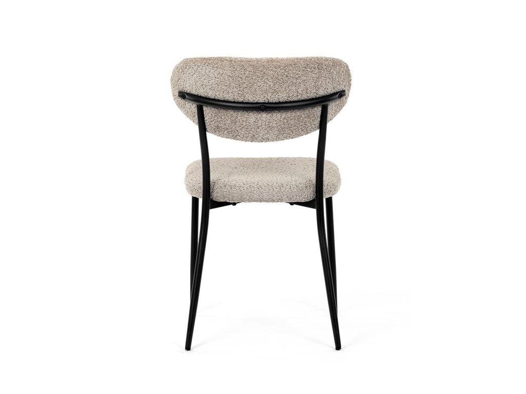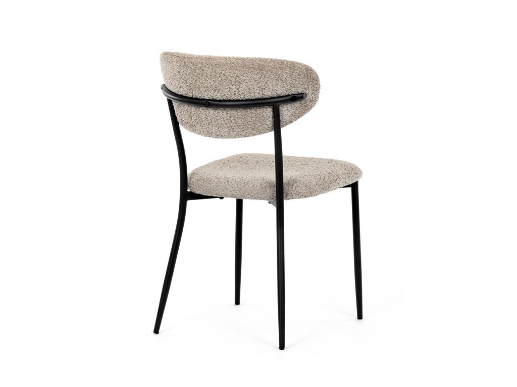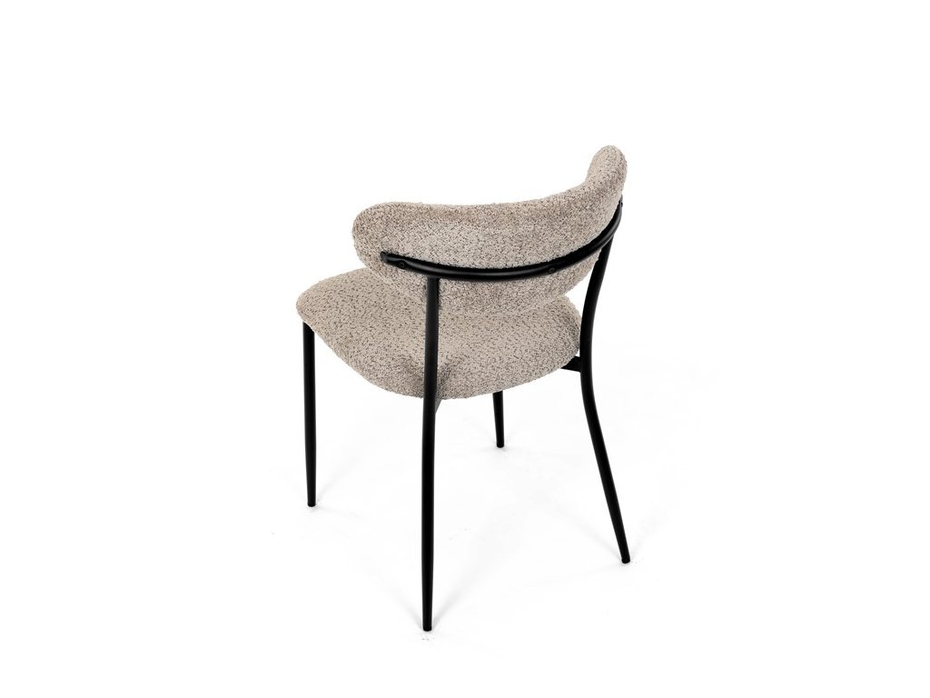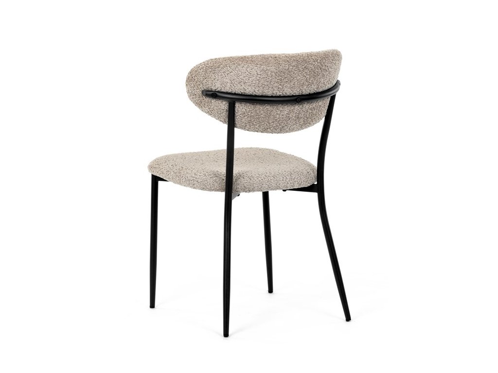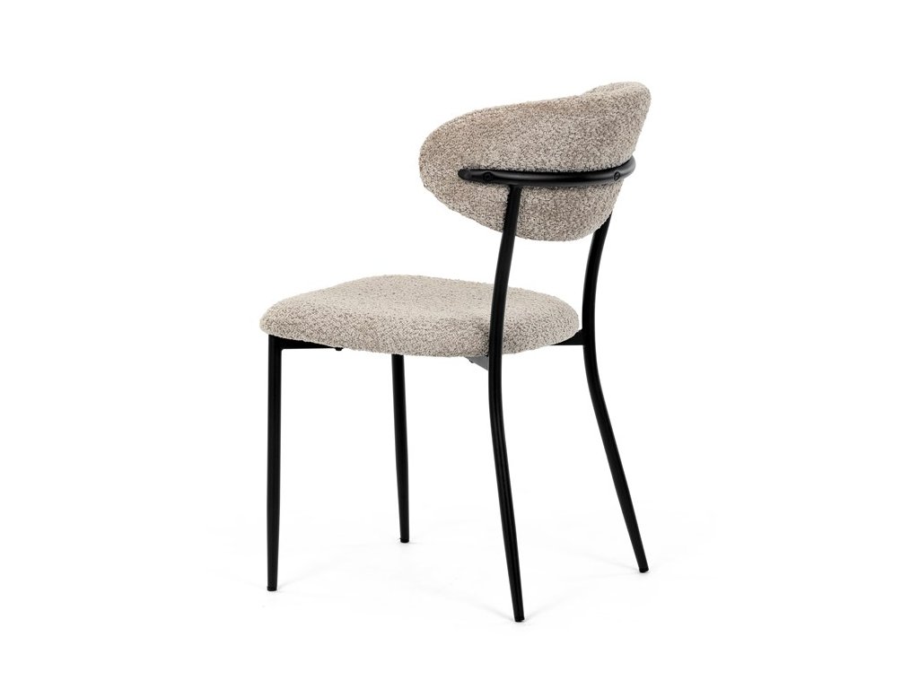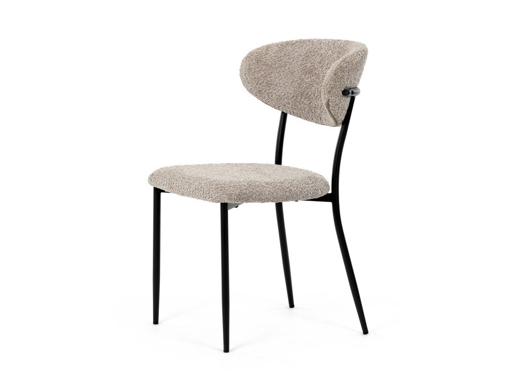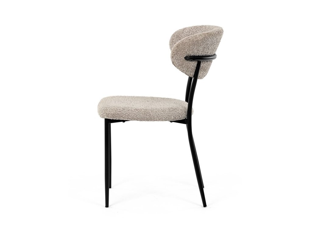 Jídelní židle VERONA – stylová Bouclé látka a pohodlí pro každou jídelnuElegantní jídelní židle VERONA spojuje nadčasový design s praktickými vlastnostmi, které oceníte při každodenním používání. Měkké čalounění z látky Bouclé dodává židli útulný vzhled a zároveň působí moderně v kombinaci s industriálními prvky interiéru. Stabilní černá kovová podnož zajišťuje pevnost a dlouhou životnost, zatímco ergonomicky tvarovaný sedák a opěradlo poskytují maximální komfort i při delším sezení. Minimalistický styl a precizní zpracování dělají z modelu VERONA univerzální volbu do jídelny, kuchyně i reprezentativních prostor.