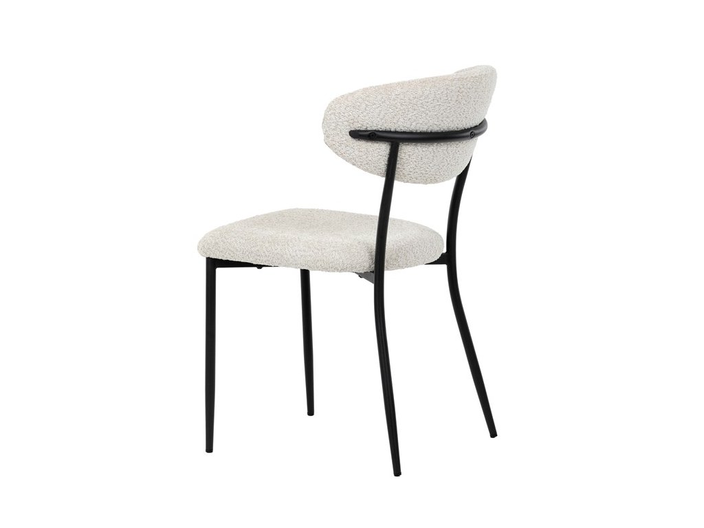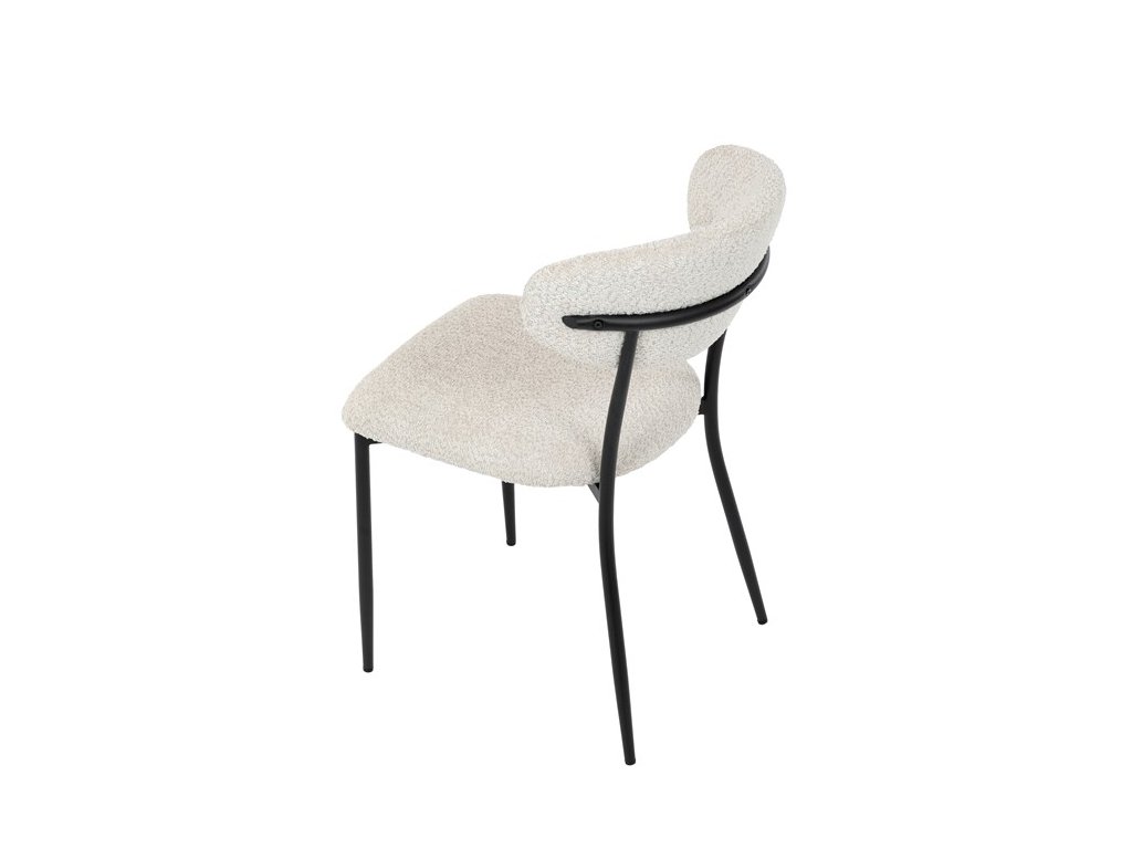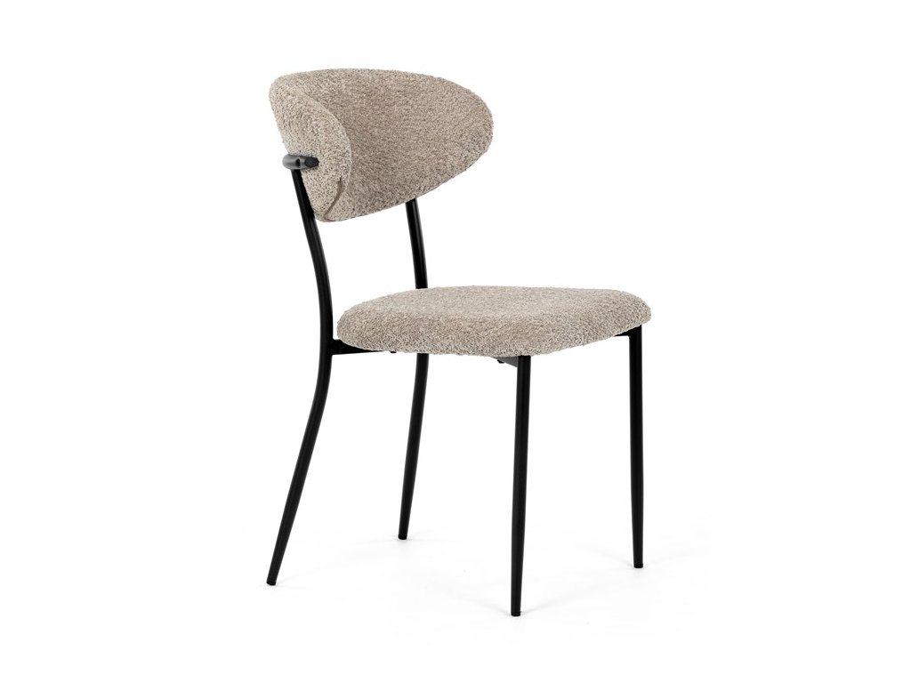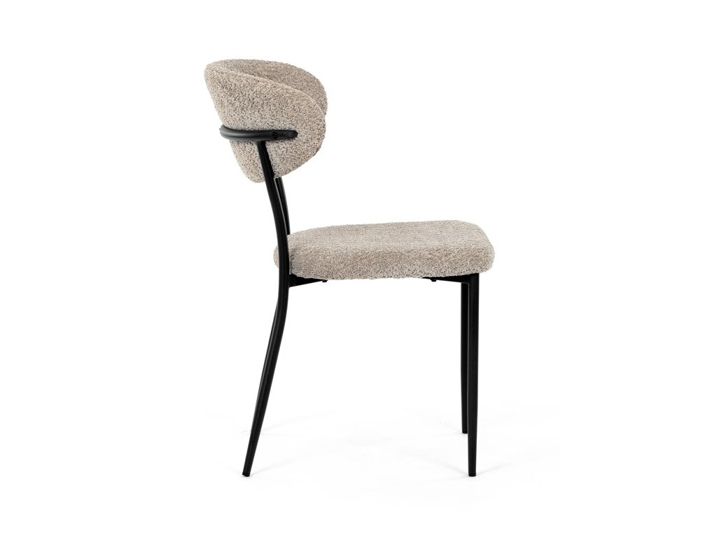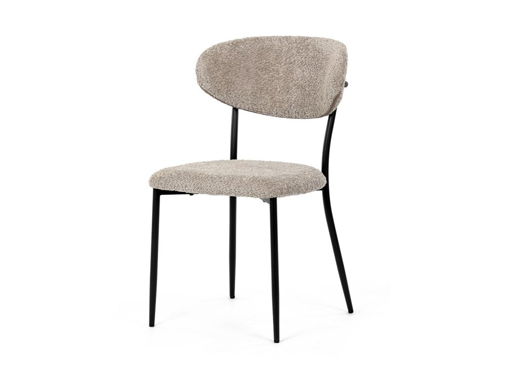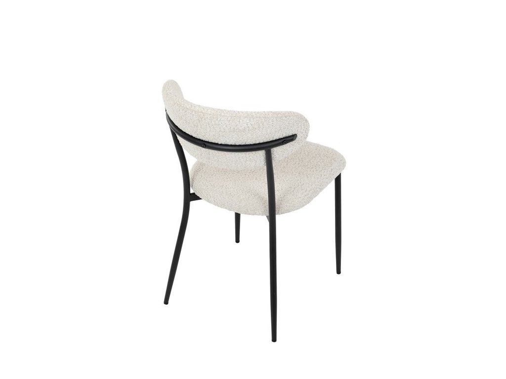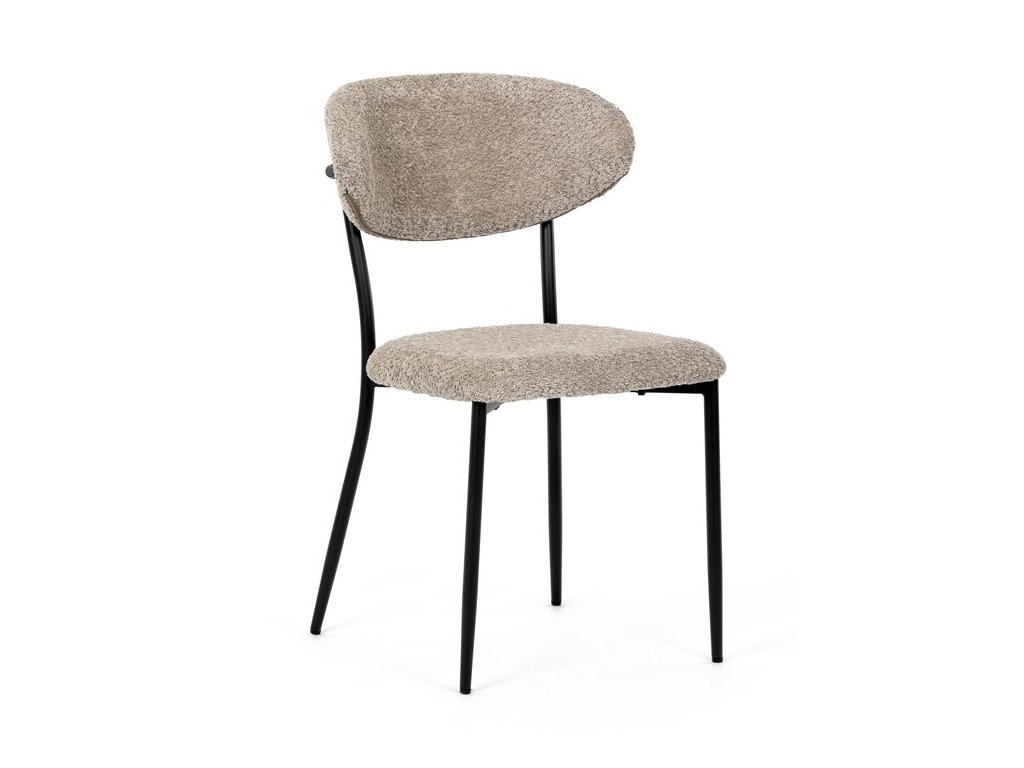 Jídelní židle VERONA – stylová Bouclé látka a pohodlí pro každou jídelnuElegantní jídelní židle VERONA spojuje nadčasový design s praktickými vlastnostmi, které oceníte při každodenním používání. Měkké čalounění z látky Bouclé dodává židli útulný vzhled a zároveň působí moderně v kombinaci s industriálními prvky interiéru. Stabilní černá kovová podnož zajišťuje pevnost a dlouhou životnost, zatímco ergonomicky tvarovaný sedák a opěradlo poskytují maximální komfort i při delším sezení. Minimalistický styl a precizní zpracování dělají z modelu VERONA univerzální volbu do jídelny, kuchyně i reprezentativních prostor.
