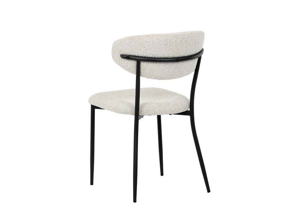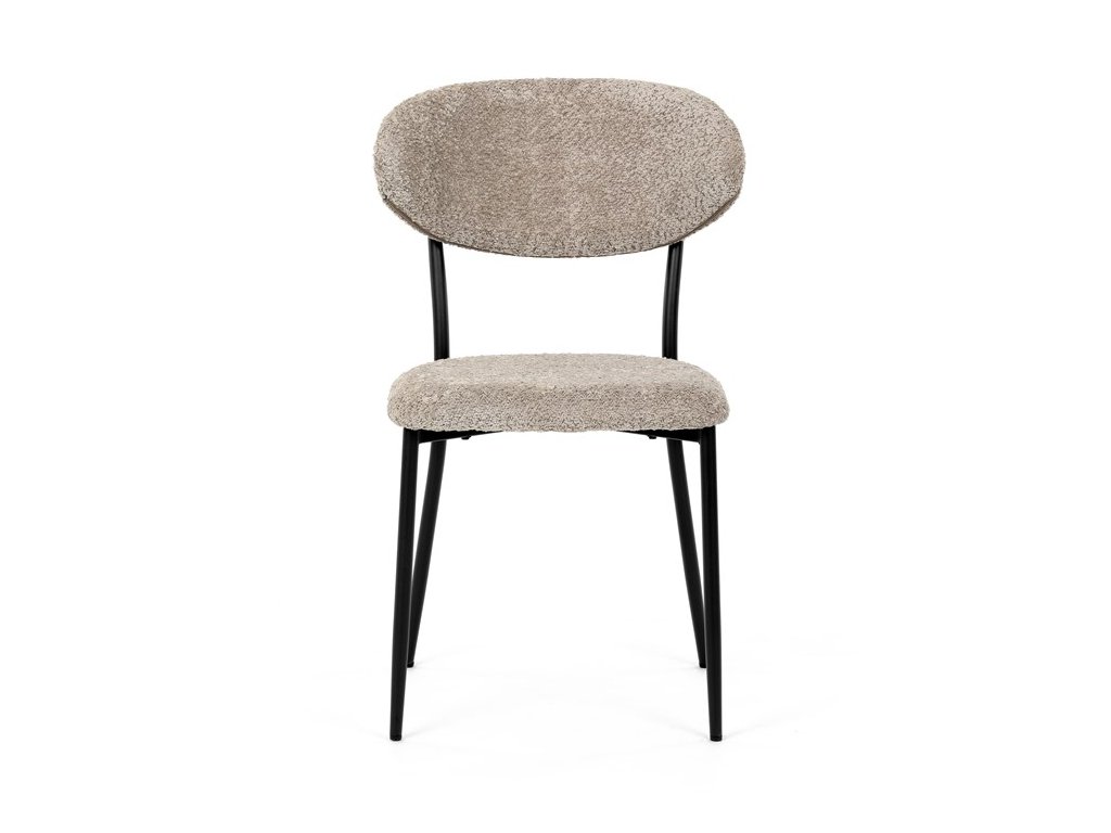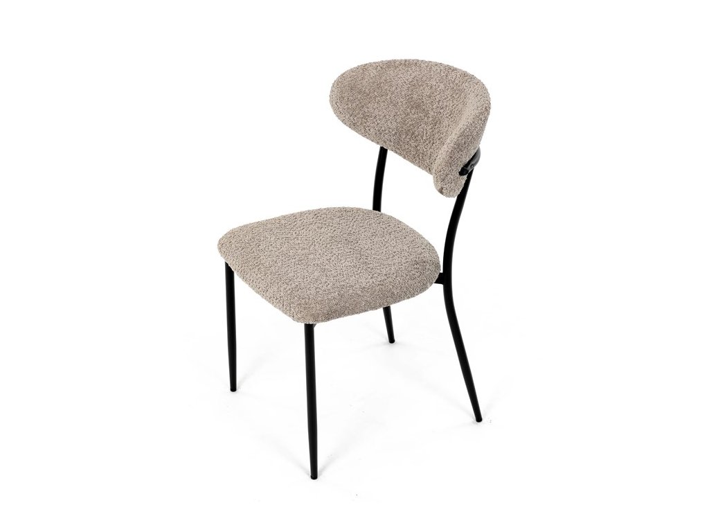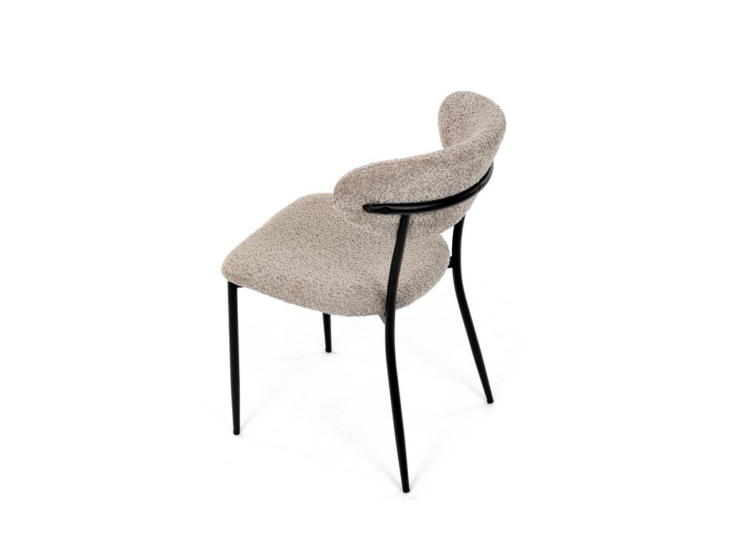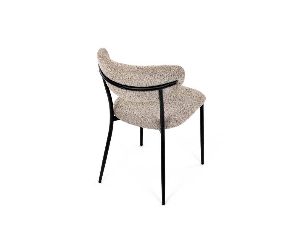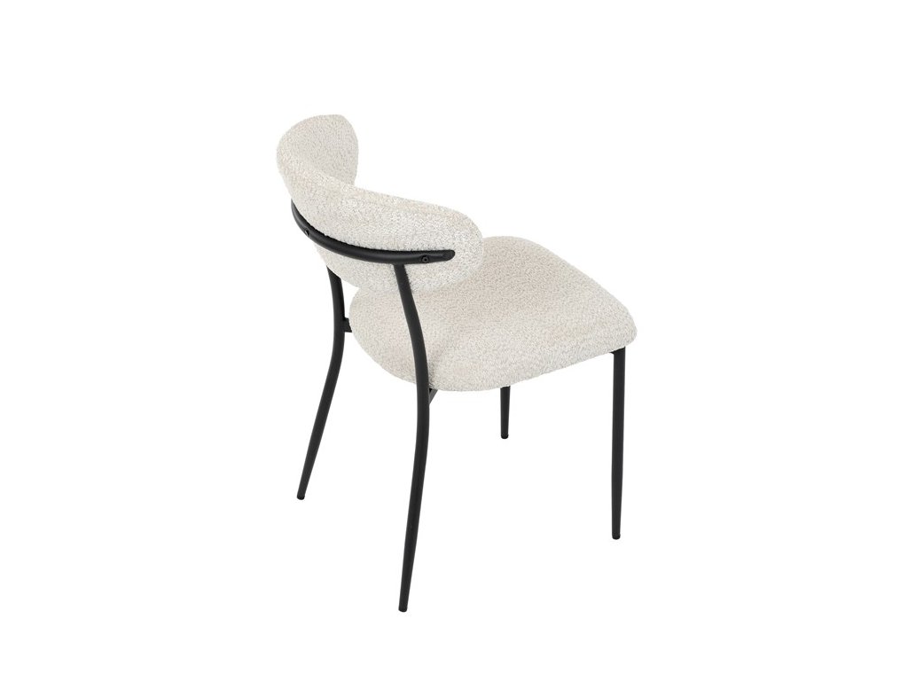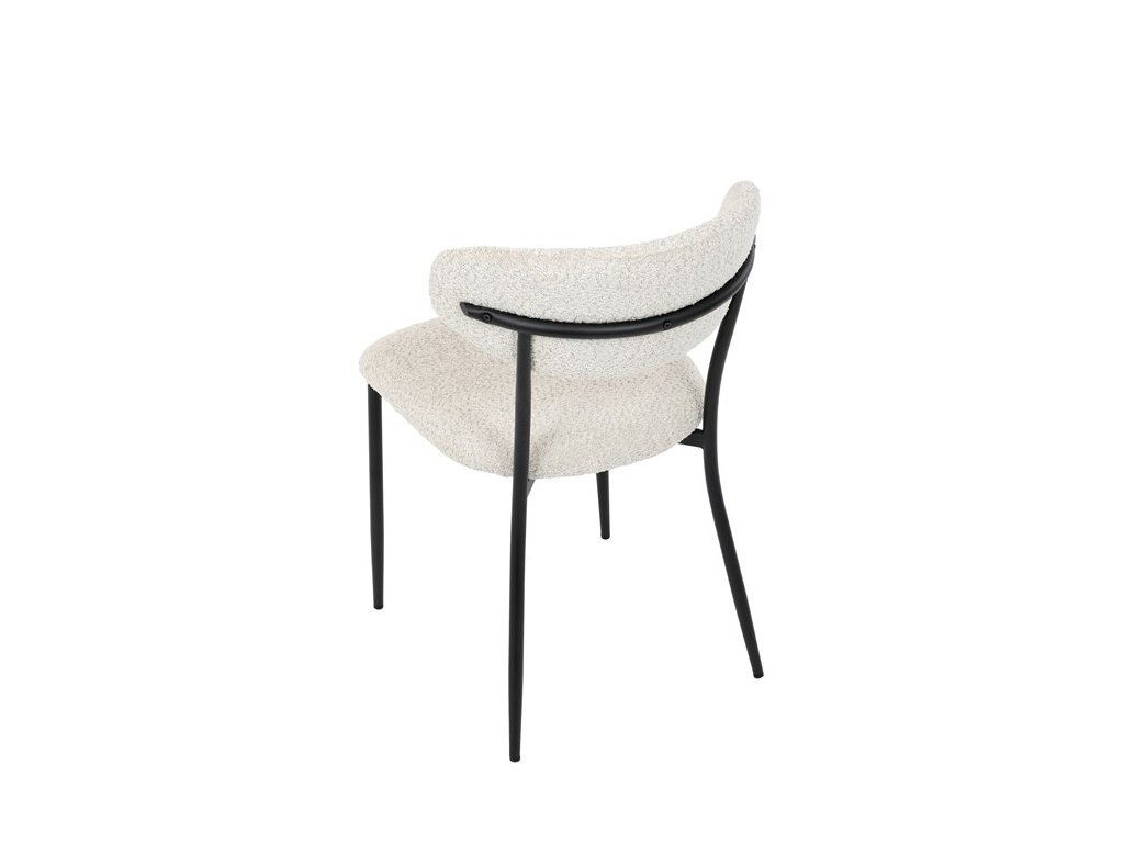 Jídelní židle VERONA – stylová Bouclé látka a pohodlí pro každou jídelnuElegantní jídelní židle VERONA spojuje nadčasový design s praktickými vlastnostmi, které oceníte při každodenním používání. Měkké čalounění z látky Bouclé dodává židli útulný vzhled a zároveň působí moderně v kombinaci s industriálními prvky interiéru. Stabilní černá kovová podnož zajišťuje pevnost a dlouhou životnost, zatímco ergonomicky tvarovaný sedák a opěradlo poskytují maximální komfort i při delším sezení. Minimalistický styl a precizní zpracování dělají z modelu VERONA univerzální volbu do jídelny, kuchyně i reprezentativních prostor.