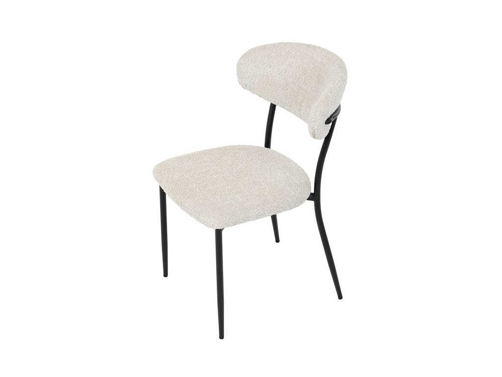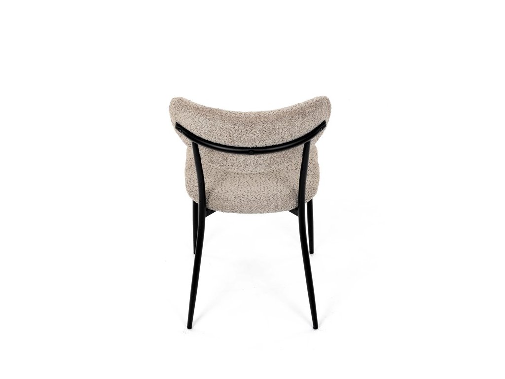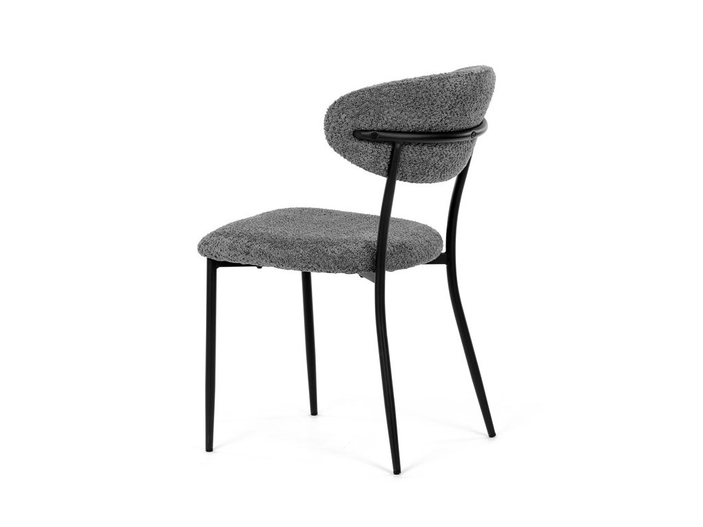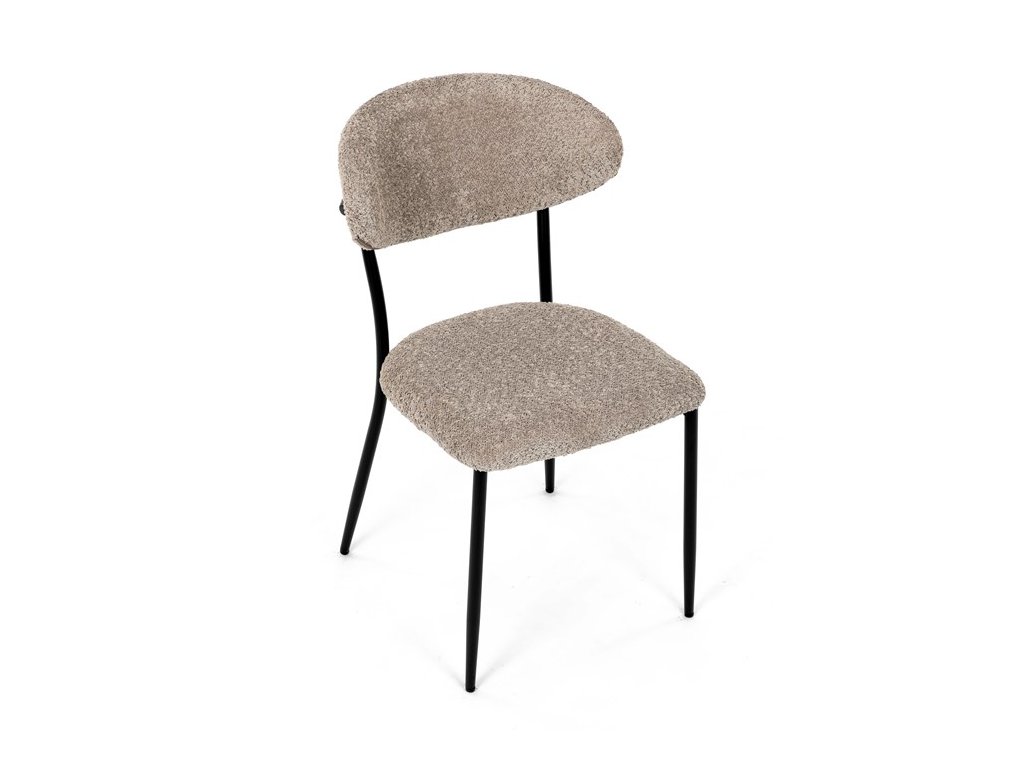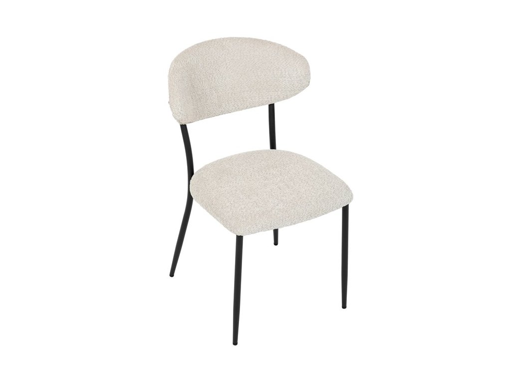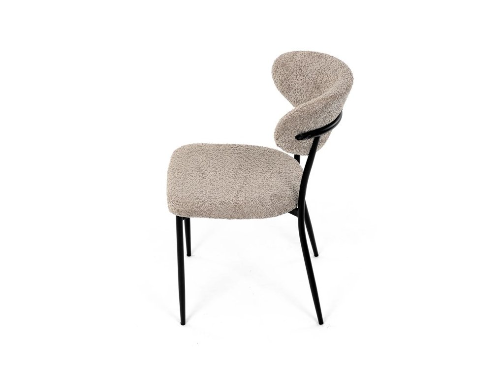 Jídelní židle VERONA – stylová Bouclé látka a pohodlí pro každou jídelnuElegantní jídelní židle VERONA spojuje nadčasový design s praktickými vlastnostmi, které oceníte při každodenním používání. Měkké čalounění z látky Bouclé dodává židli útulný vzhled a zároveň působí moderně v kombinaci s industriálními prvky interiéru. Stabilní černá kovová podnož zajišťuje pevnost a dlouhou životnost, zatímco ergonomicky tvarovaný sedák a opěradlo poskytují maximální komfort i při delším sezení. Minimalistický styl a precizní zpracování dělají z modelu VERONA univerzální volbu do jídelny, kuchyně i reprezentativních prostor.