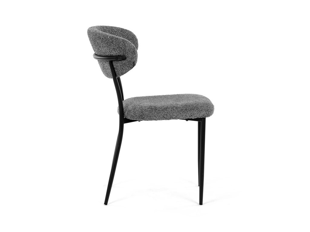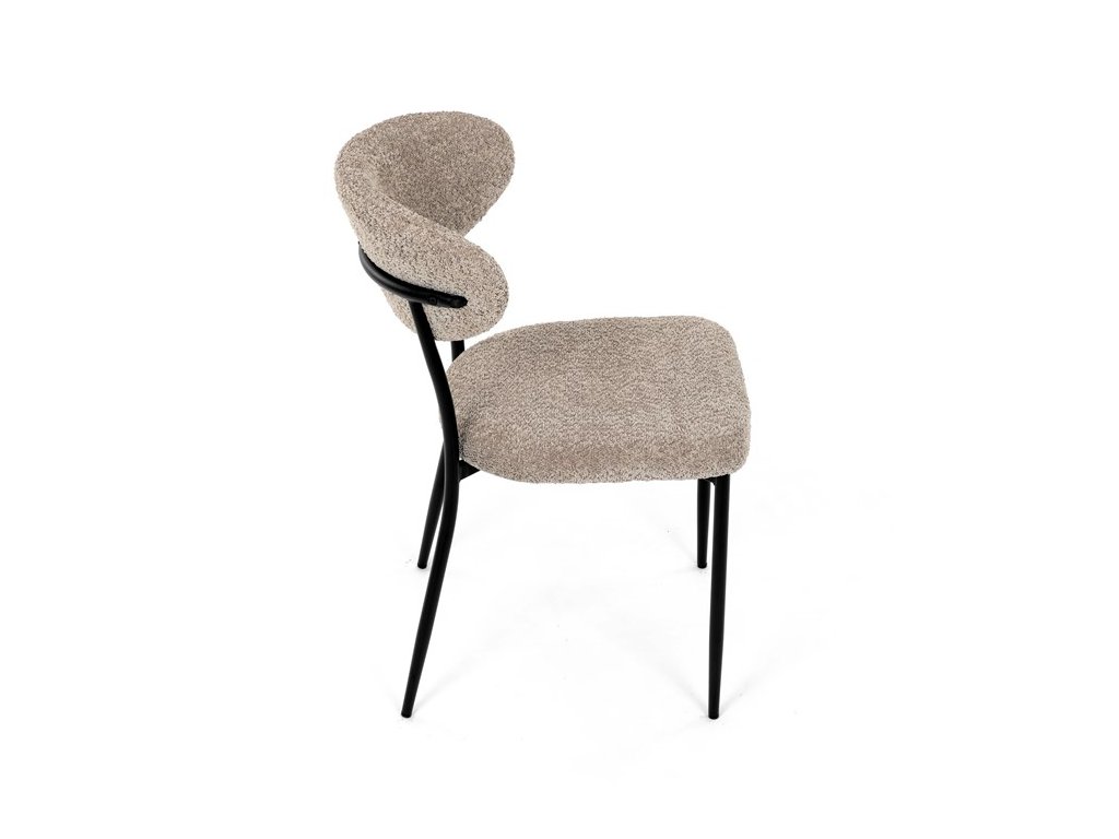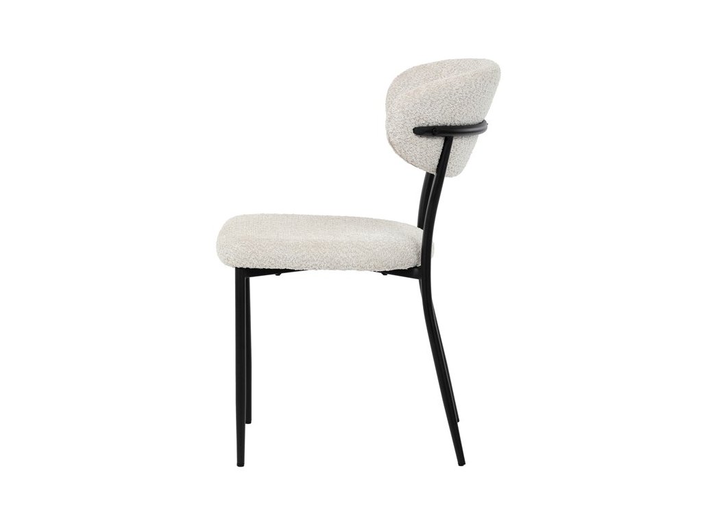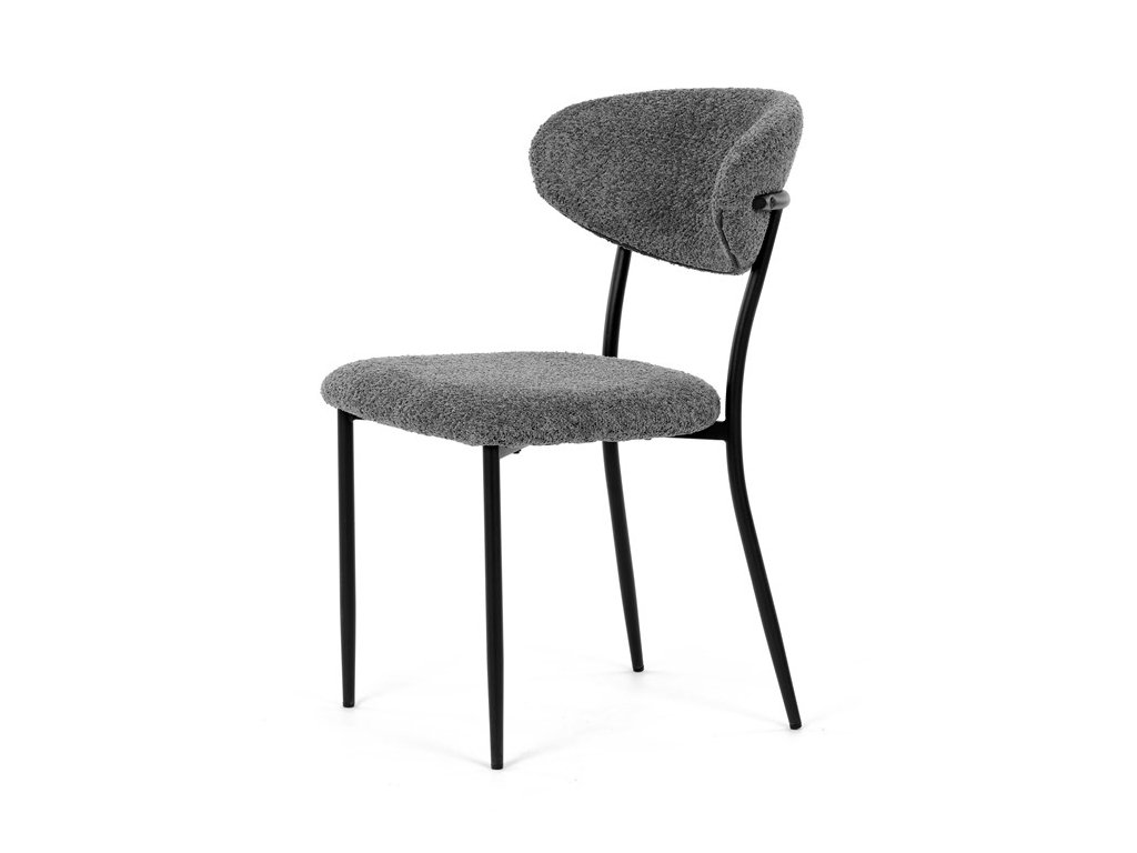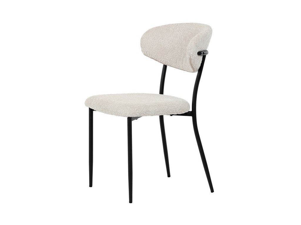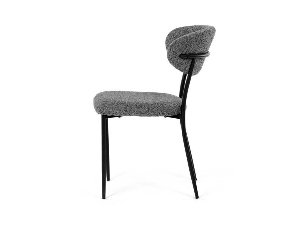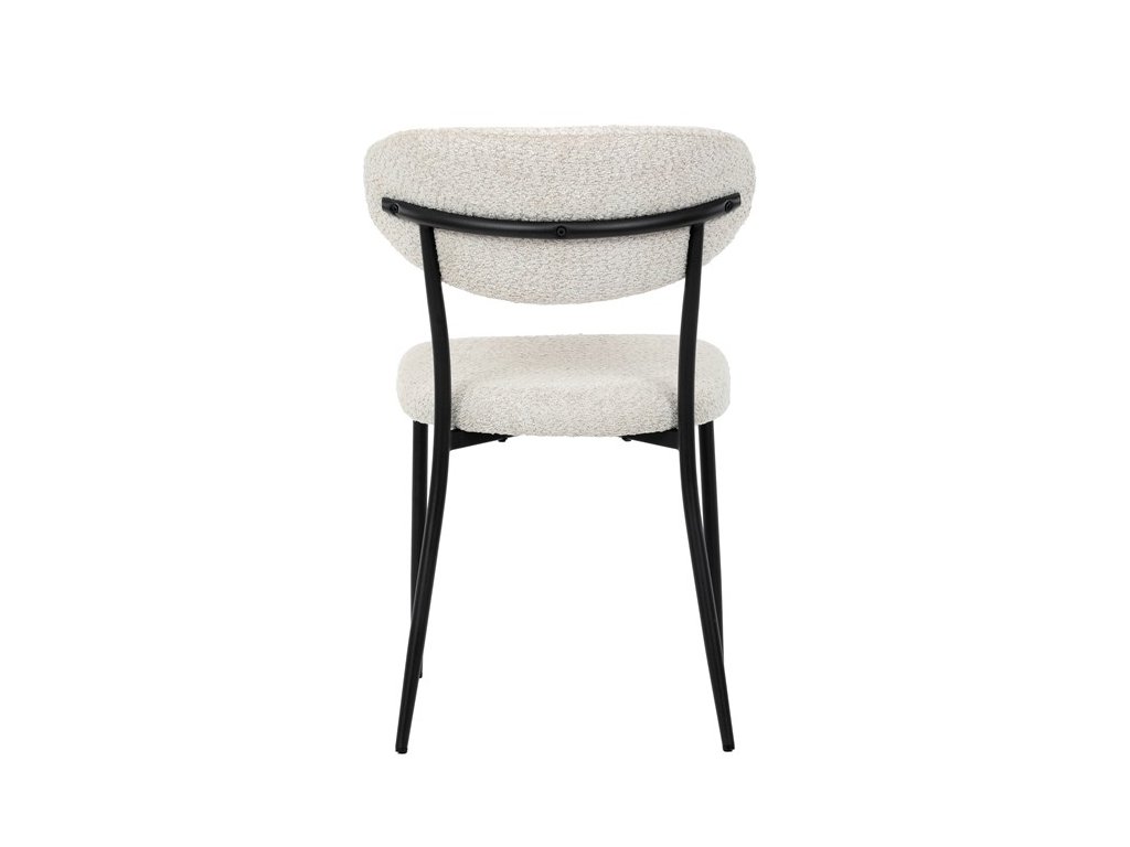 Jídelní židle VERONA – stylová Bouclé látka a pohodlí pro každou jídelnuElegantní jídelní židle VERONA spojuje nadčasový design s praktickými vlastnostmi, které oceníte při každodenním používání. Měkké čalounění z látky Bouclé dodává židli útulný vzhled a zároveň působí moderně v kombinaci s industriálními prvky interiéru. Stabilní černá kovová podnož zajišťuje pevnost a dlouhou životnost, zatímco ergonomicky tvarovaný sedák a opěradlo poskytují maximální komfort i při delším sezení. Minimalistický styl a precizní zpracování dělají z modelu VERONA univerzální volbu do jídelny, kuchyně i reprezentativních prostor.