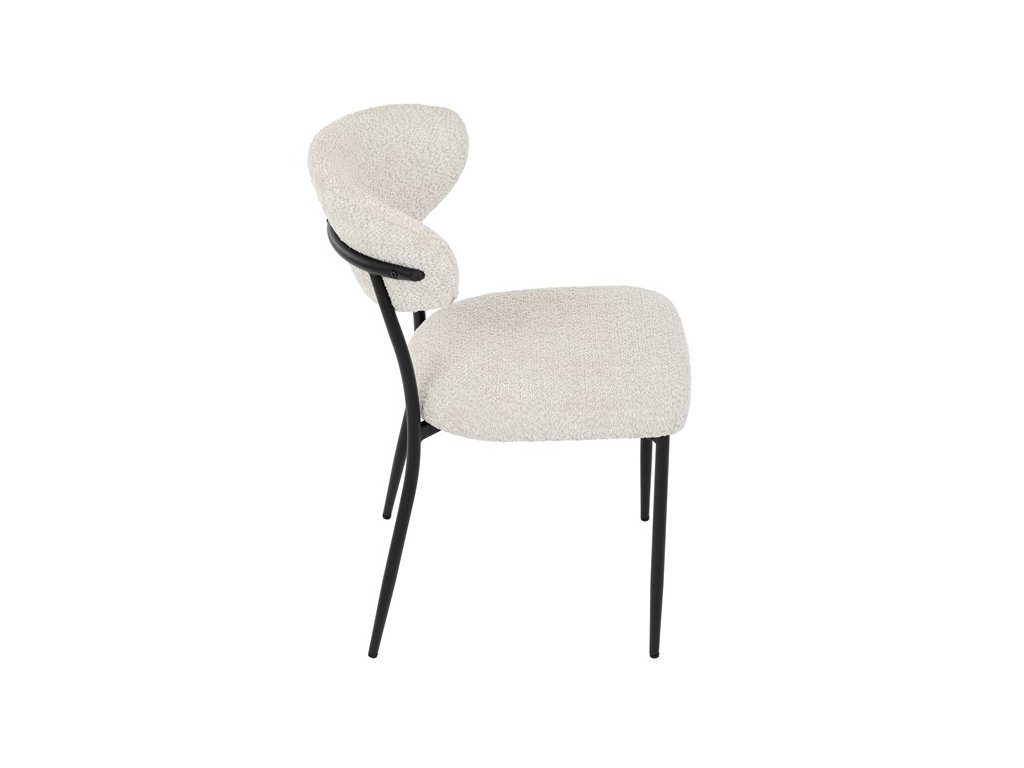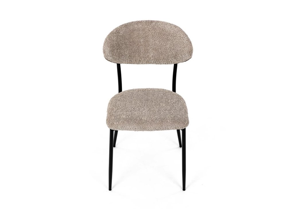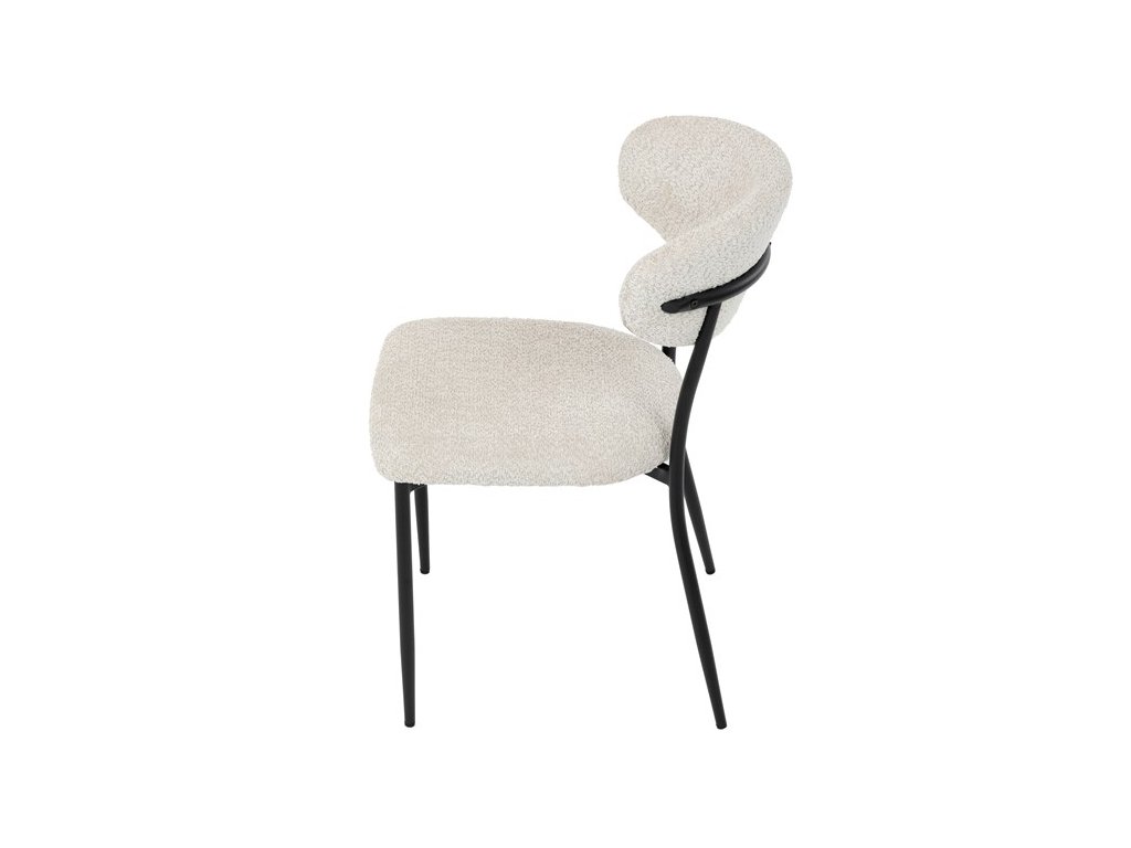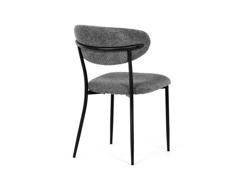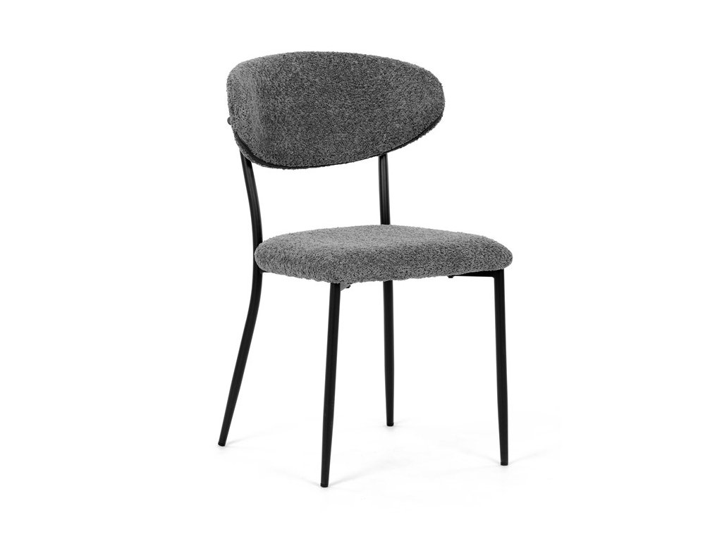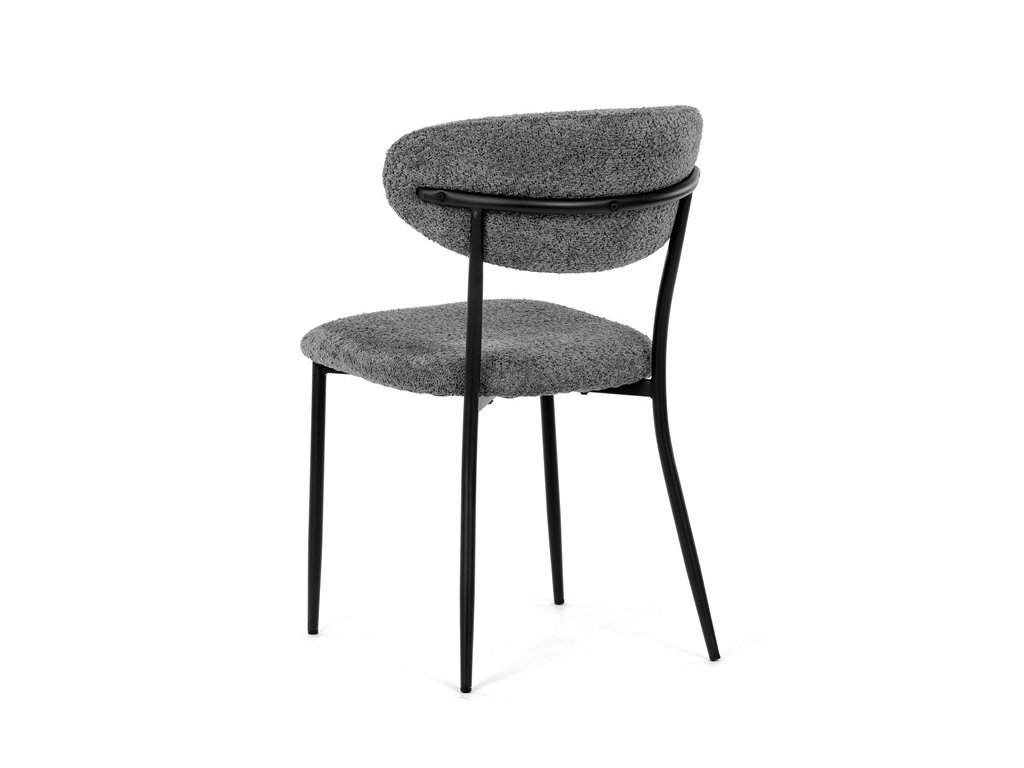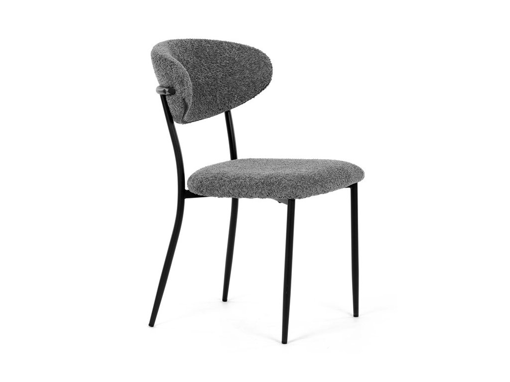 Jídelní židle VERONA – stylová Bouclé látka a pohodlí pro každou jídelnuElegantní jídelní židle VERONA spojuje nadčasový design s praktickými vlastnostmi, které oceníte při každodenním používání. Měkké čalounění z látky Bouclé dodává židli útulný vzhled a zároveň působí moderně v kombinaci s industriálními prvky interiéru. Stabilní černá kovová podnož zajišťuje pevnost a dlouhou životnost, zatímco ergonomicky tvarovaný sedák a opěradlo poskytují maximální komfort i při delším sezení. Minimalistický styl a precizní zpracování dělají z modelu VERONA univerzální volbu do jídelny, kuchyně i reprezentativních prostor.