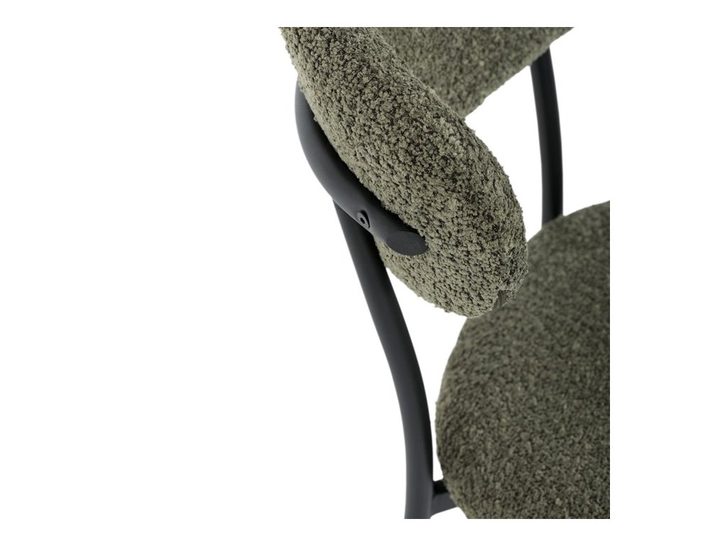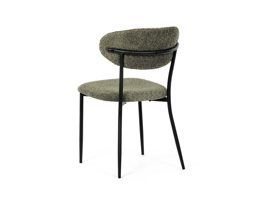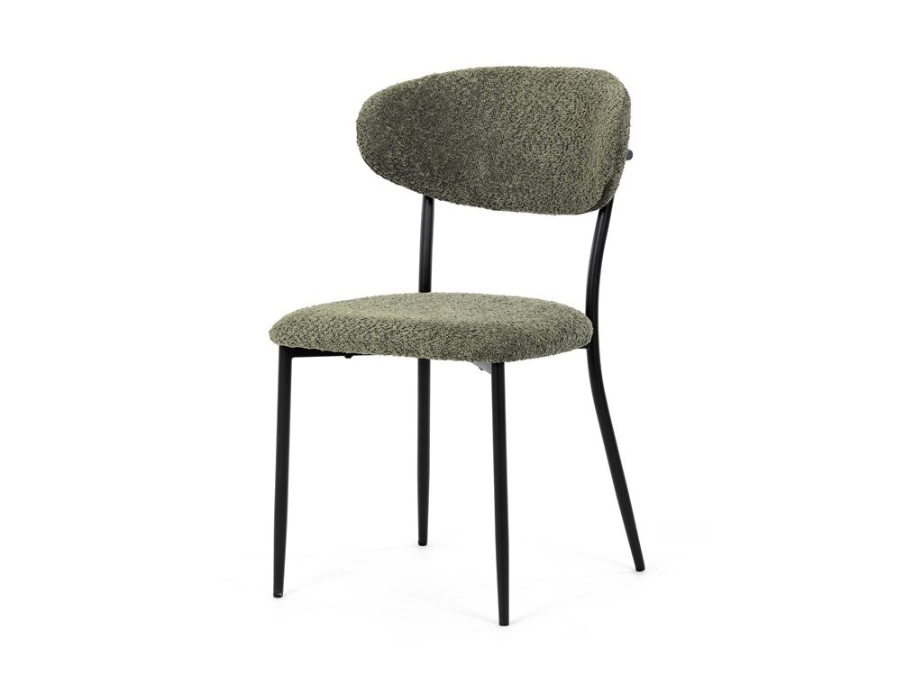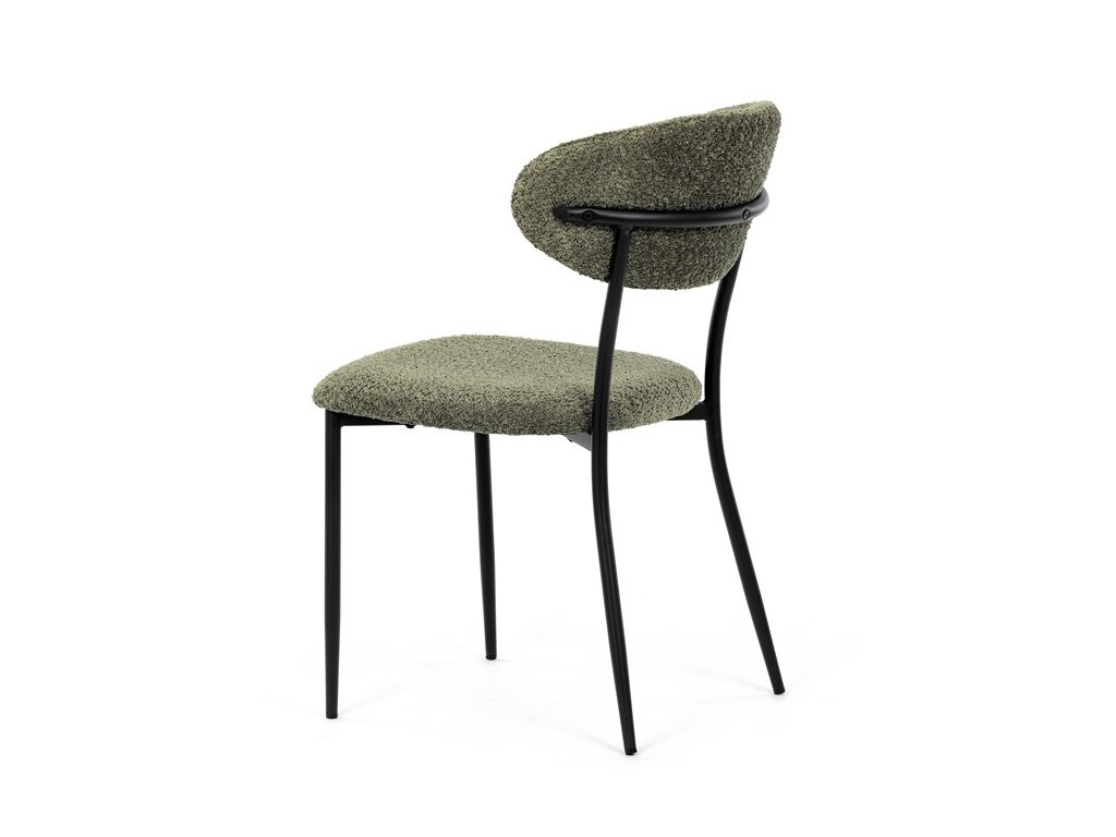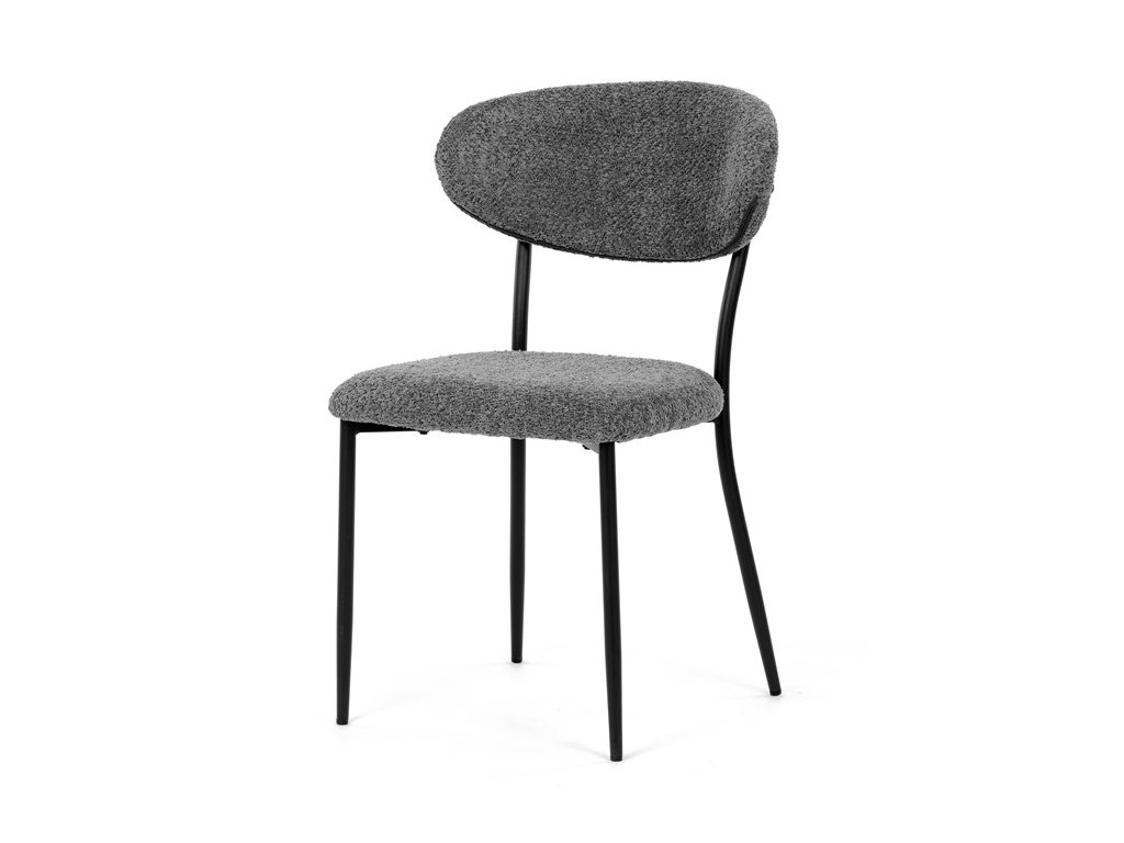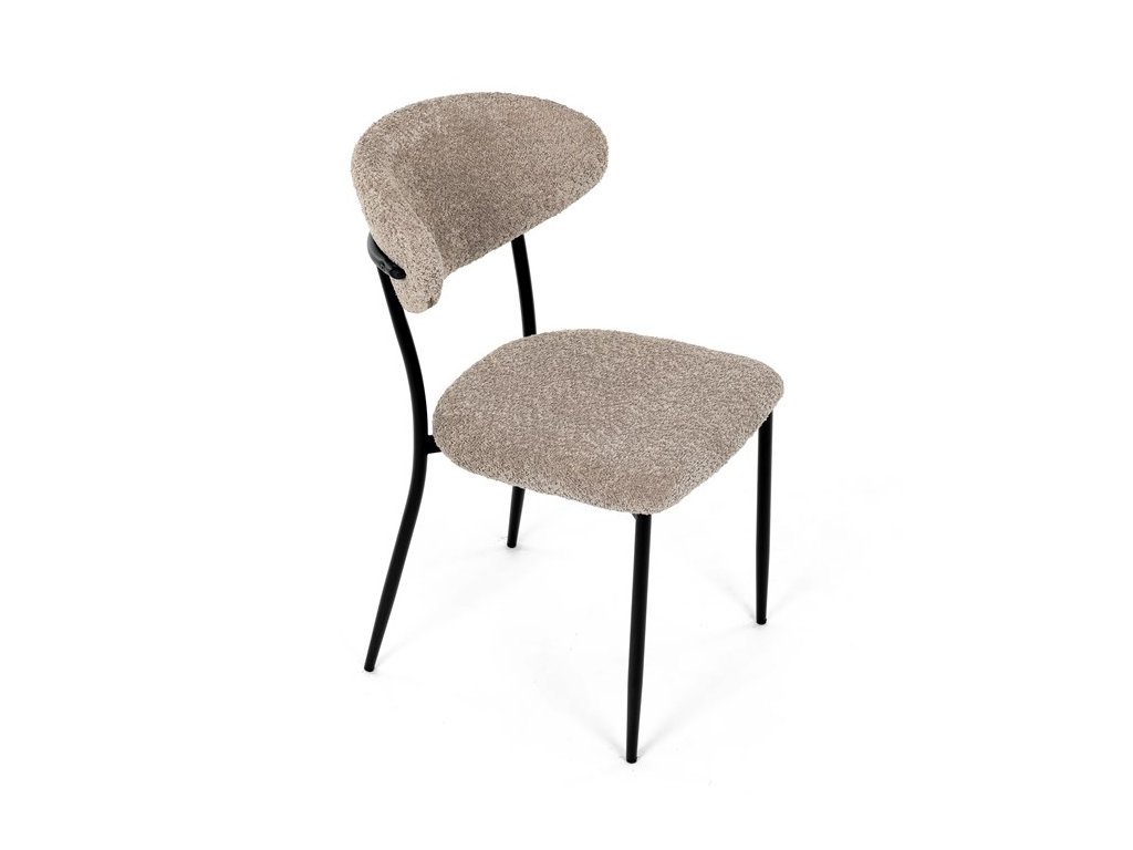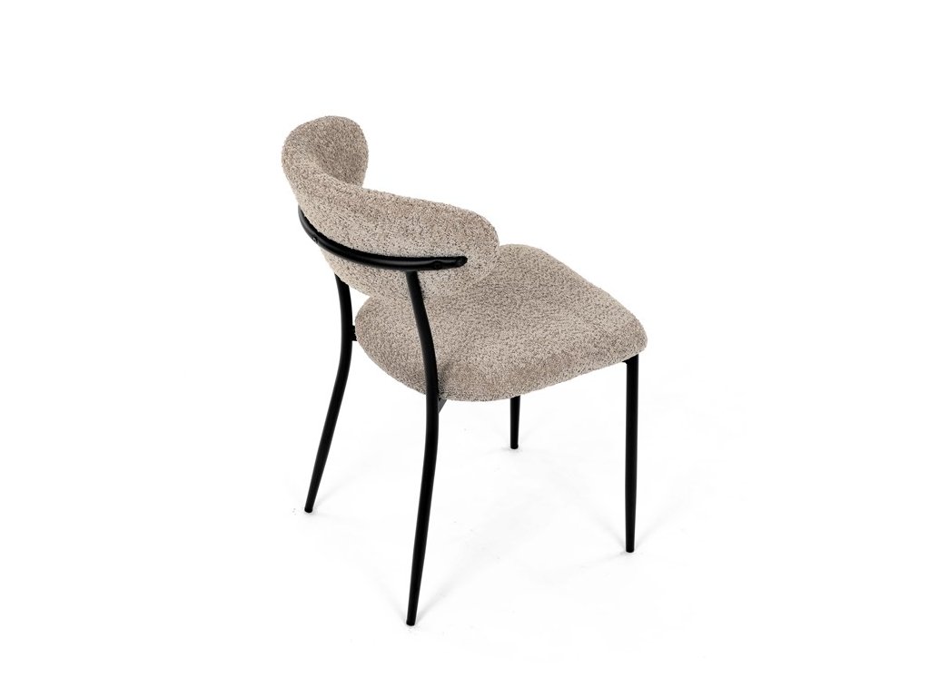 Jídelní židle VERONA – stylová Bouclé látka a pohodlí pro každou jídelnuElegantní jídelní židle VERONA spojuje nadčasový design s praktickými vlastnostmi, které oceníte při každodenním používání. Měkké čalounění z látky Bouclé dodává židli útulný vzhled a zároveň působí moderně v kombinaci s industriálními prvky interiéru. Stabilní černá kovová podnož zajišťuje pevnost a dlouhou životnost, zatímco ergonomicky tvarovaný sedák a opěradlo poskytují maximální komfort i při delším sezení. Minimalistický styl a precizní zpracování dělají z modelu VERONA univerzální volbu do jídelny, kuchyně i reprezentativních prostor.
