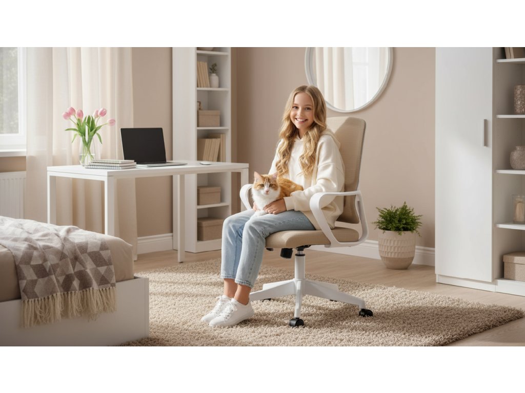 Židle MAGIC je moderní juniorský model, který roste spolu s potřebami větších dětí a teenagerů. Nadčasový design v béžovo-bílé kombinaci působí elegantně a snadno zapadne do studentského pokoje i domácí pracovny. Díky výškově nastavitelnému sedáku a funkci houpání podporuje pohodlné a zdravé sezení při učení i volném čase.
