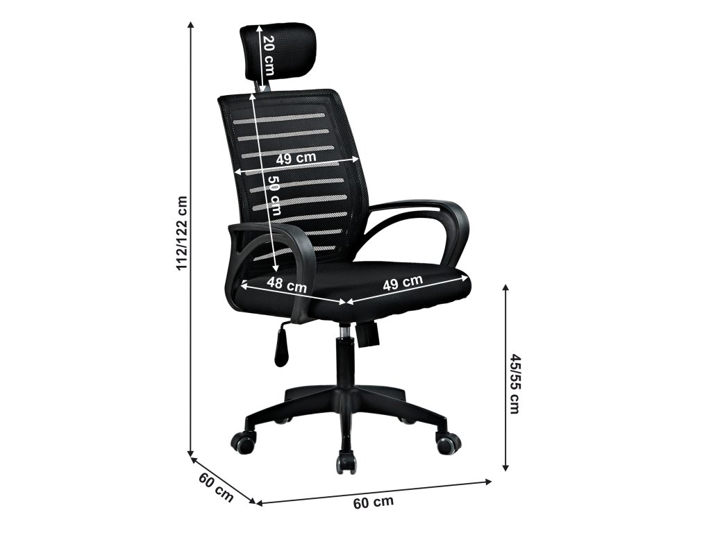 Křeslo je vybaveno nastavitelnou výškou sedu, houpacím mechanismem a také nastavitelnou opěrkou hlavy, která poskytuje ideální oporu pro krční páteř. Plastové opěrky rukou i stabilní plastová základna zajišťují pevnost a odolnost konstrukce. Součástí jsou také univerzální kolečka, vhodná pro tvrdé i měkké podlahy.