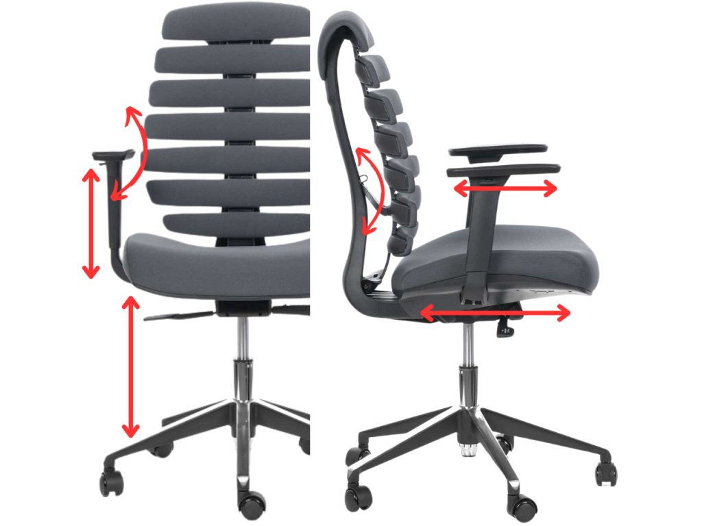 Kancelářská židle DANNY – originální design a ergonomie pro zdravé sezeníKancelářská židle DANNY v moderní šedé barvě spojuje atraktivní vzhled s praktickou ergonomií, a proto patří mezi nejoblíbenější modely ve své kategorii. Díky synchronní mechanice, pohyblivým lamelám na opěráku a ergonomicky tvarovanému sedáku podporuje aktivní způsob sezení a přirozený pohyb těla.
