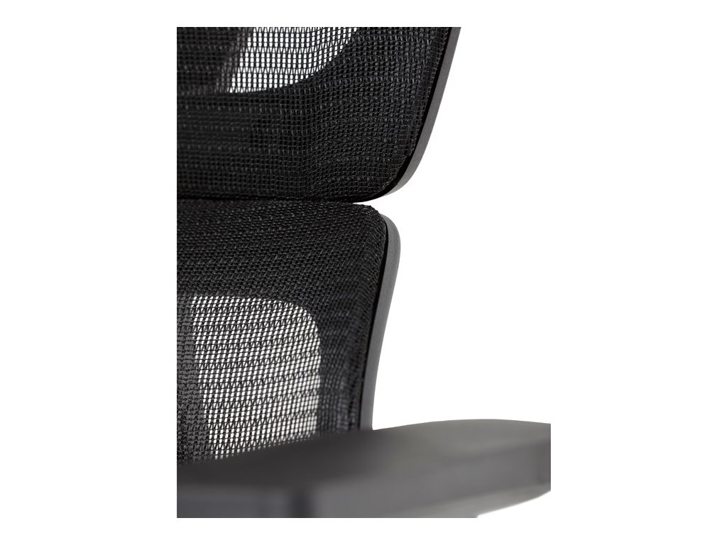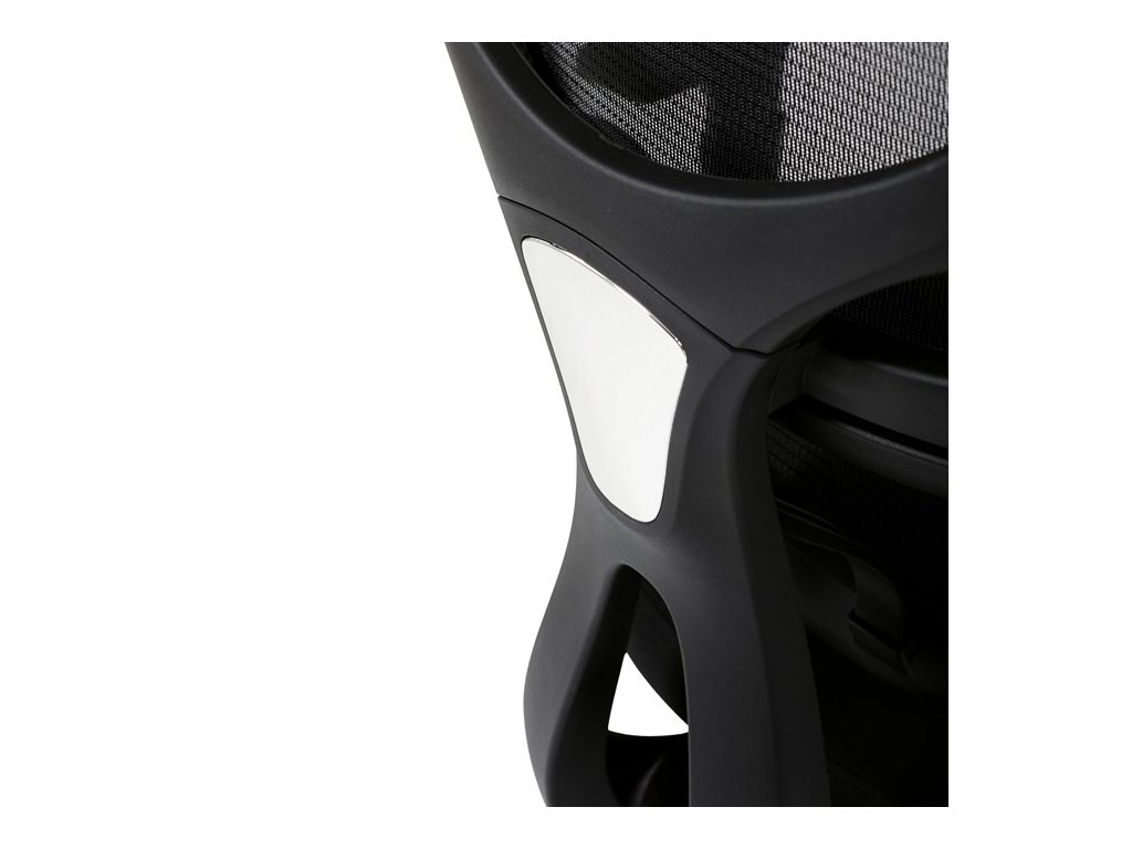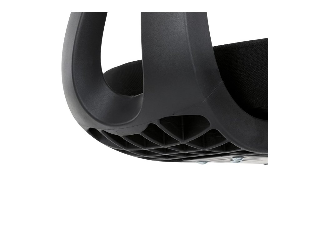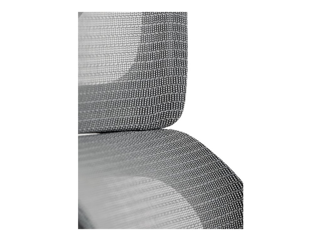 Opěradlo je potažené prodyšnou síťovinou, která umožňuje efektivní cirkulaci vzduchu a poskytuje příjemné sezení i během teplejších dnů. Čisté linie židle bez čalouněných područek podtrhují její moderní charakter a dodávají pocit lehkosti a volnosti.