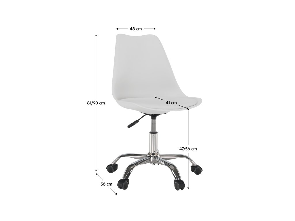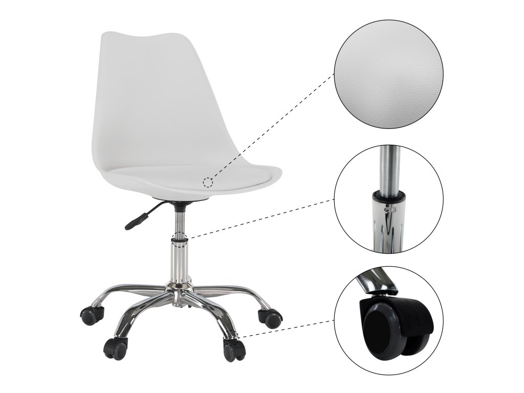 Ergonomicky tvarovaný sedák a opěradlo se postarají o pohodlí i při delším sezení, zatímco pákový mechanismus umožňuje snadné nastavení výšky sedu podle vaší postavy. Díky čistému bílému provedení židle skvěle zapadne do moderní kanceláře, pracovny, zasedací místnosti i domácího interiéru.