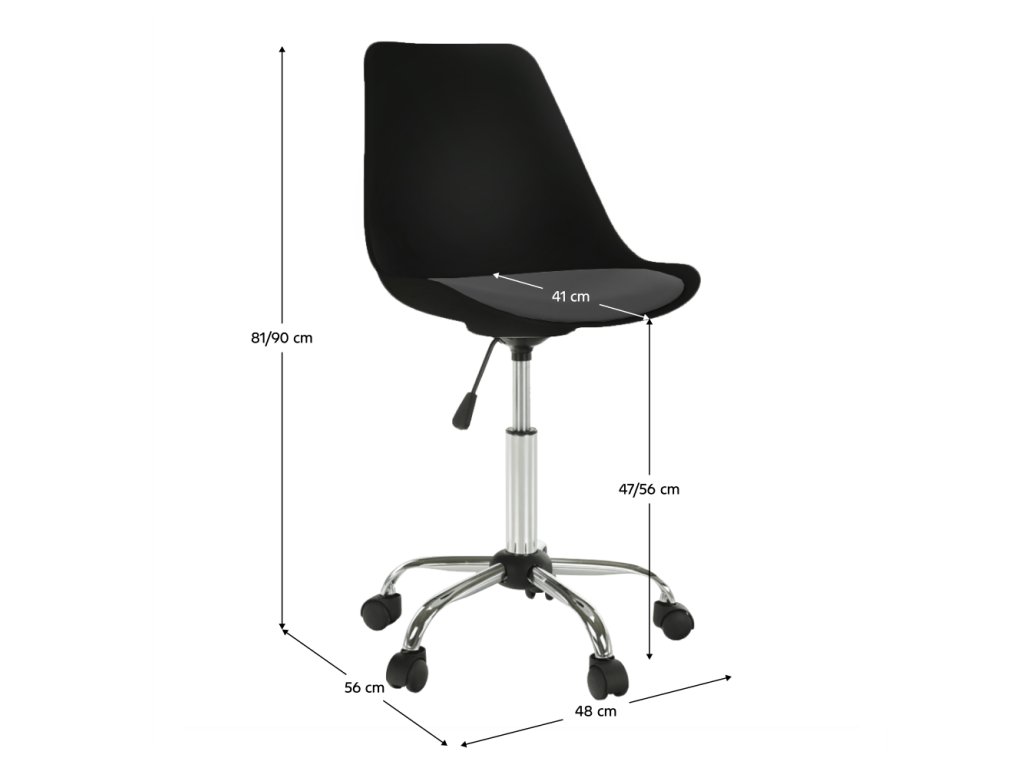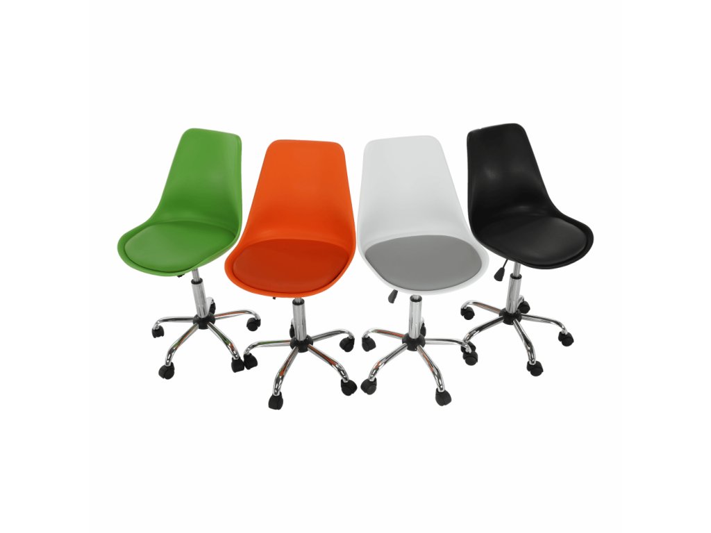 Díky ergonomicky tvarovanému sedáku a opěradlu poskytuje židle optimální podporu zad i při delším sezení. Praktický pákový mechanismus umožňuje snadné nastavení výšky sedu, zatímco kolečka zajišťují hladký pohyb po jakémkoli povrchu. Minimalistické linie a kontrastní barvy dělají z této židle perfektní doplněk pro moderní interiéry.