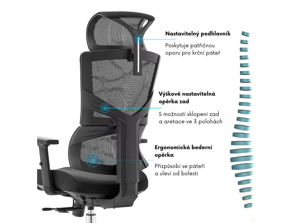 Prodyšná opora se přizpůsobí zádům a pomáhá udržet správné držení těla.