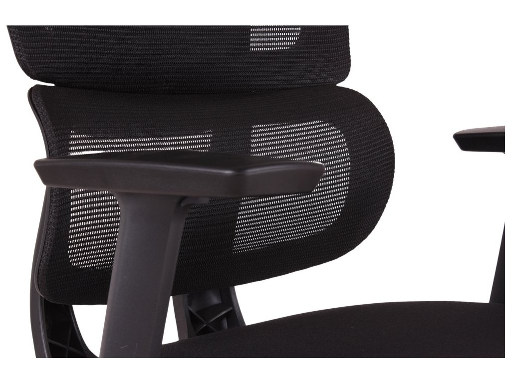 Nechybí výškově nastavitelné područky s měkčeným povrchem pro komfortní podepření rukou a nastavitelný podhlavník, který lze upravit výškově i úhlově – pro odlehčení krční páteře.