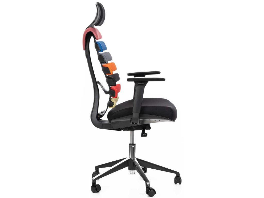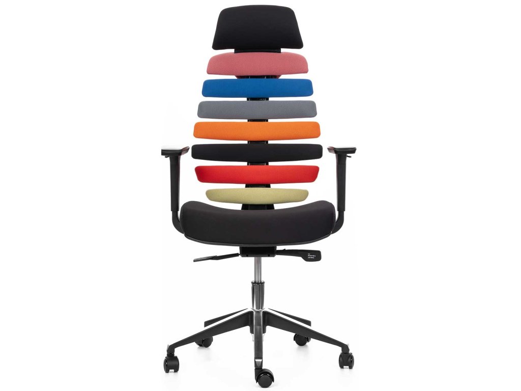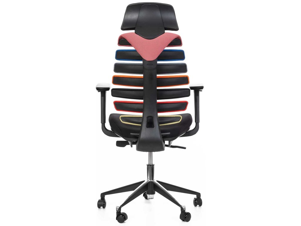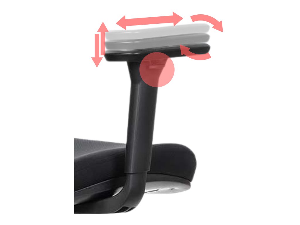 Židle nabízí široké možnosti nastavení – posuv sedáku o 5 cm, výškově nastavitelnou bederní opěrku, výkyvné lamely pro přirozený pohyb zad a také hlavovou opěrku, kterou lze výškově přizpůsobit. 3D područky poskytnou pohodlnou oporu rukám, ať už při práci, nebo odpočinku.