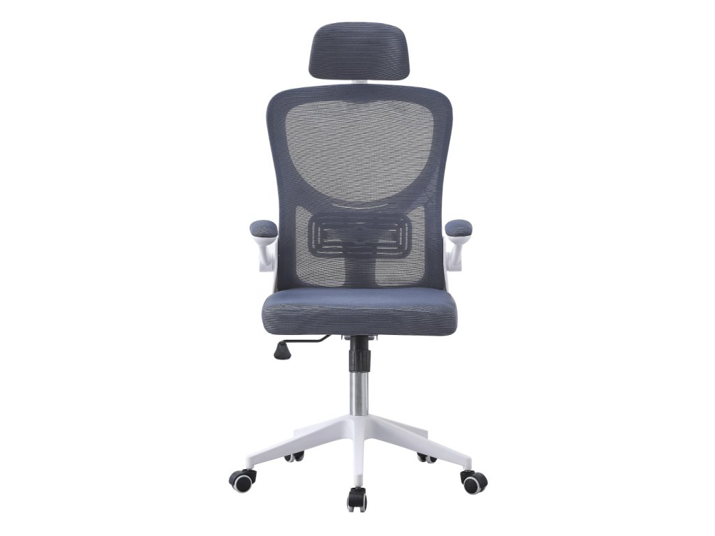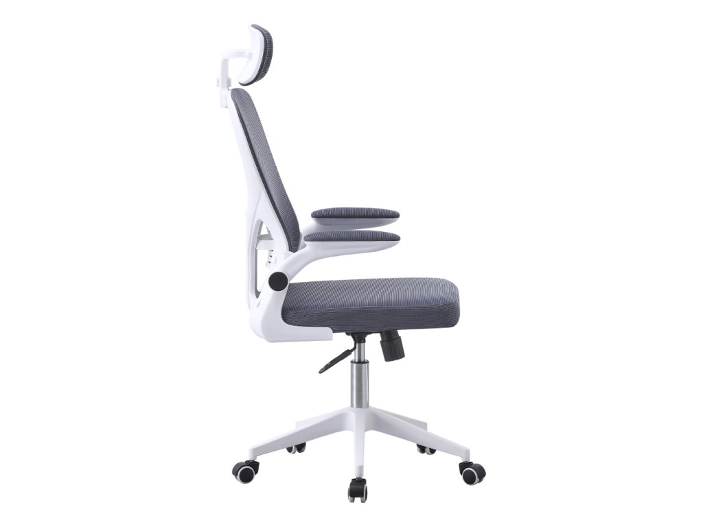 Křeslo se přizpůsobí vašim individuálním potřebám – nabízí nastavitelnou výšku sedu, mechanismus houpání, nastavitelnou opěrku hlavy a sklápěcí plastové opěrky na ruce. Díky prodyšné síťovině zůstane sezení pohodlné i při delší práci. Stabilní plastová základna v bílé barvě je doplněna o univerzální kolečka, vhodná pro měkké i tvrdé podlahy.