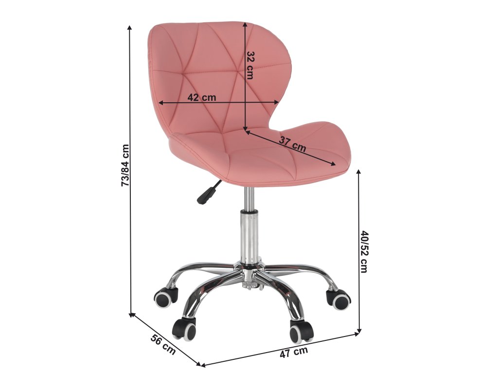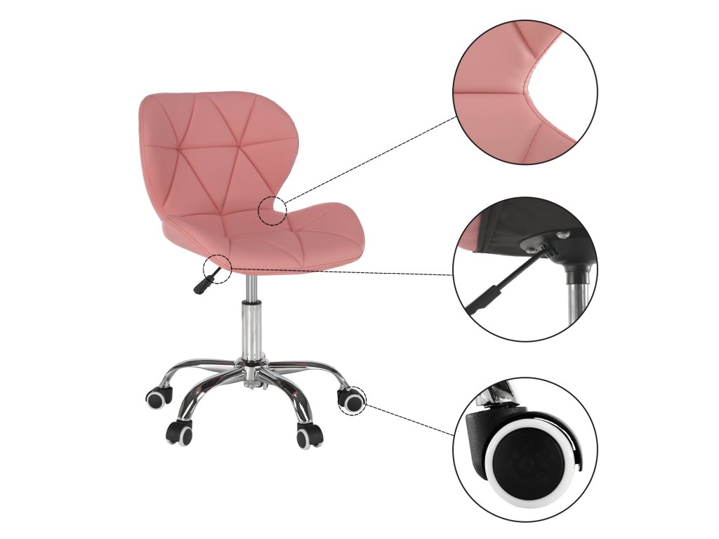 Dodejte své kanceláři nebo domácí pracovně jemný nádech elegance s moderním kancelářským křeslem NOMI. Toto stylové křeslo spojuje pohodlí, kvalitu a originální design. Prošívaná růžová ekokůže působí svěže a elegantně, přitom je odolná, snadno se čistí a příjemná na dotek. Chromová podstava doplňuje celkový vzhled o moderní kovový akcent, který dodá interiéru luxusní charakter.