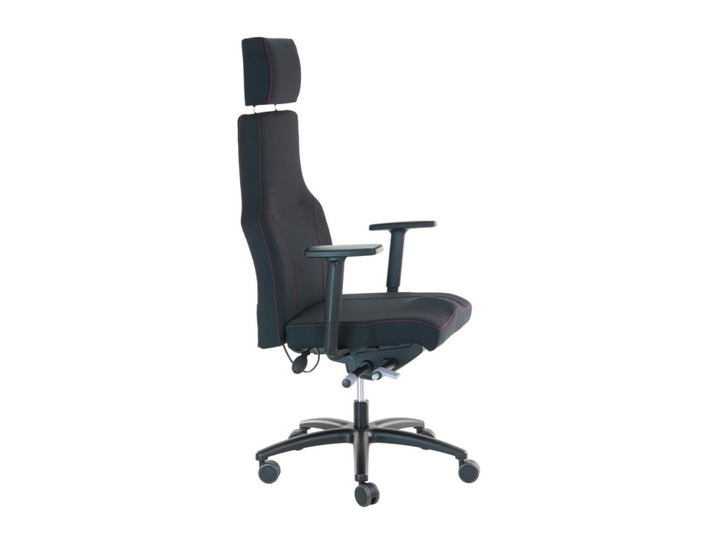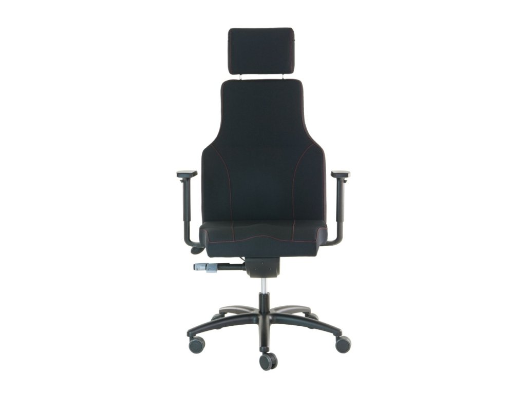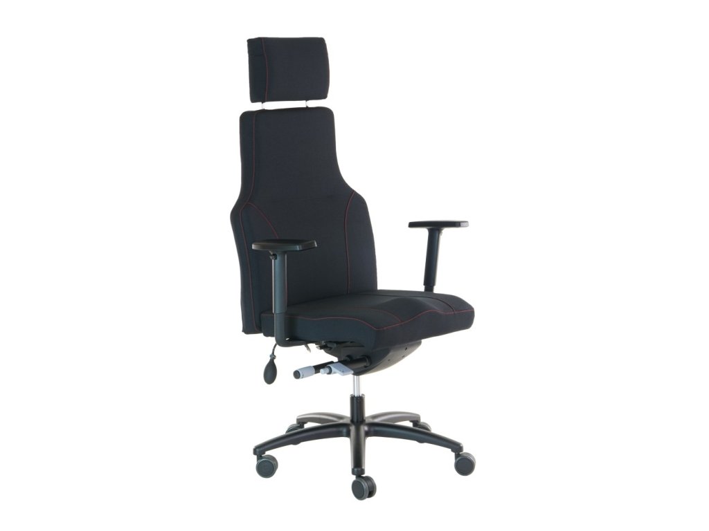 Kancelářská židle PAULA – robustní zátěžová židle pro nepřetržitý provoz 24/7Kancelářské židle / křeslo PAULA je navrženo pro maximální zátěž a pohodlí při každodenním i nepřetržitém používání. Díky robustní konstrukci, vysokému čalouněnému opěráku a bohatému polstrování nabízí komfort i při dlouhodobém sezení. Potah z černé vysokozátěžové látky LUCKY 1022 (odolnost 200 000 cyklů) je doplněn designovým prošitím červenou nití, které dodává křeslu moderní a elegantní vzhled.