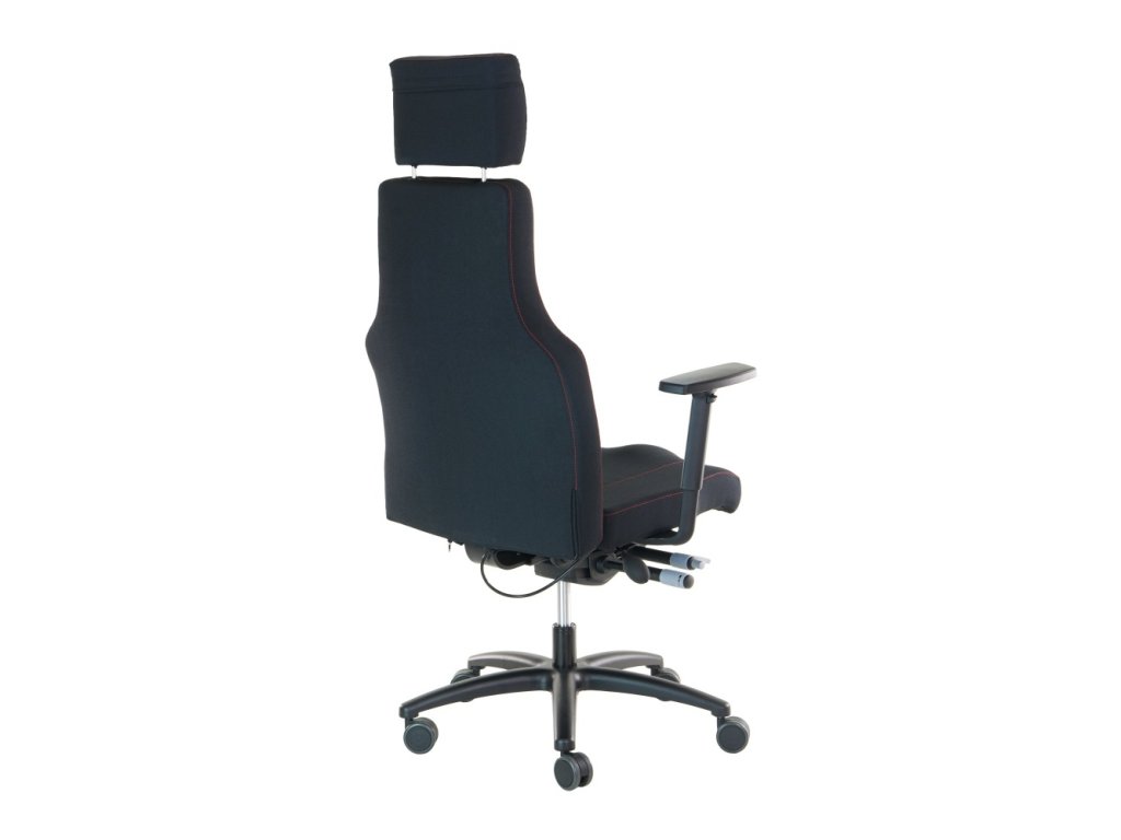 Židle je vybavena synchronní mechanikou ERGO s blokací v 5 polohách, posuvem a negativním náklonem sedáku. Tuhost přítlaku zad lze snadno nastavit bočním ovladačem. O zdravou podporu se stará vzduchově nastavitelná bederní opěrka a 3D čalouněný podhlavník, který lze přizpůsobit výškově i úhlově. Stabilitu zajišťuje černý hliníkový kříž Ø 700 mm a univerzální pogumovaná kolečka Ø 65 mm vhodná pro všechny typy podlah.
