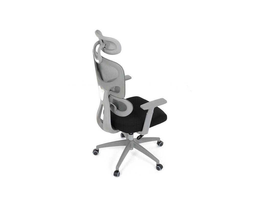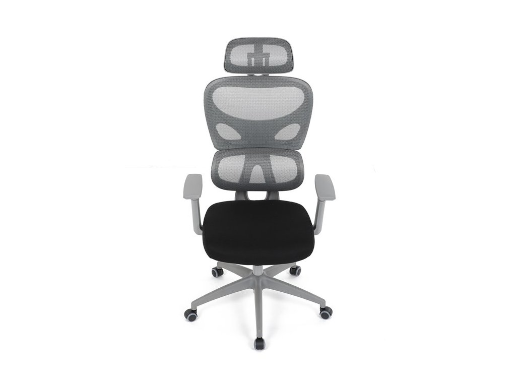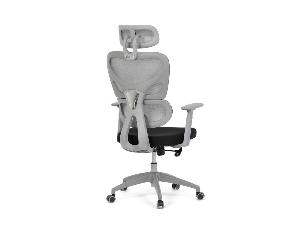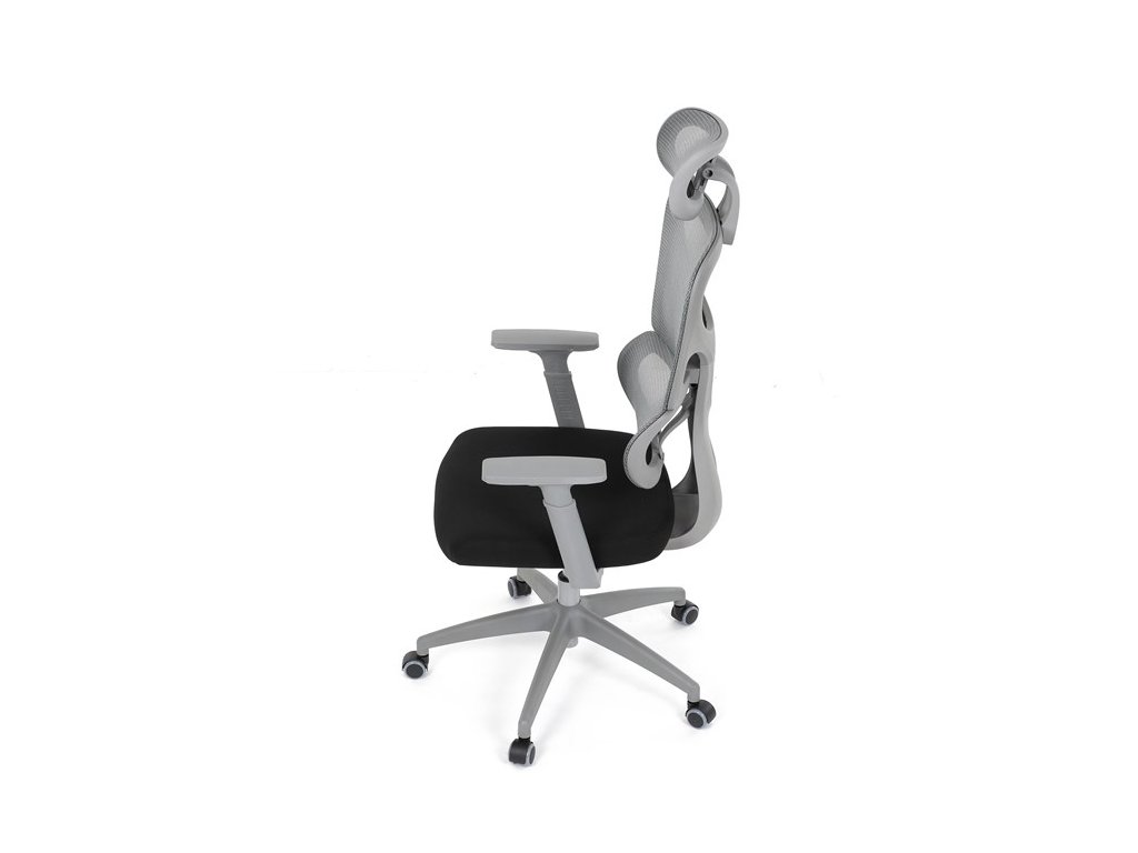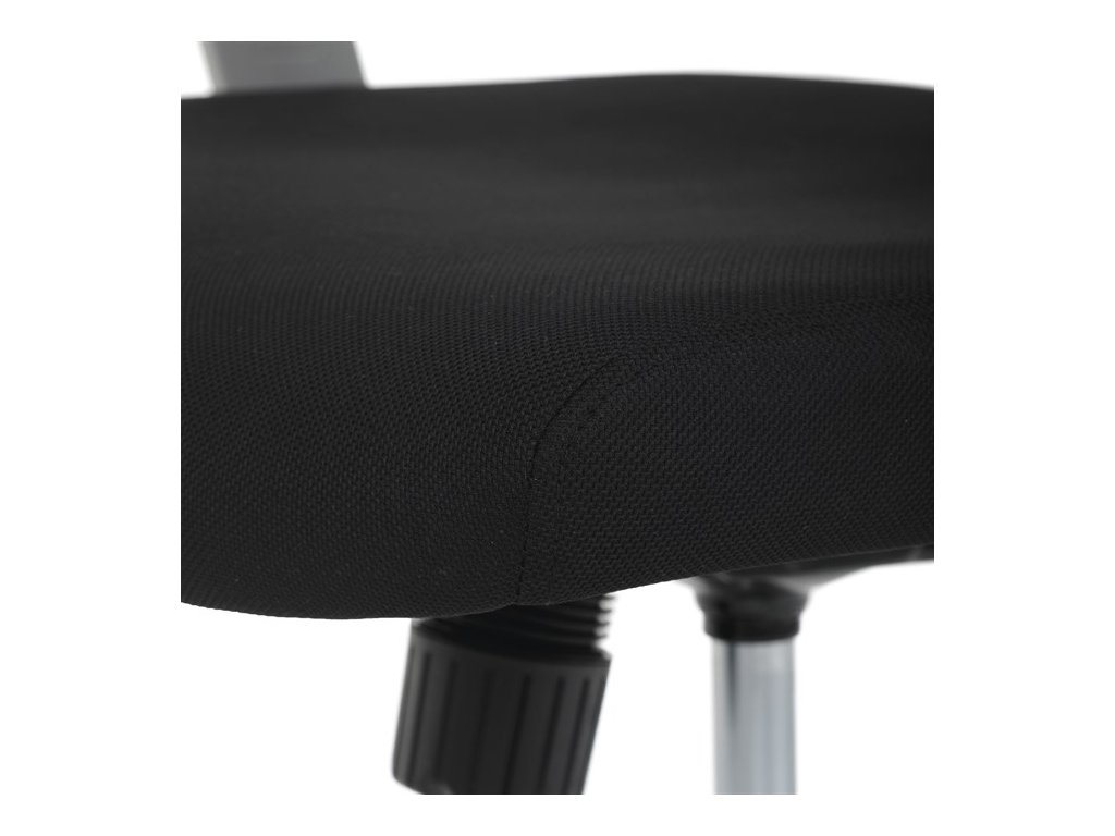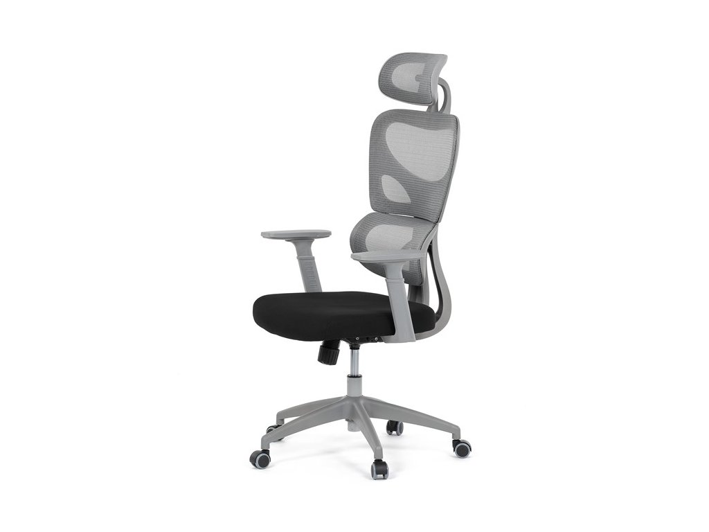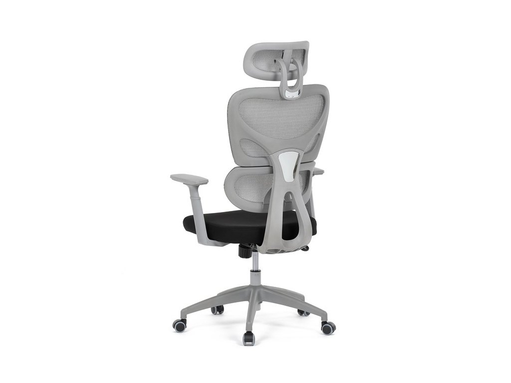 Opěradlo je potažené šedou prodyšnou síťovinou, která zajišťuje cirkulaci vzduchu a příjemné klima i během horkých dnů. Černý látkový sedák doplňuje moderní kontrastní design a díky kvalitnímu polstrování nabízí komfortní sezení i při celodenním používání. Minimalistický vzhled bez čalouněných područek podtrhuje lehkost a univerzálnost tohoto modelu, který se hodí do kanceláře i domácí pracovny.