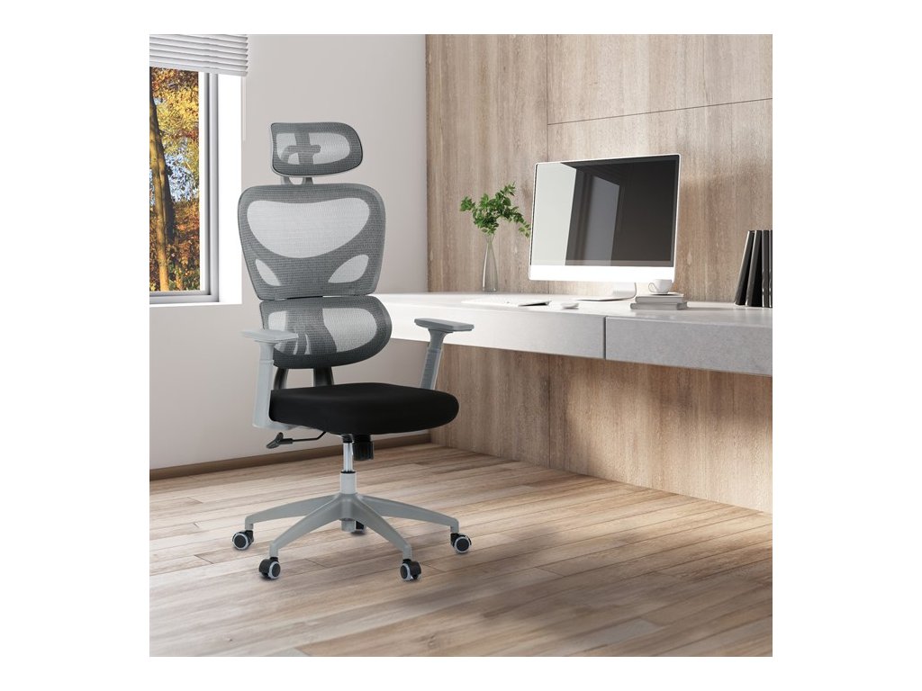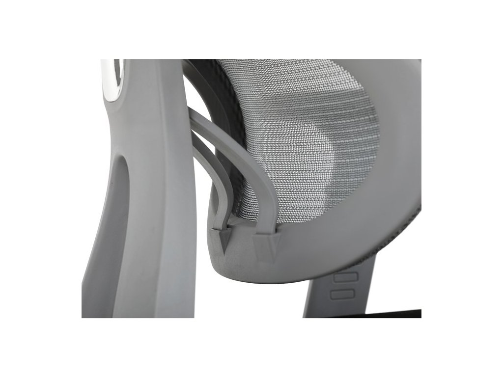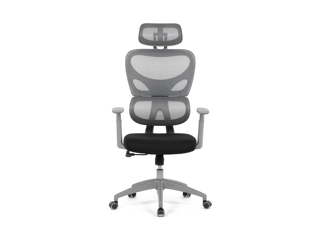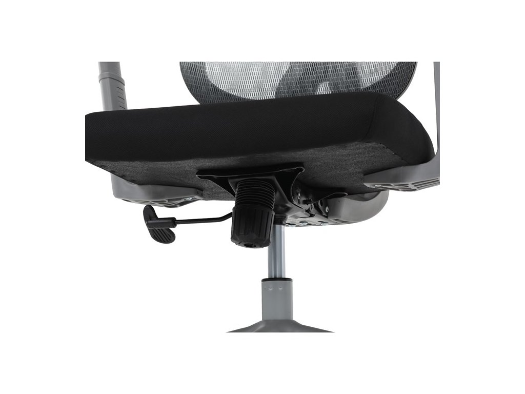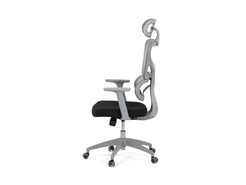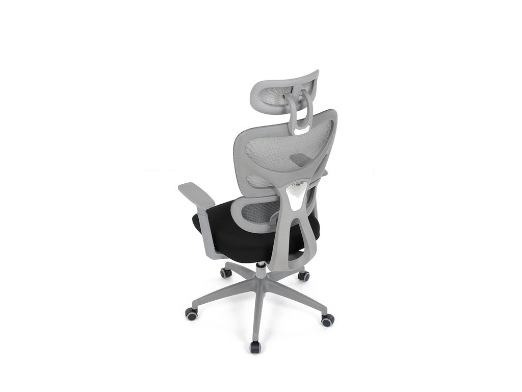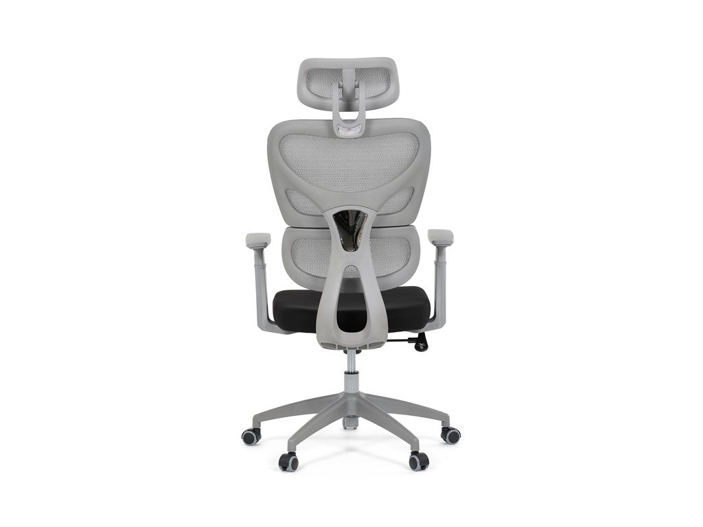 Opěradlo je potažené šedou prodyšnou síťovinou, která zajišťuje cirkulaci vzduchu a příjemné klima i během horkých dnů. Černý látkový sedák doplňuje moderní kontrastní design a díky kvalitnímu polstrování nabízí komfortní sezení i při celodenním používání. Minimalistický vzhled bez čalouněných područek podtrhuje lehkost a univerzálnost tohoto modelu, který se hodí do kanceláře i domácí pracovny.