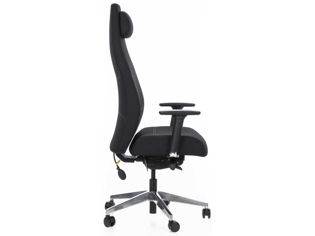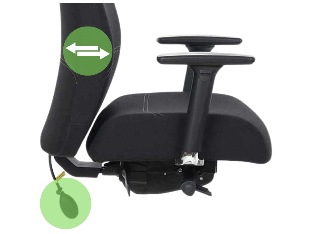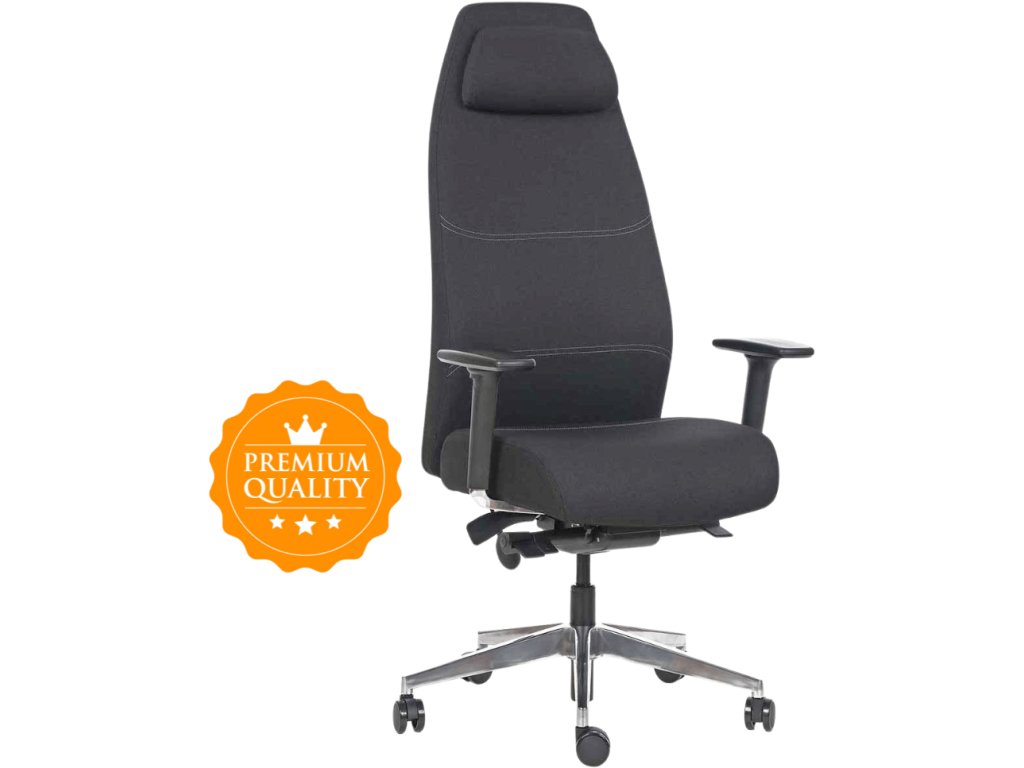 Výškově nastavitelný podhlavník, synchronní mechanika s aretací ve 4 polohách a možnost posuvu i předního náklonu sedáku umožňují individuální nastavení podle potřeb uživatele. Bederní opěrka je navíc vybavena přífukem, takže si míru podpory zad můžete kdykoli upravit. Komfort při práci zajišťují 3D područky s měkčenými PU opěrkami a ergonomicky tvarovaný sedák i opěrák z kvalitní pěny.