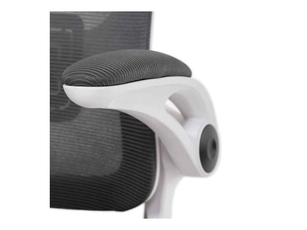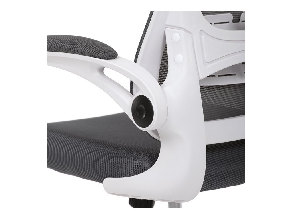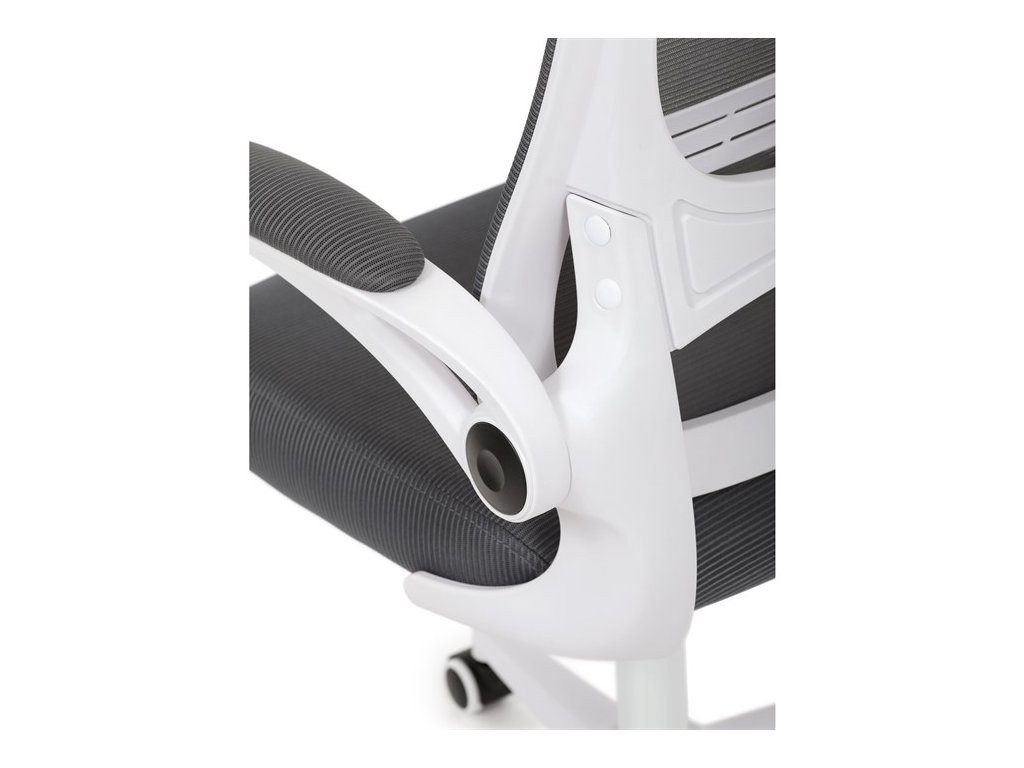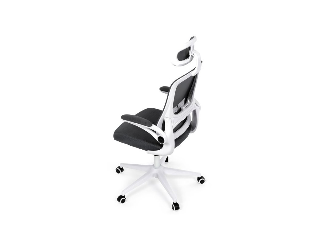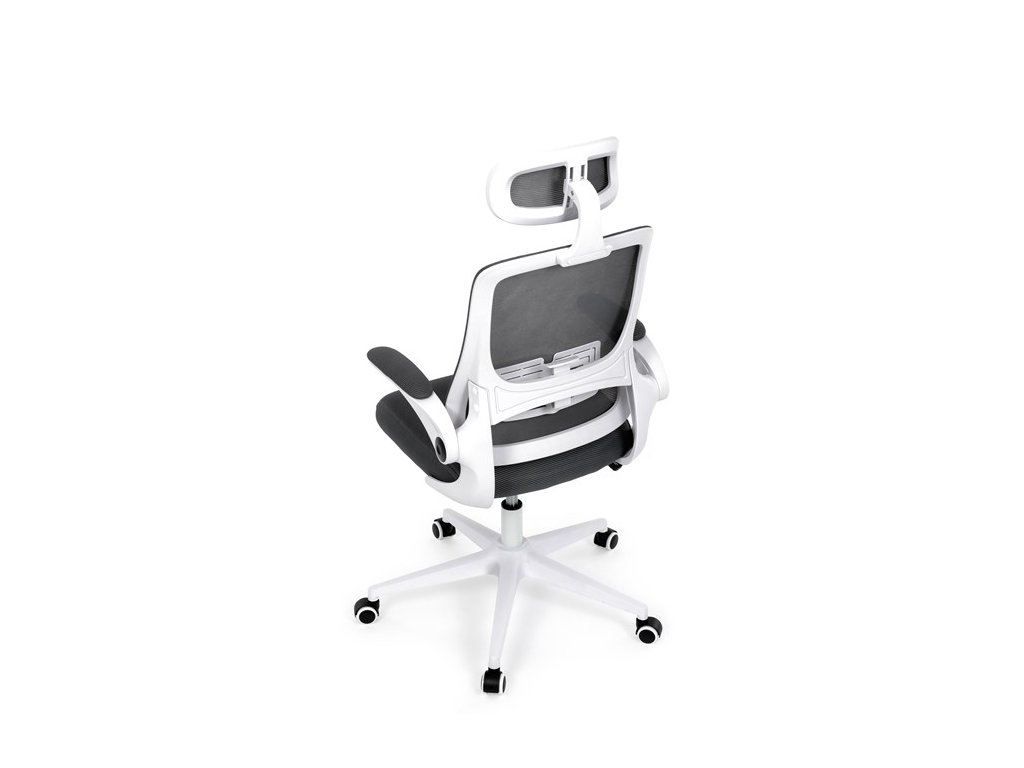 Židle je vybavena ergonomickým designem s výškově nastavitelnou opěrkou hlavy a beder, které pomáhají udržet zdravé držení páteře. Houpací mechanika umožňuje příjemné pohupování a přirozený pohyb, zatímco odklápěcí područky přispívají k flexibilnímu využití – snadno ji zasunete pod stůl, když potřebujete více prostoru.