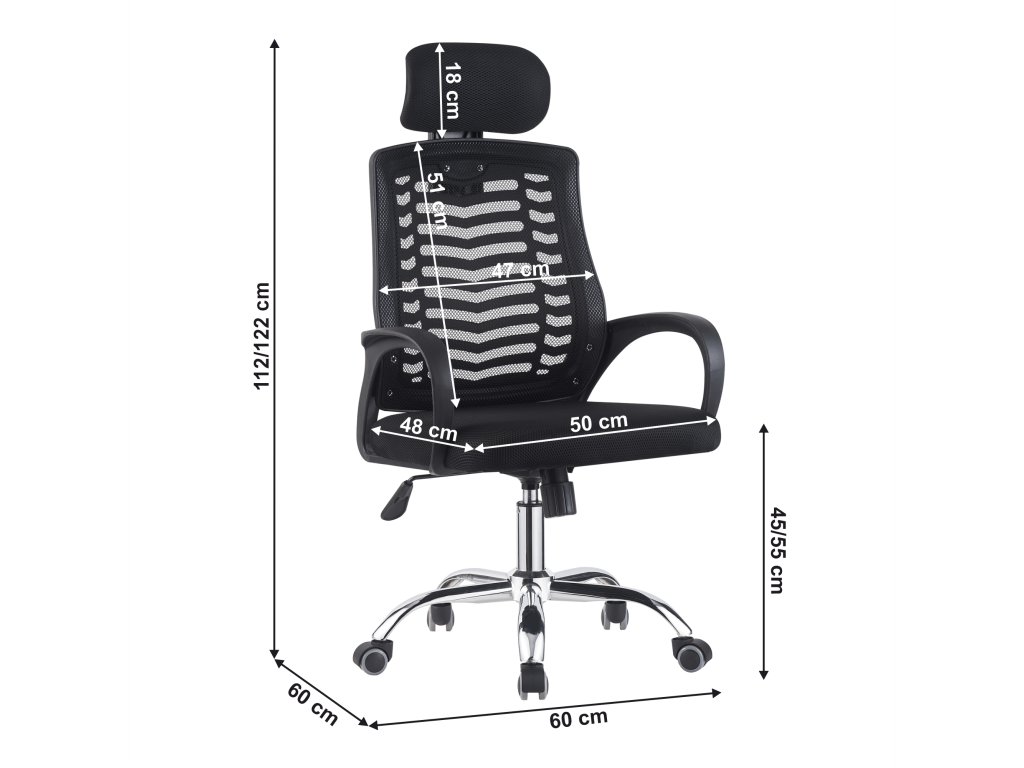 Konstrukce křesla je vyrobena z kvalitního kovu a doplněna o stabilní pěticípou podstavu s chromovou povrchovou úpravou, která mu dodává moderní vzhled i pevnost. Komfort zvyšují plastové opěrky rukou a nastavitelná opěrka hlavy, která uleví šíji během dlouhých pracovních hodin. Díky mechanismu houpání a nastavení výšky sedu si snadno přizpůsobíte polohu přesně podle svých potřeb.