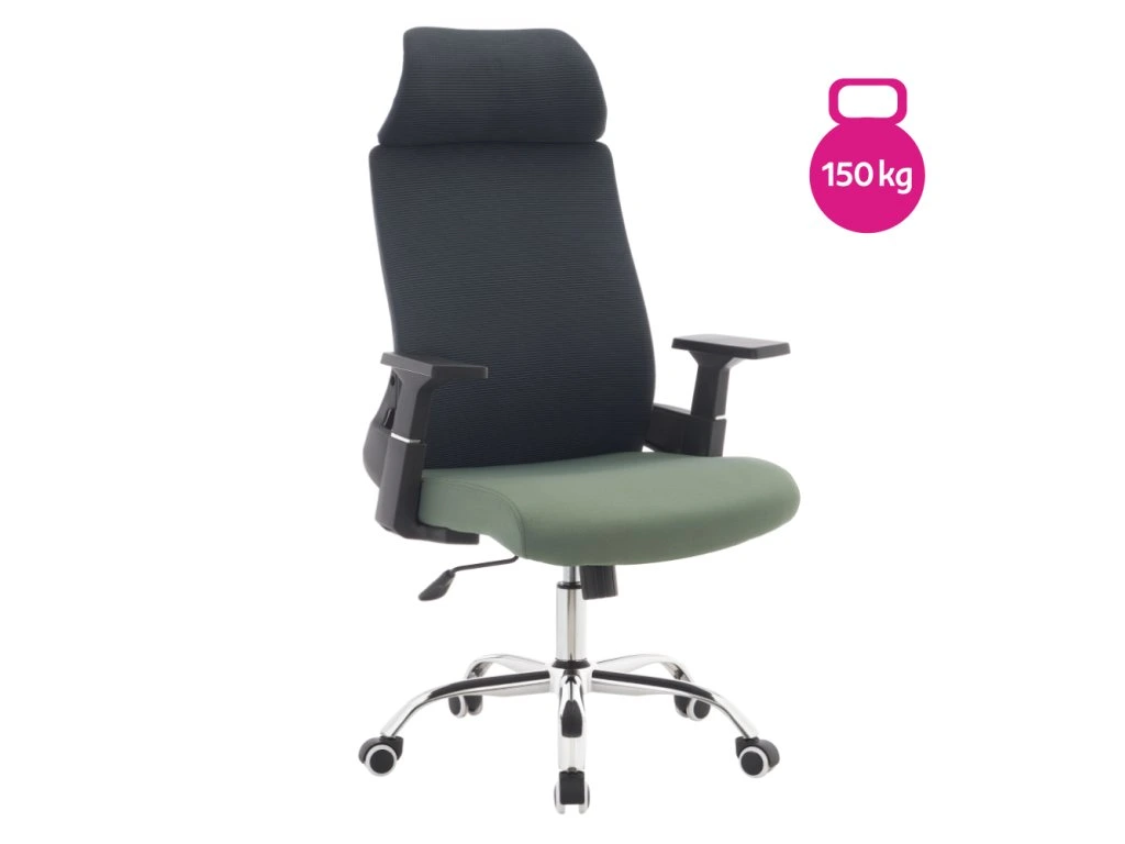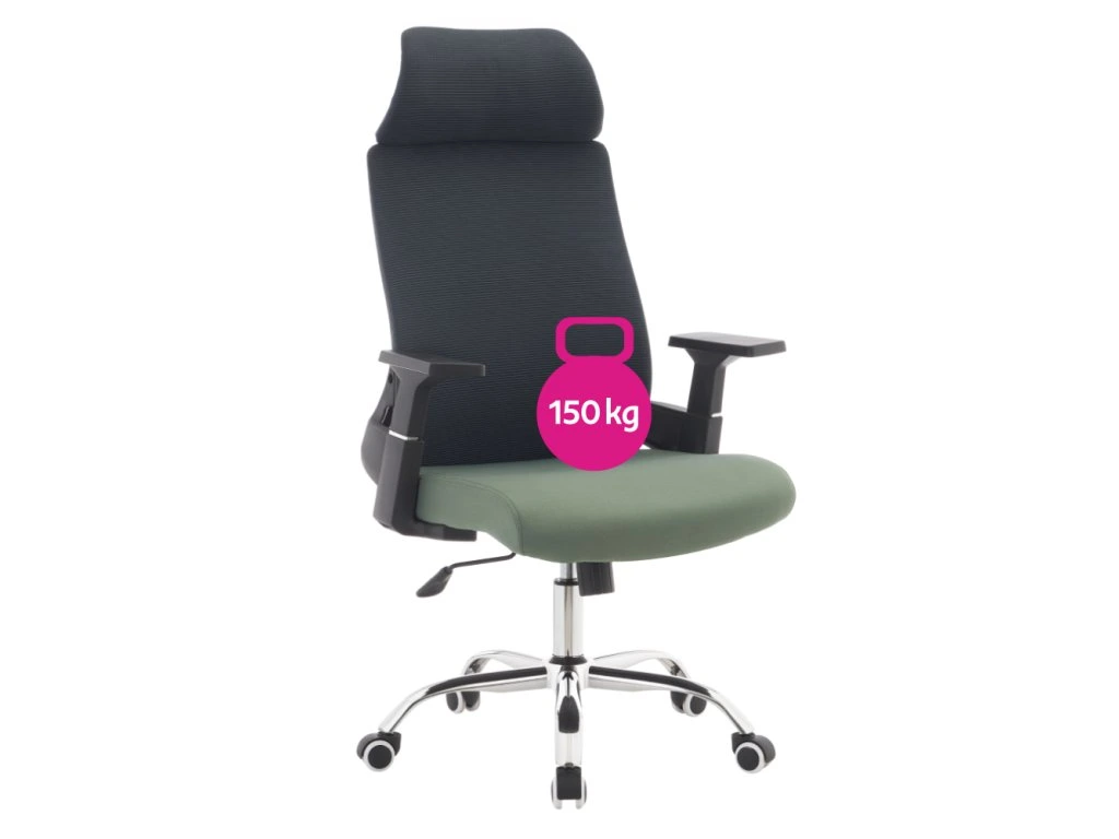 Kancelářské křeslo, tmavě šedá/zelená/chrom, nosnost 150 kg, HOLGER
