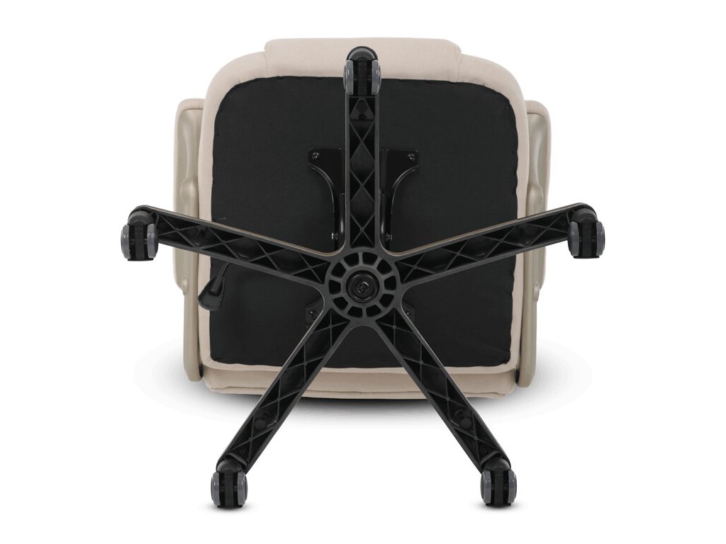 Stabilní základnu tvoří plastový kříž v odstínu champagne, osazený kolečky vhodnými pro tvrdé podlahy. Díky tomu se můžete snadno pohybovat po kanceláři, aniž by došlo k poškrábání podlahového povrchu. Křeslo LOUNGE je tak skvělou volbou pro moderní kanceláře, domácí pracovny i stylové firemní prostory.