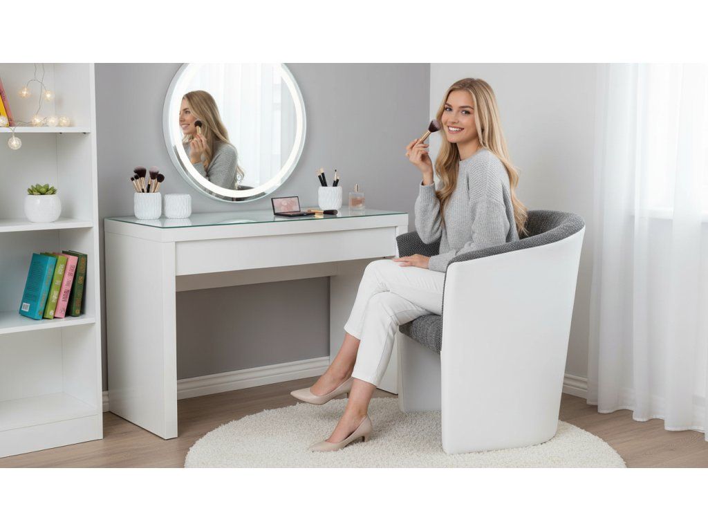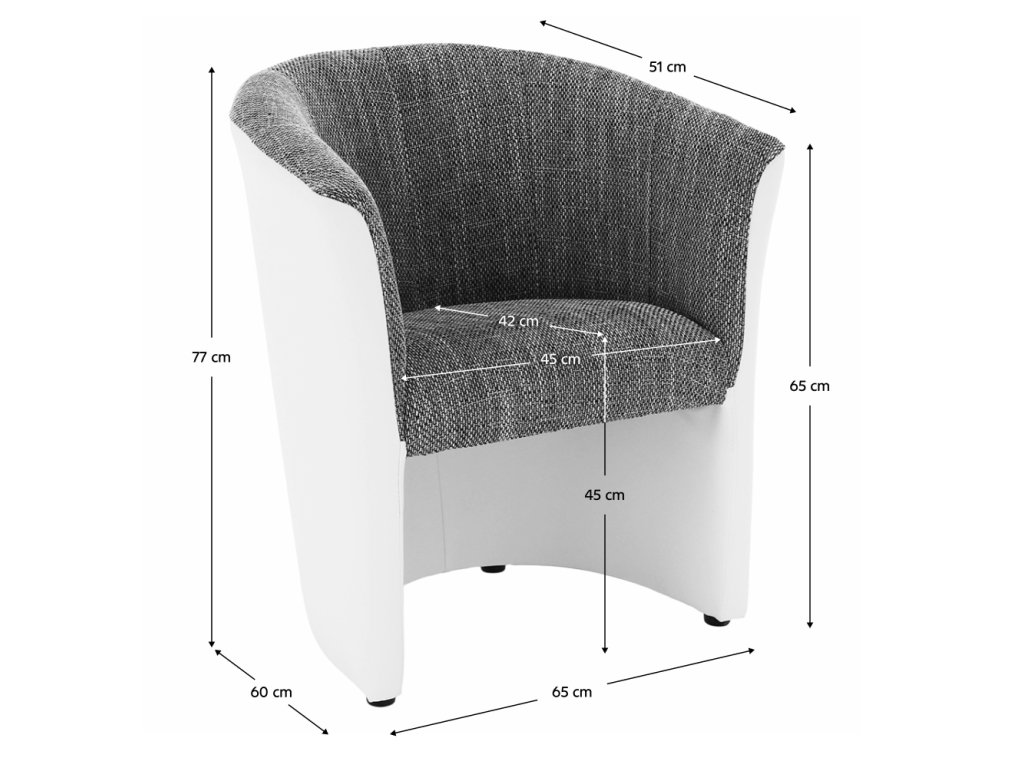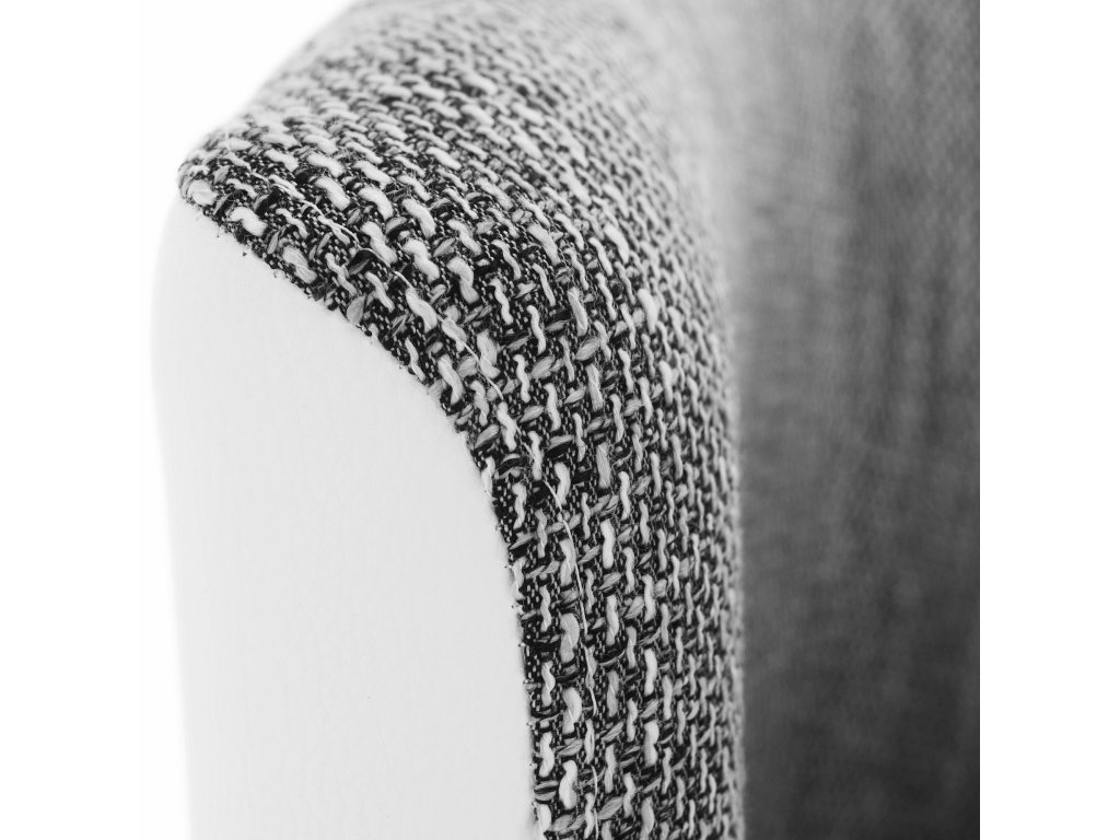 Čalounění v kombinaci ekokůže a látky šenil působí elegantně, přičemž propojení bílé a šedé barvy vytváří jemný, harmonický kontrast. Ekokůže přidává nádech luxusu a je snadno omyvatelná, zatímco látka šenil zajišťuje měkkost a příjemný pocit při sezení. Díky vysoké oděruodolnosti (látka 55 000 / ekokůže 100 000 oděrek) je křeslo ideální i pro každodenní používání.