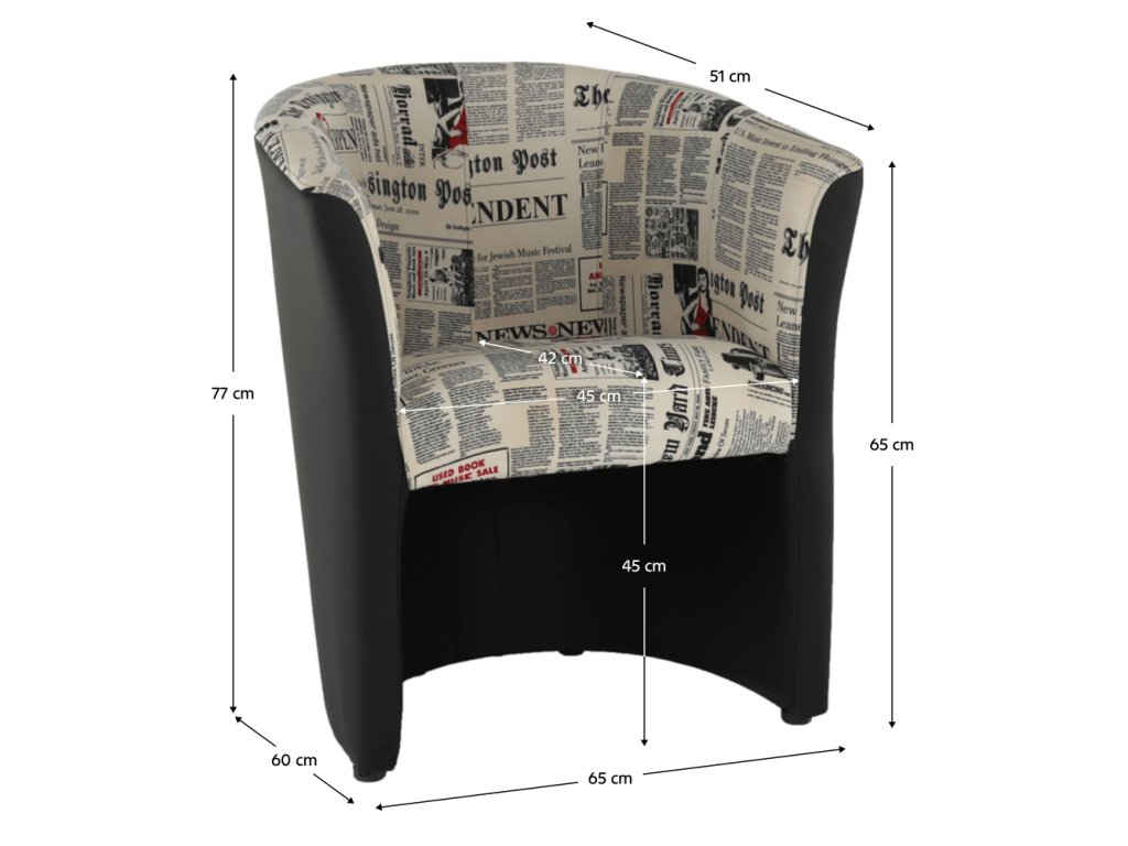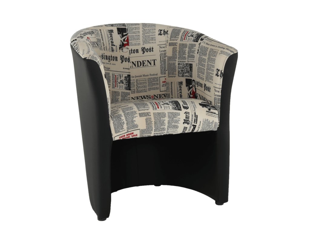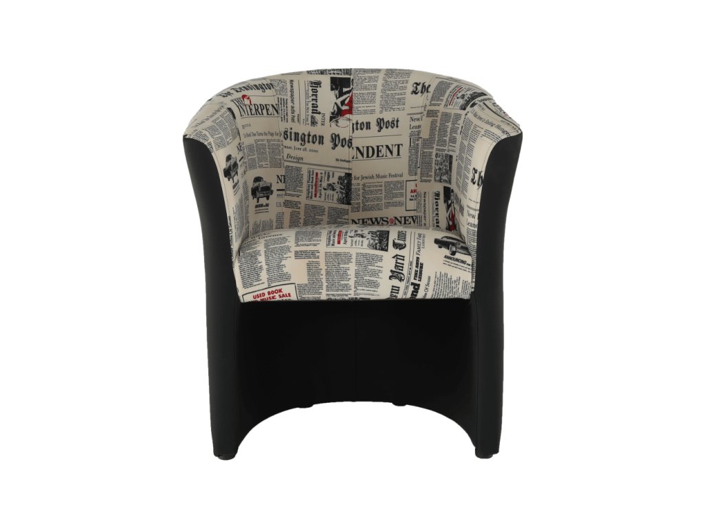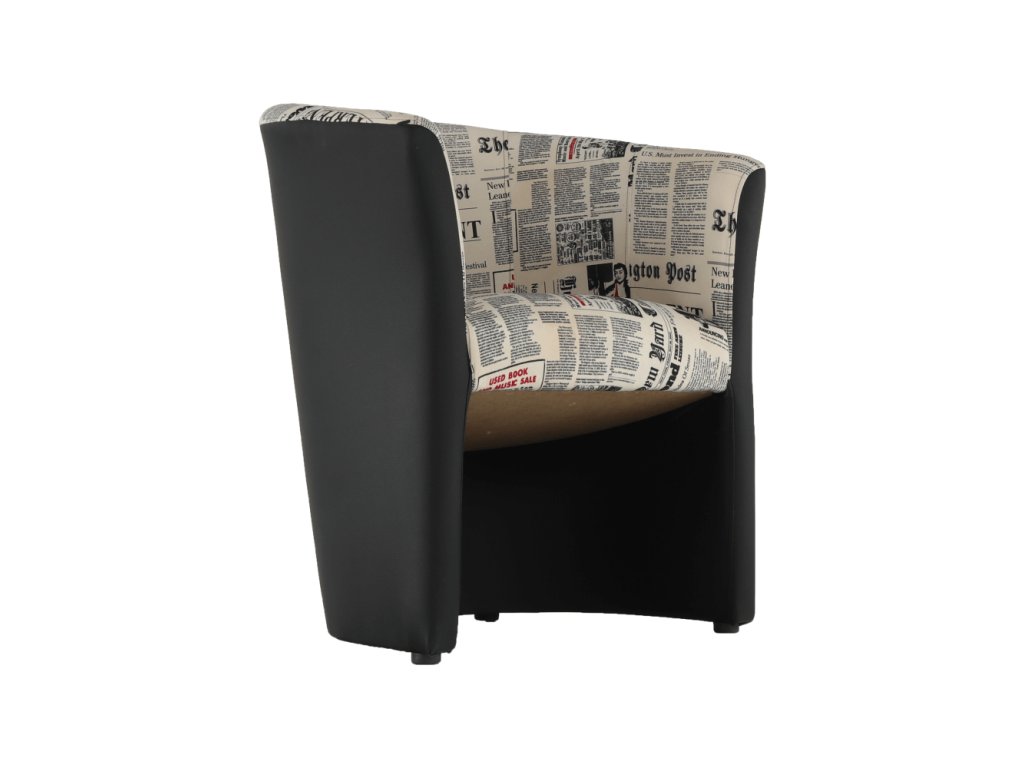 Křeslo TRION – moderní kombinace černé ekokůže a látky se vzorem novin