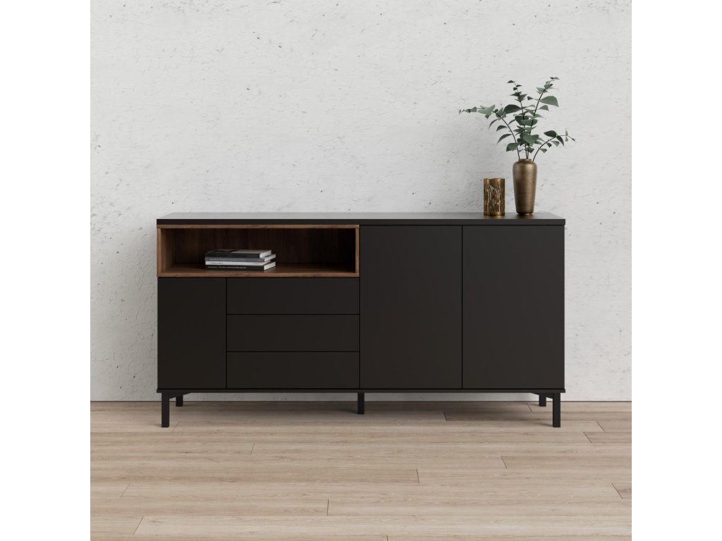 Komoda Atrei potěší nejen milovníky skandinávského designu. Je navržena a vyrobena v nadčasovém designu, který se hodí do každého moderního interiéru. Díky svému provedení poskytuje dostatek úložného prostoru. Velmi zajímavá a netypická je kombinace černé nebo bílé barvy s dekorem dřeva. Komodu můžete doplnit dalšími prvky Atrei ve stejném designu, nebo si ji můžete objednat i samostatně a doplnit tak stávající interiér.