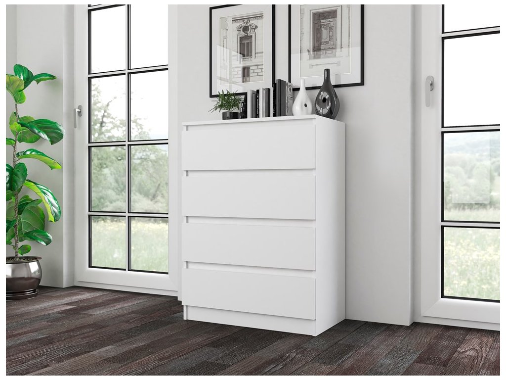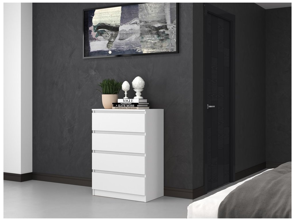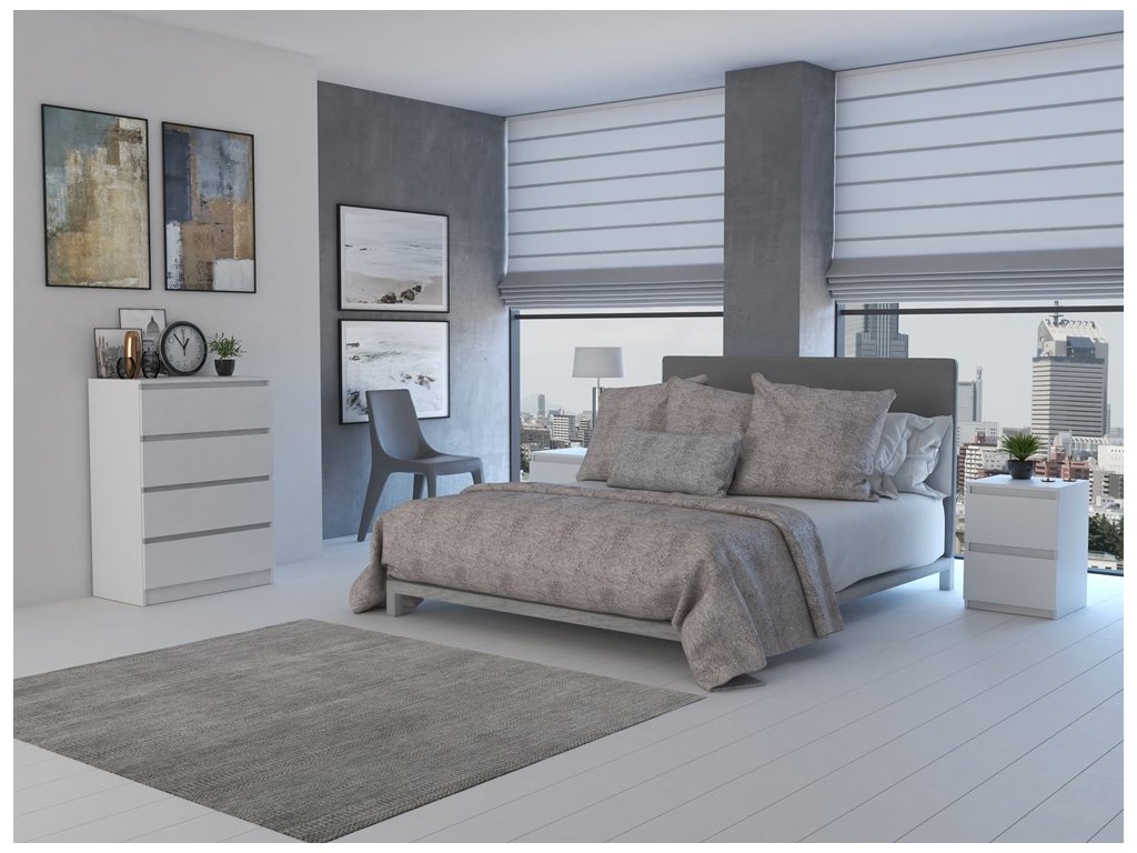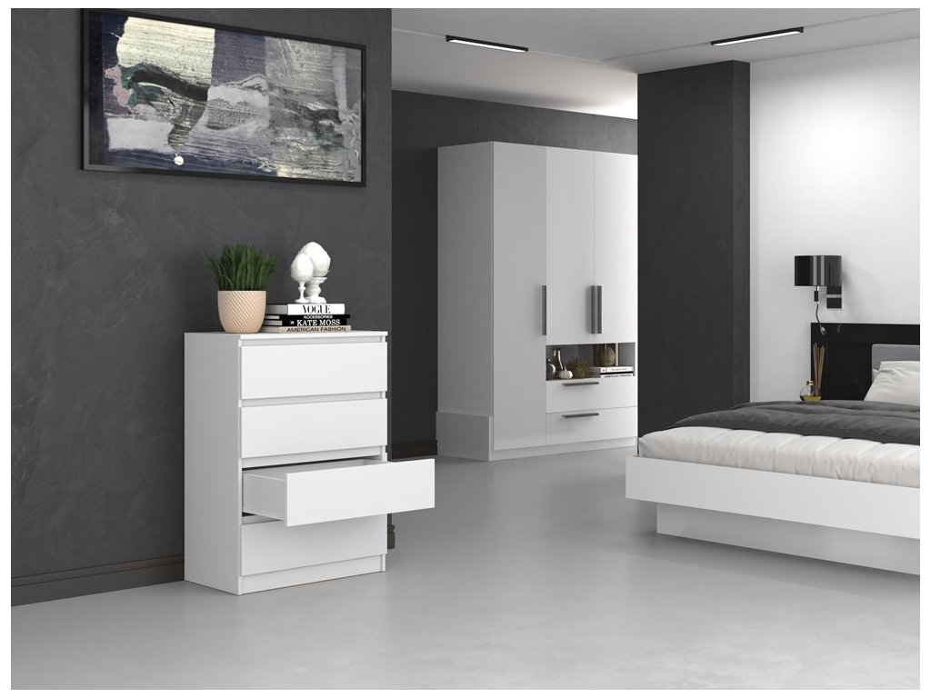 Bezúchytkové provedení zásuvek zajišťuje čistý vzhled a pohodlné každodenní používání. Korpus je vyroben z kvalitního lamina, které je nenáročné na údržbu a vhodné pro běžné používání v domácnosti.