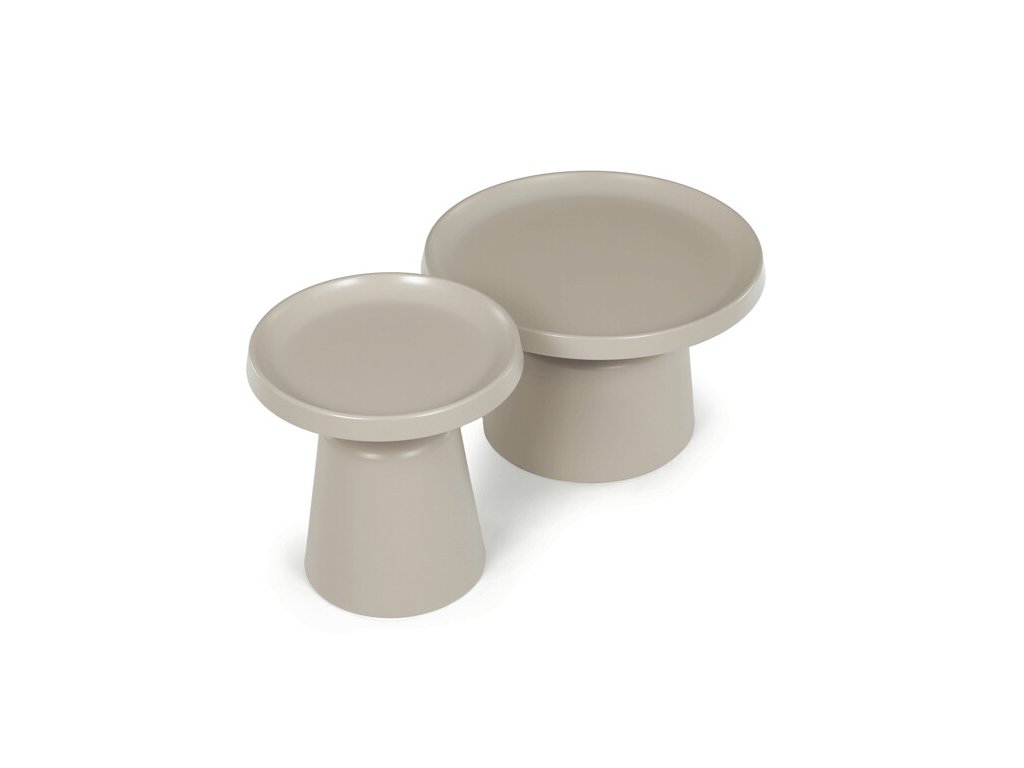Stolky mají dekorativně tvarovanou hranu, která dodává jemný designový detail a posouvá celkový vzhled na vyšší úroveň. Díky rozdílným velikostem – větší stůl s průměrem 68,5 cm a výškou 43 cm, menší s průměrem 49 cm a výškou 50,5 cm – lze set variabilně uspořádat podle prostoru. Můžete je použít částečně zasunuté do sebe, postavit odděleně nebo umístit každý v jiné části místnosti. Povrch obou kusů je snadno omyvatelný a odolný proti běžnému opotřebení.