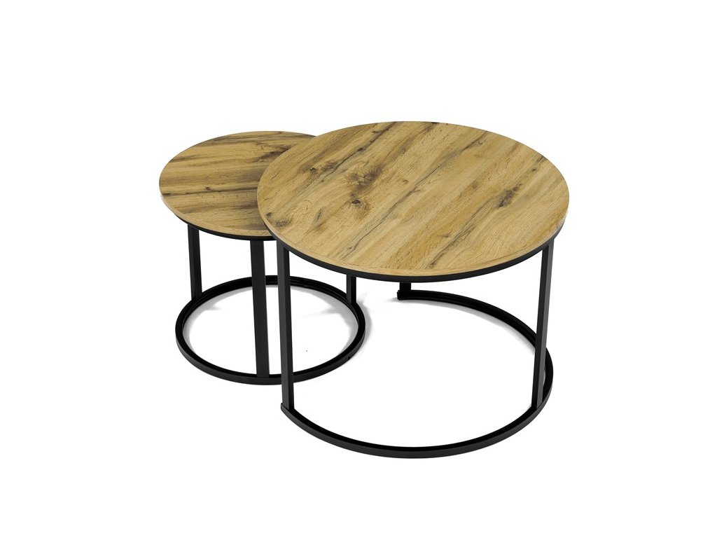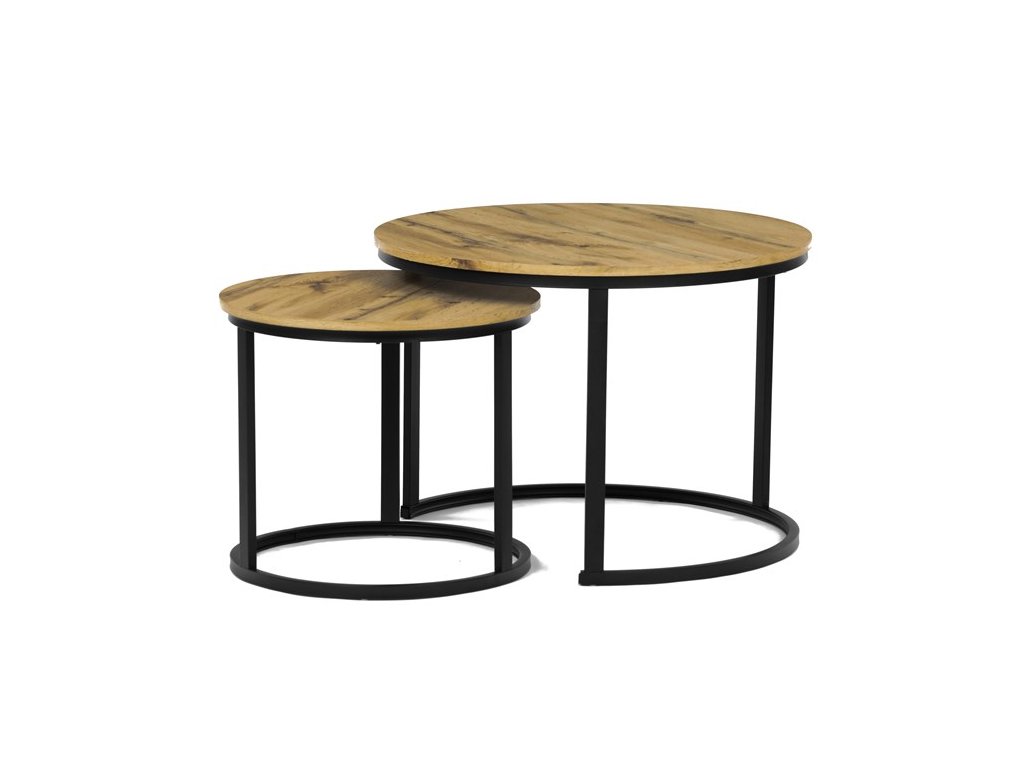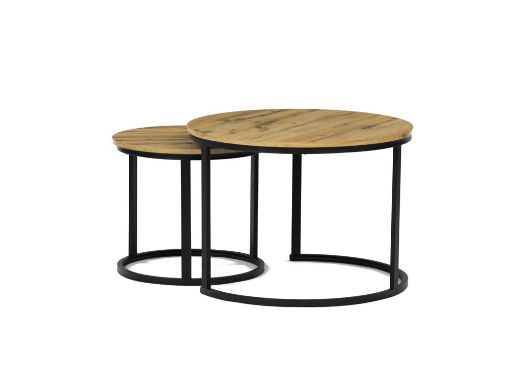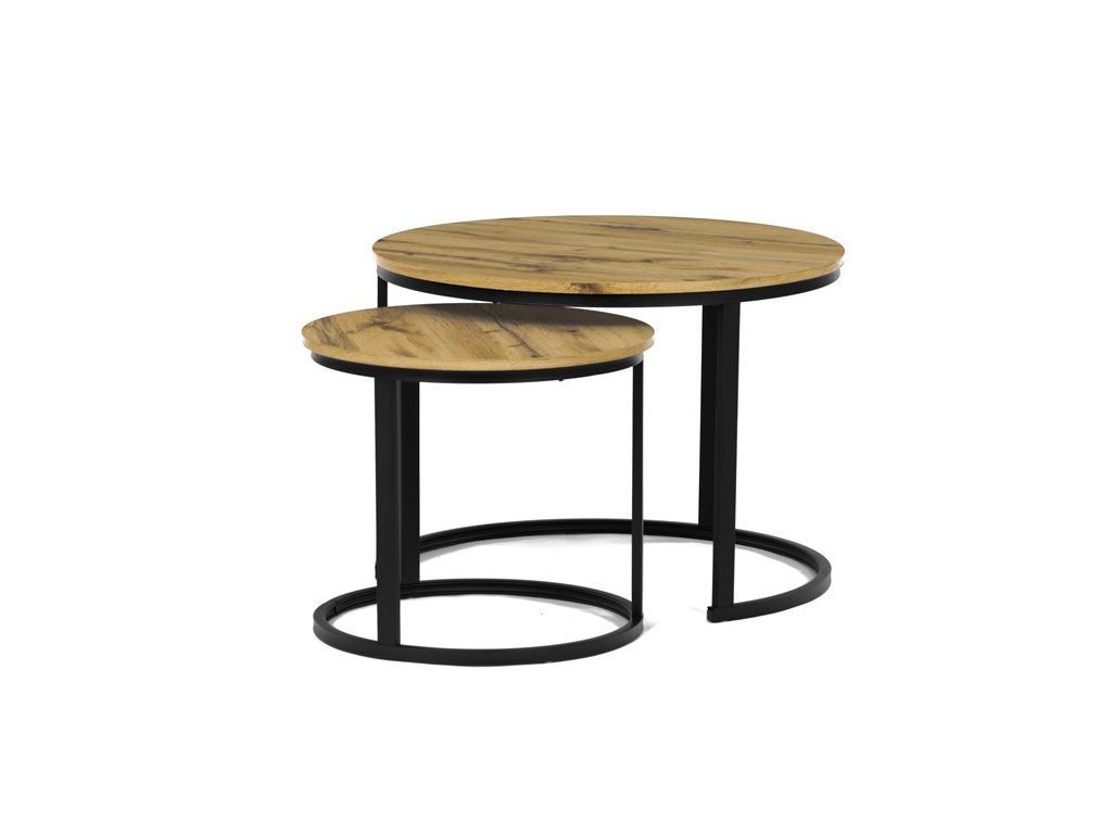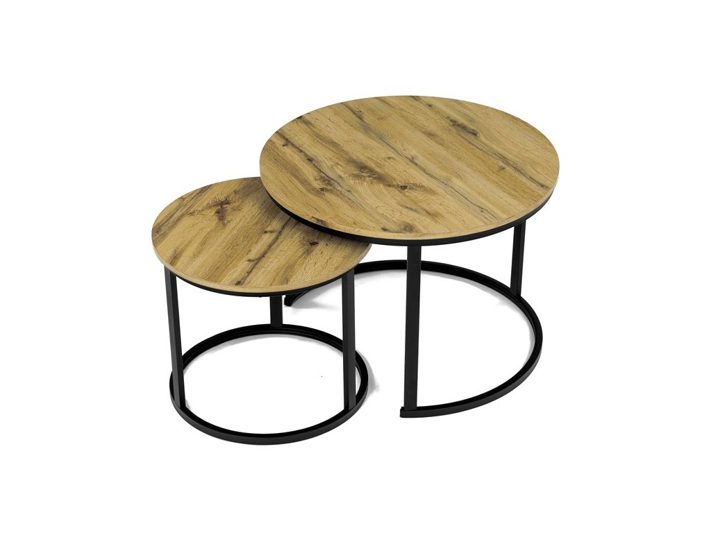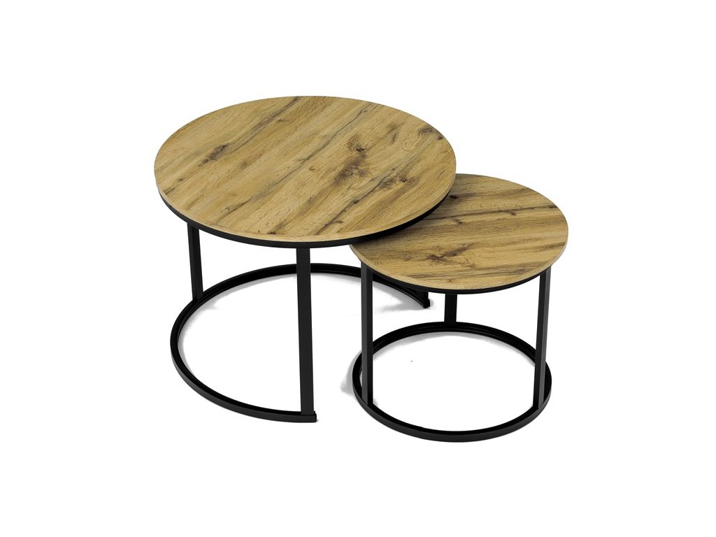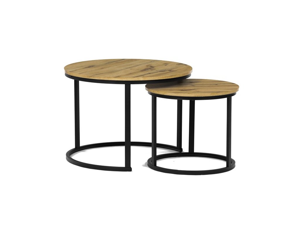Set dvou konferenčních stolků ARENDAL přináší do interiéru eleganci i funkčnost. Desky z MDF v různých dekorech doplňuje černá kovová podnož, která zajišťuje stabilitu a pevnost. Kulatý tvar obou stolků působí vzdušně a díky rozdílným výškám je lze snadno kombinovat nebo zasunout pod sebe. Tento praktický set se hodí do moderních obývacích pokojů i kanceláří, kde oceníte jeho variabilní využití i dlouhou životnost.