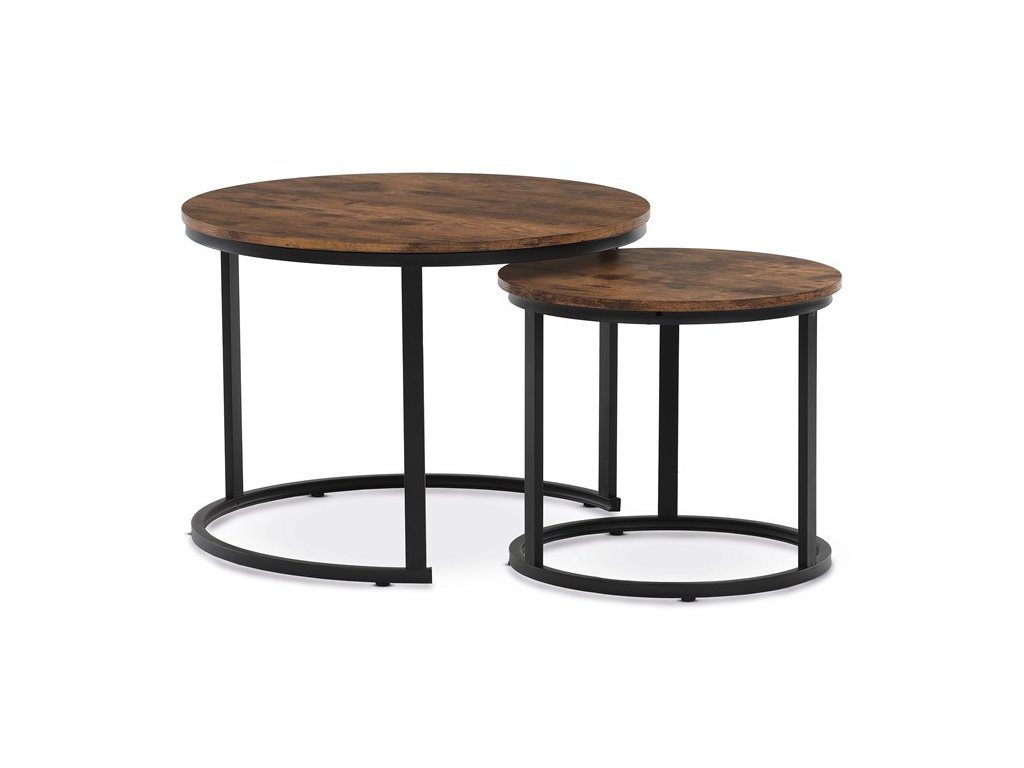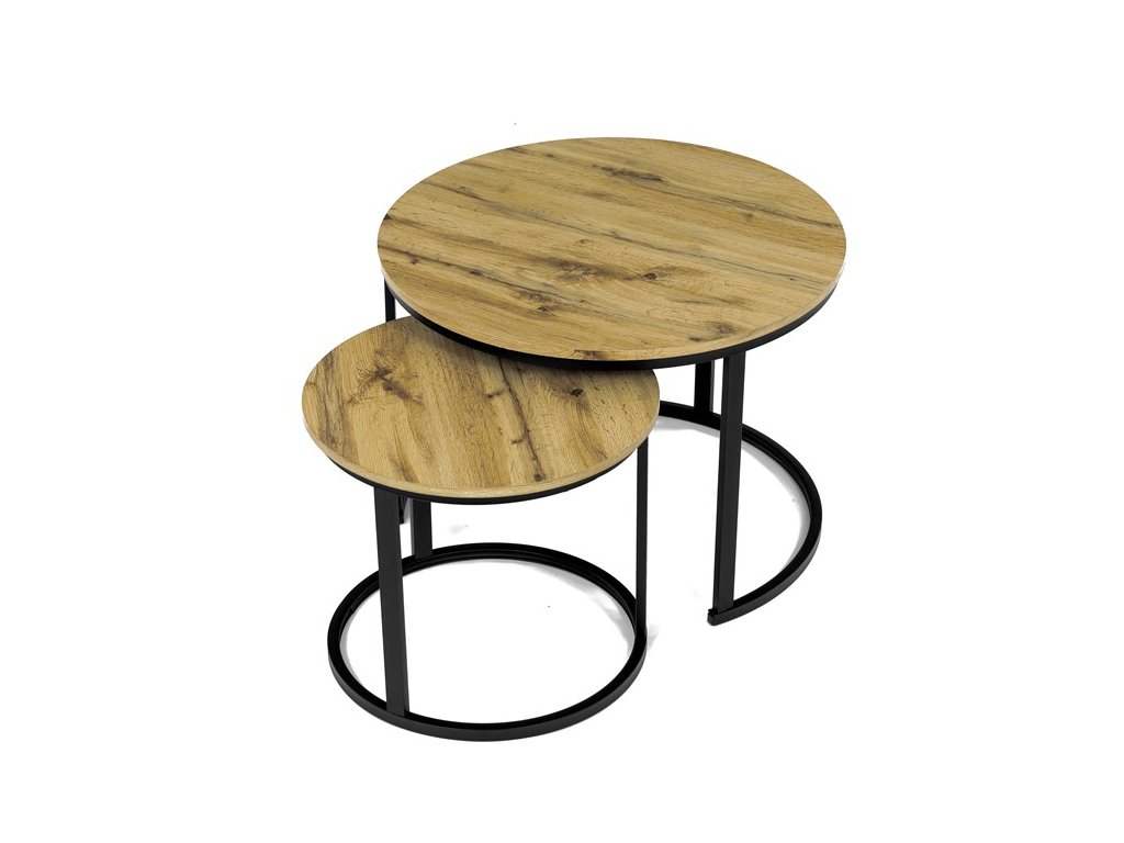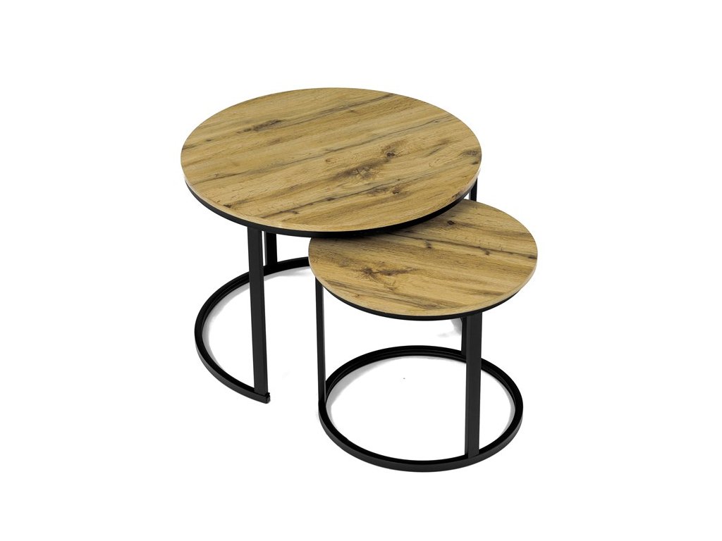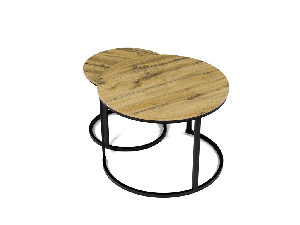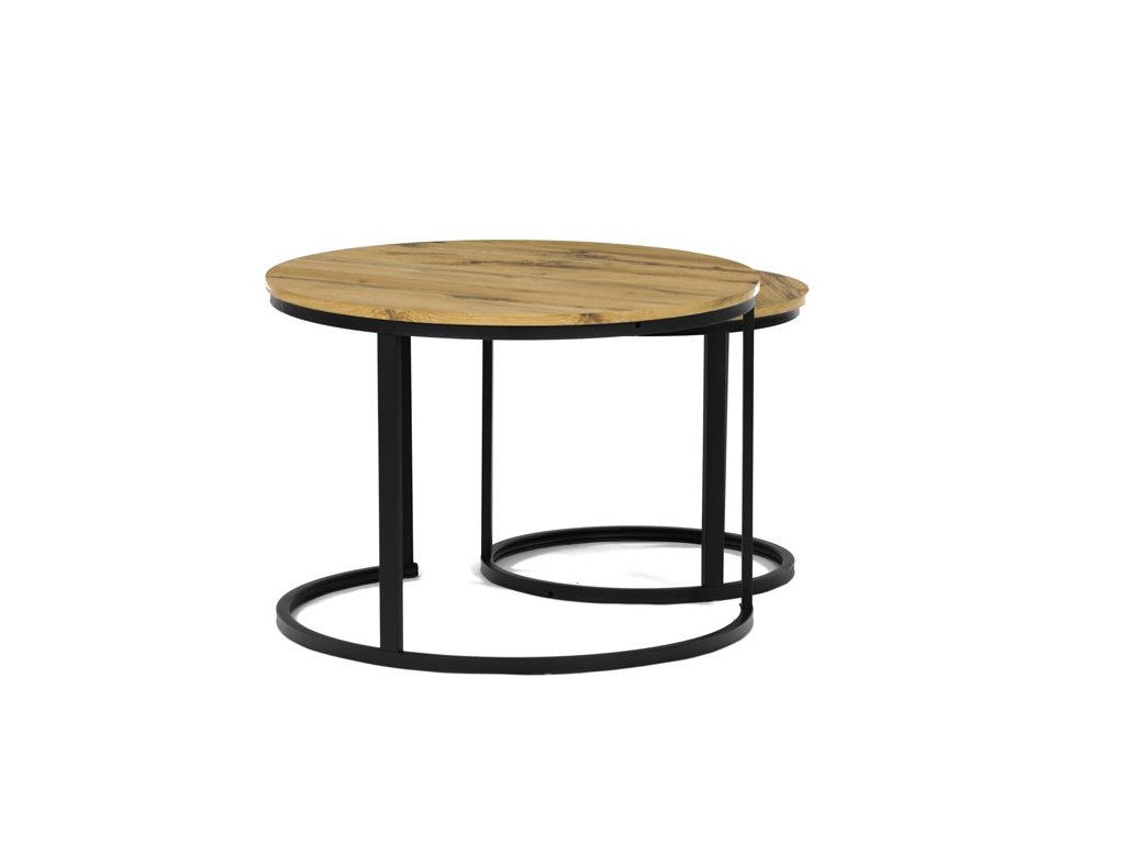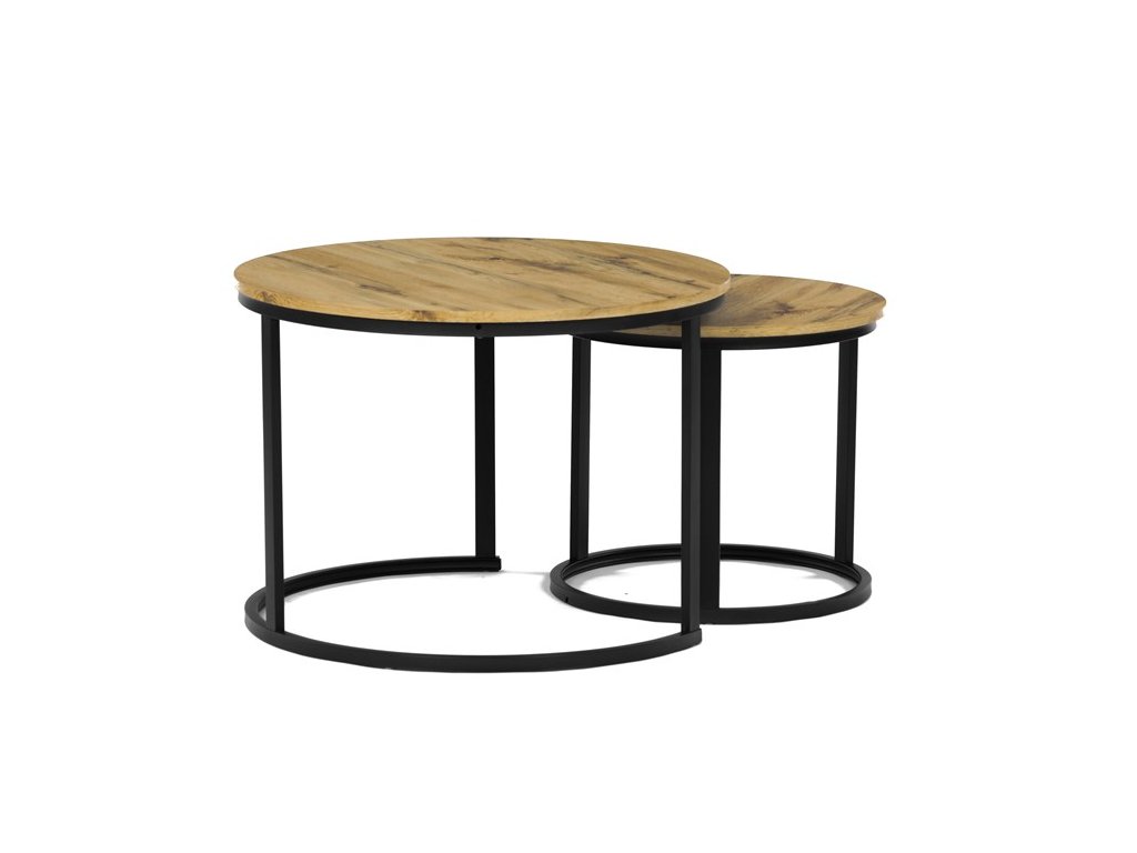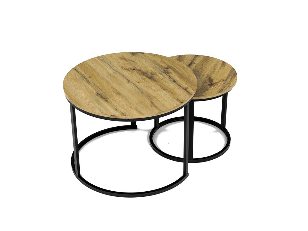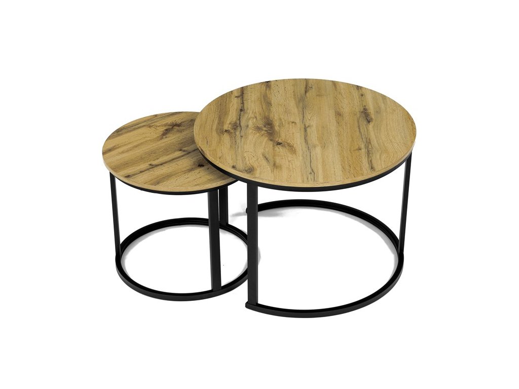 Set dvou konferenčních stolků ARENDAL přináší do interiéru eleganci i funkčnost. Desky z MDF v různých dekorech doplňuje černá kovová podnož, která zajišťuje stabilitu a pevnost. Kulatý tvar obou stolků působí vzdušně a díky rozdílným výškám je lze snadno kombinovat nebo zasunout pod sebe. Tento praktický set se hodí do moderních obývacích pokojů i kanceláří, kde oceníte jeho variabilní využití i dlouhou životnost.
