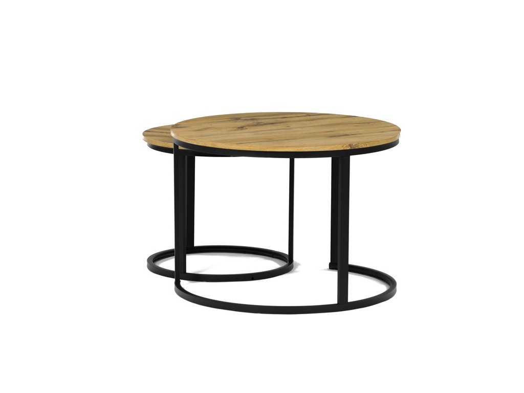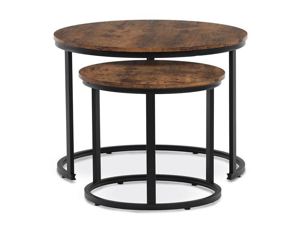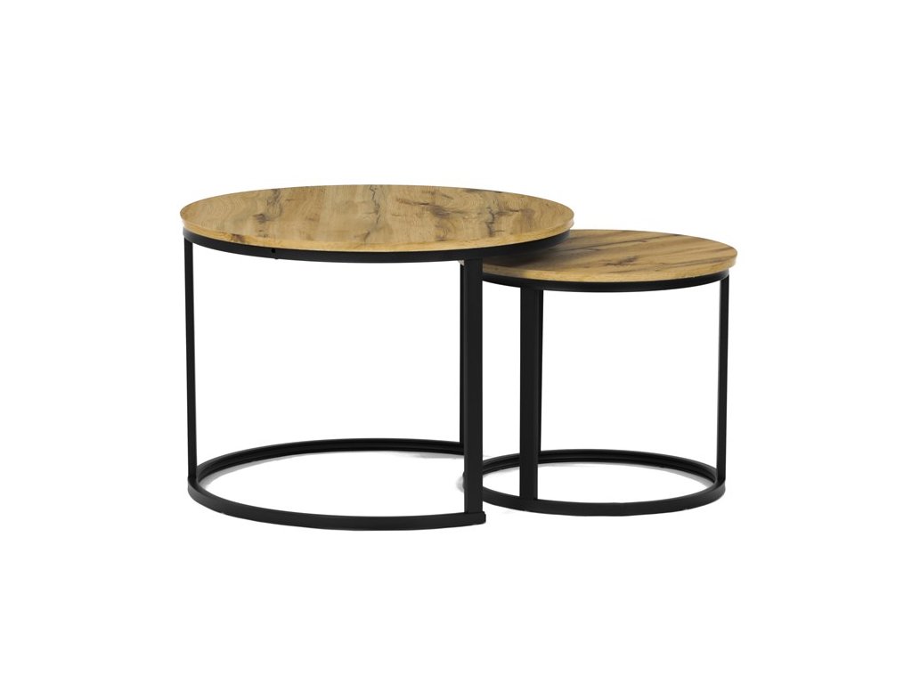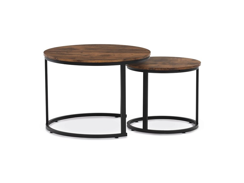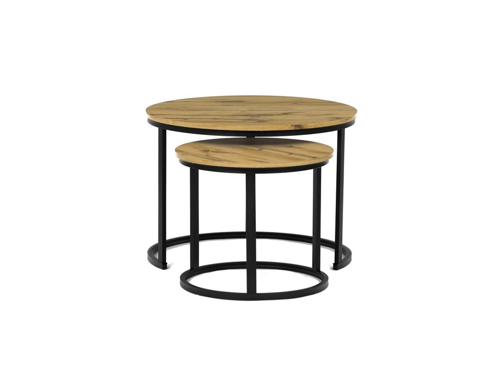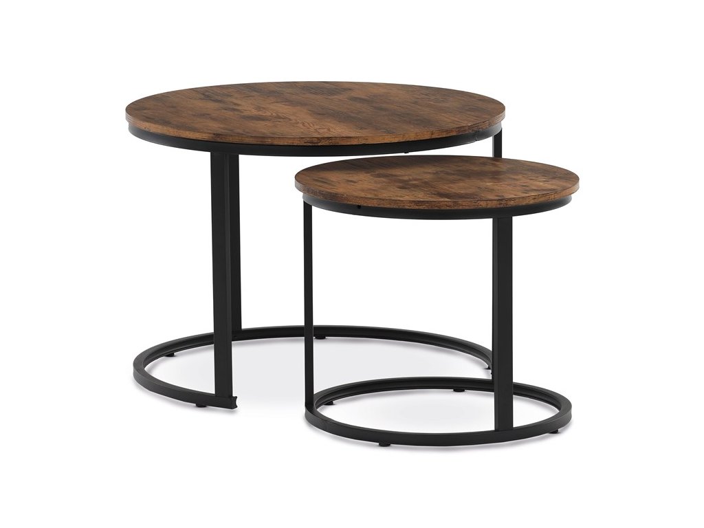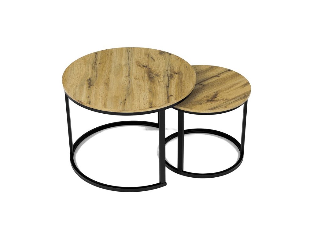 Set dvou konferenčních stolků ARENDAL přináší do interiéru eleganci i funkčnost. Desky z MDF v různých dekorech doplňuje černá kovová podnož, která zajišťuje stabilitu a pevnost. Kulatý tvar obou stolků působí vzdušně a díky rozdílným výškám je lze snadno kombinovat nebo zasunout pod sebe. Tento praktický set se hodí do moderních obývacích pokojů i kanceláří, kde oceníte jeho variabilní využití i dlouhou životnost.