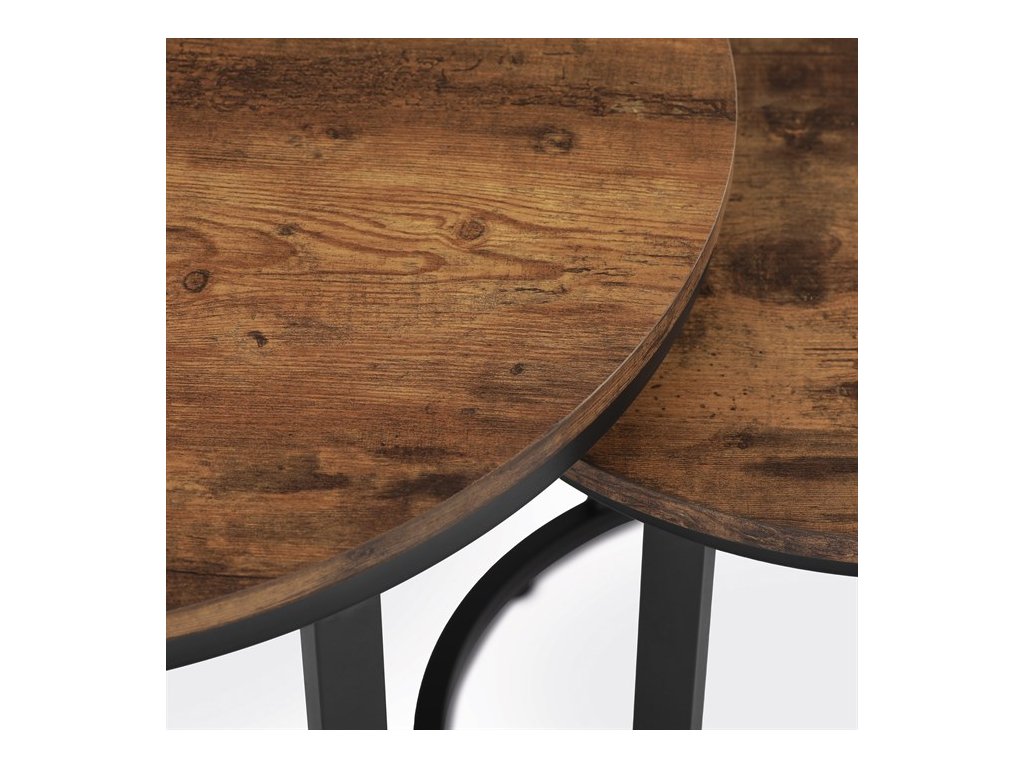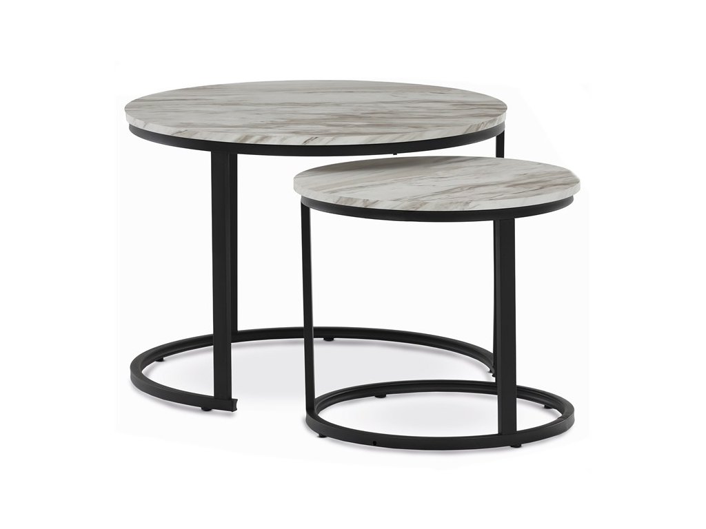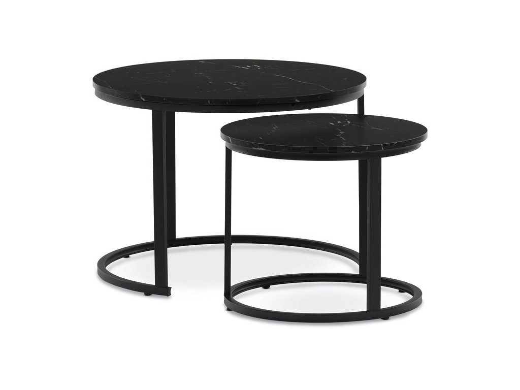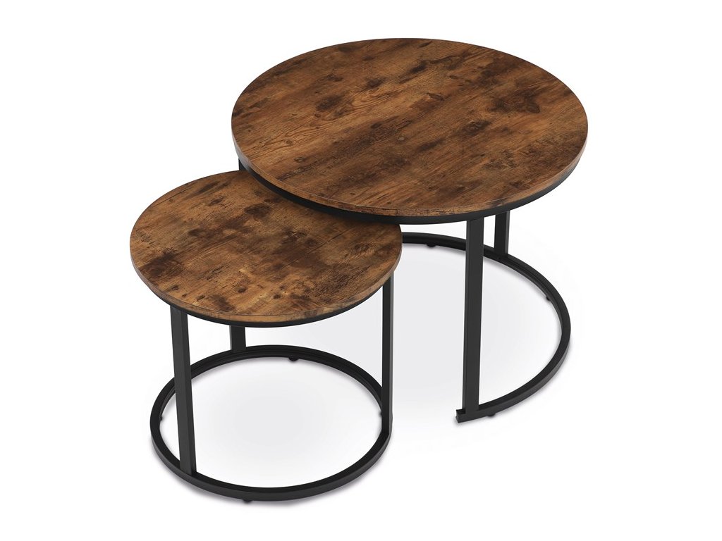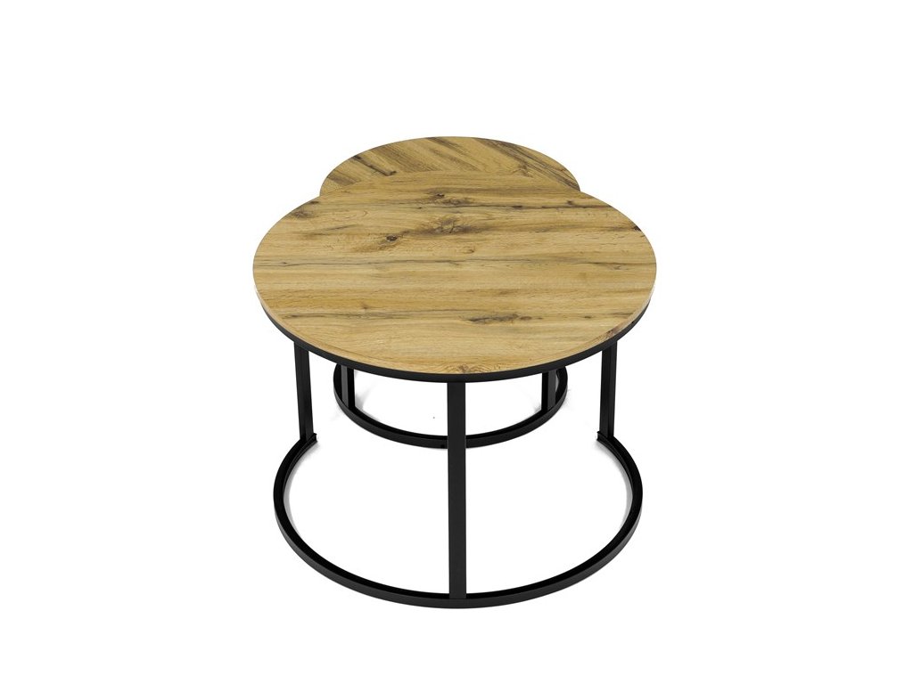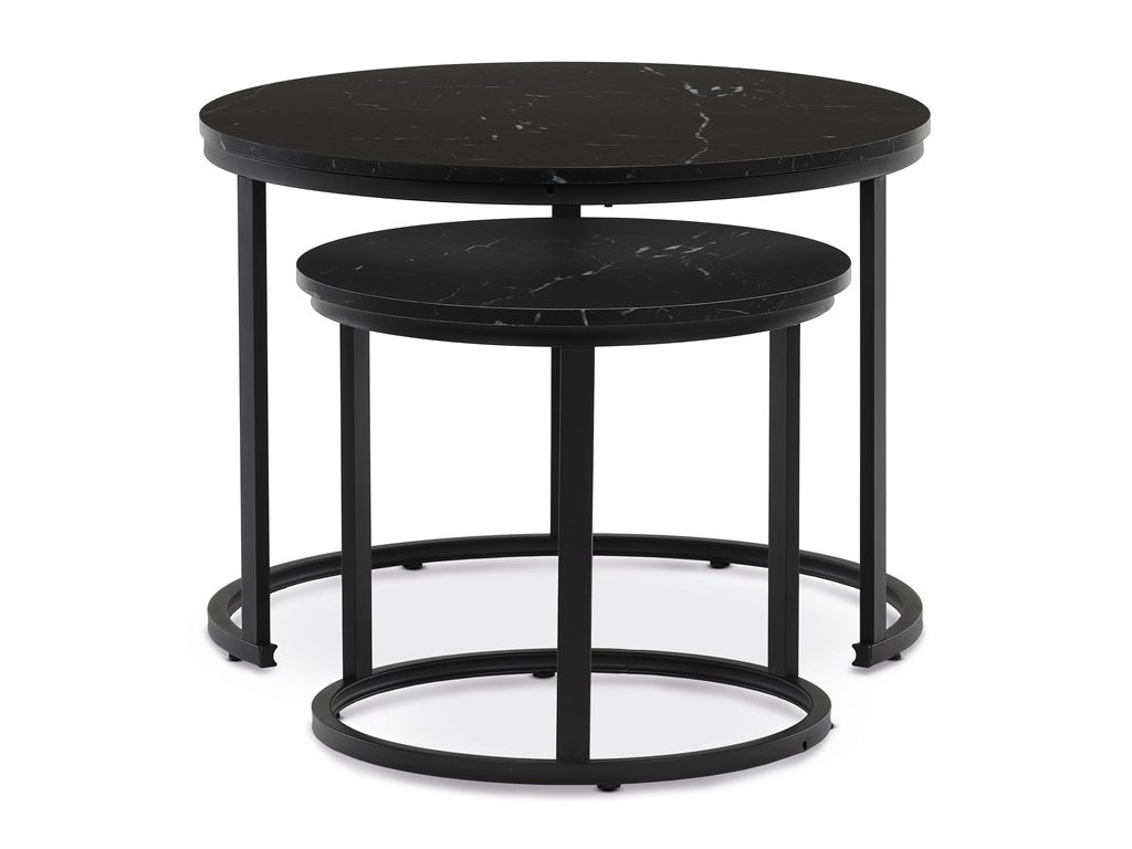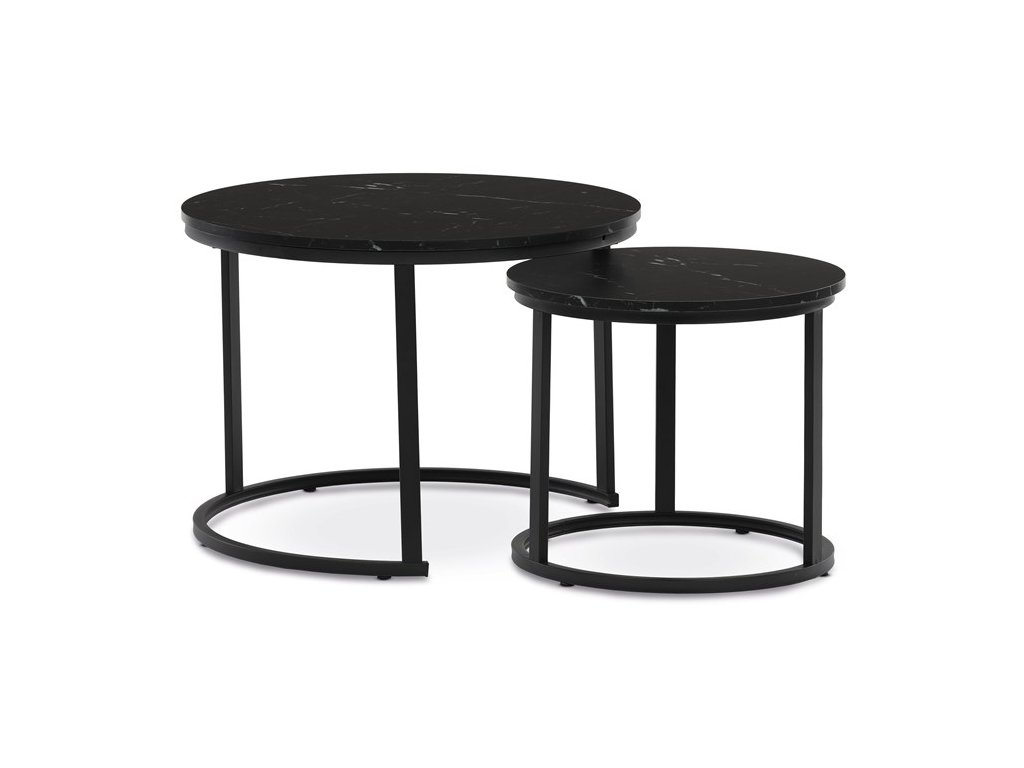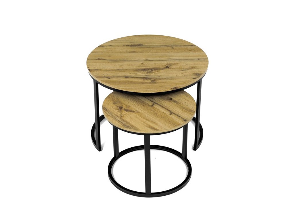 Set dvou konferenčních stolků ARENDAL přináší do interiéru eleganci i funkčnost. Desky z MDF v různých dekorech doplňuje černá kovová podnož, která zajišťuje stabilitu a pevnost. Kulatý tvar obou stolků působí vzdušně a díky rozdílným výškám je lze snadno kombinovat nebo zasunout pod sebe. Tento praktický set se hodí do moderních obývacích pokojů i kanceláří, kde oceníte jeho variabilní využití i dlouhou životnost.