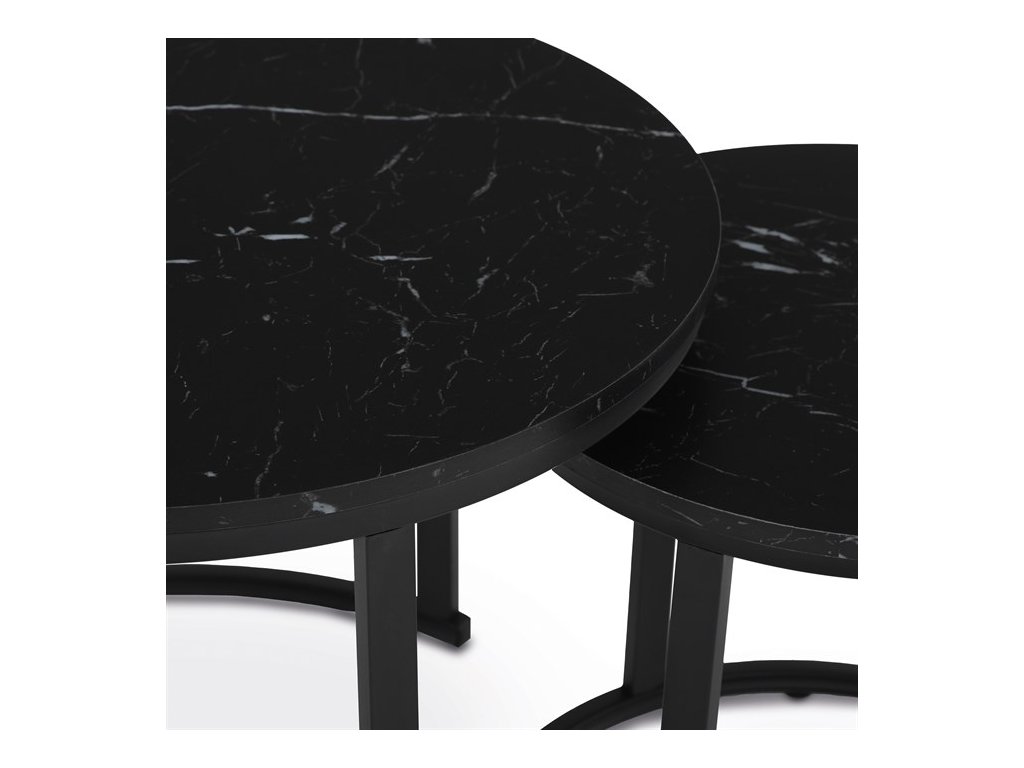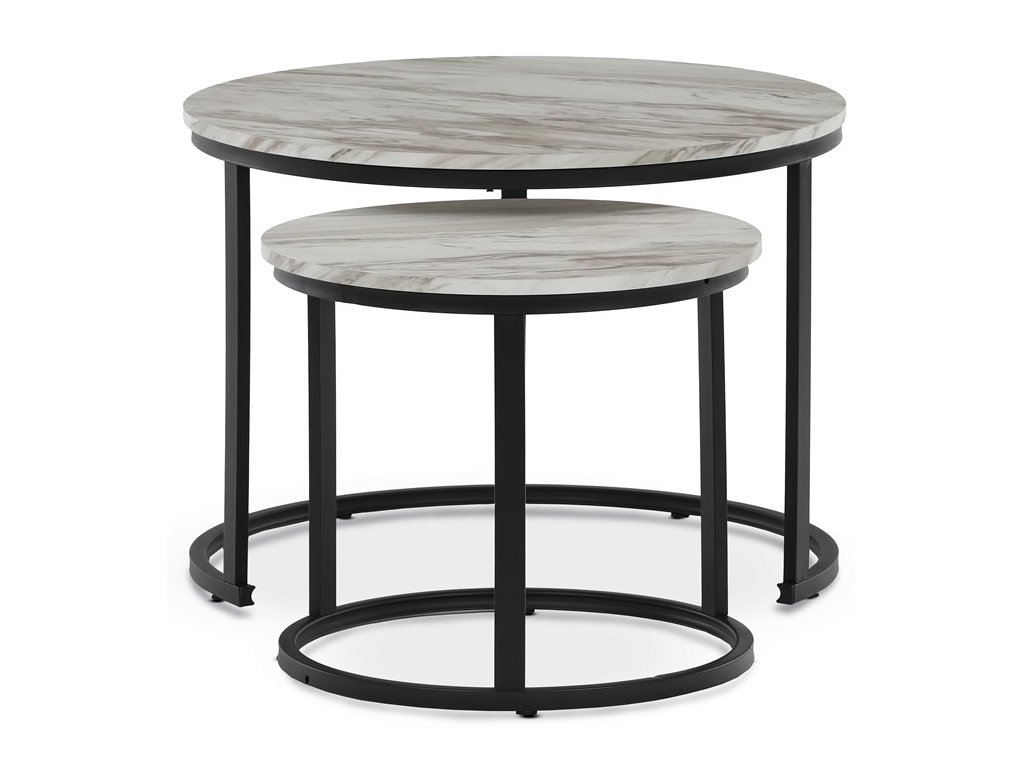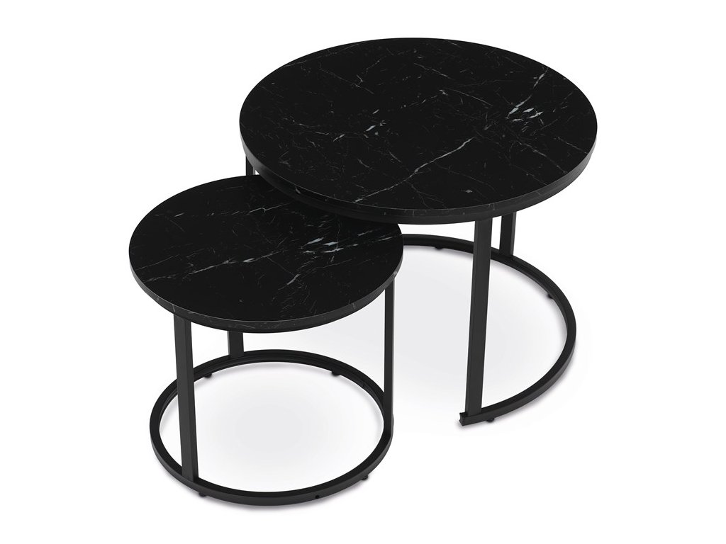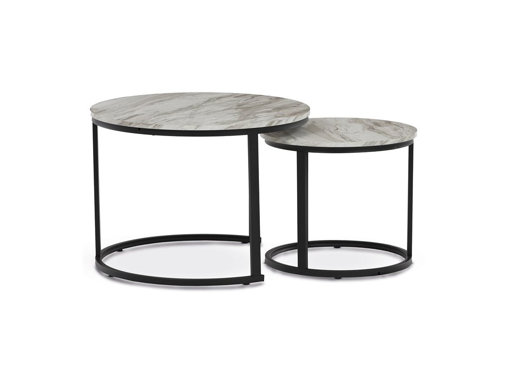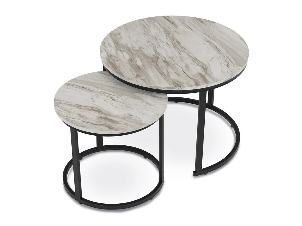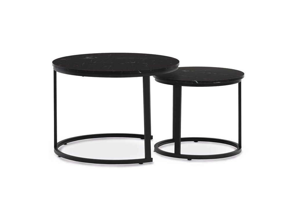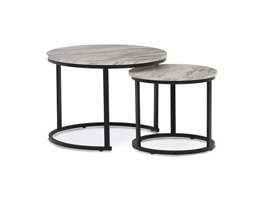 Set dvou konferenčních stolků ARENDAL přináší do interiéru eleganci i funkčnost. Desky z MDF v různých dekorech doplňuje černá kovová podnož, která zajišťuje stabilitu a pevnost. Kulatý tvar obou stolků působí vzdušně a díky rozdílným výškám je lze snadno kombinovat nebo zasunout pod sebe. Tento praktický set se hodí do moderních obývacích pokojů i kanceláří, kde oceníte jeho variabilní využití i dlouhou životnost.