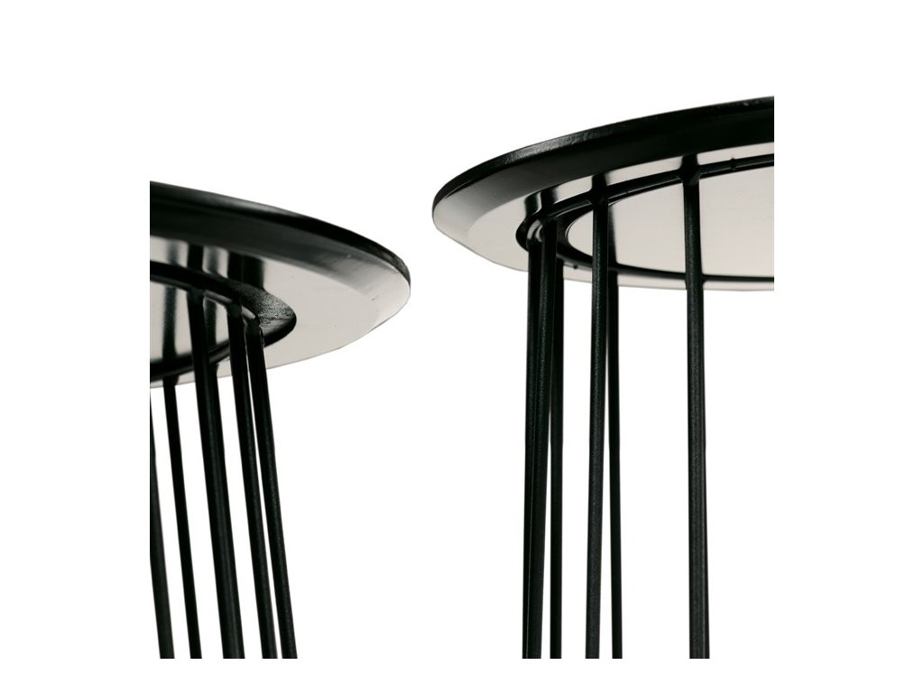 Subtilní kovová konstrukce je opatřena práškovým lakem, což zajišťuje vysokou odolnost. Gumové patky na spodní straně chrání podlahu před poškozením a brání nechtěnému posunu. Nosnost každého stolku je až 30 kg. Díky snadné údržbě a minimální náročnosti na montáž jsou stolky připraveny okamžitě k použití a přinášejí do interiéru eleganci i praktické využití.